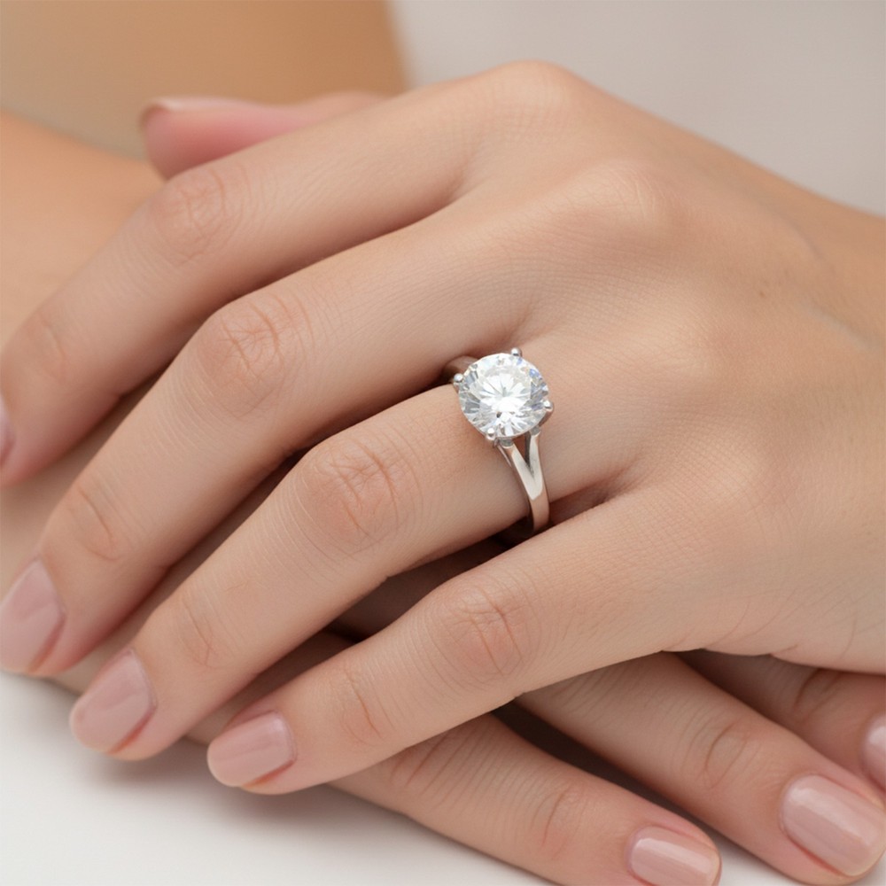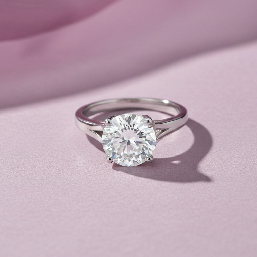 $ 4335.673.00 Ct. Certified E/VS1 Round Cut Lab Grown Diamond Ring in 925 Sterling Silver