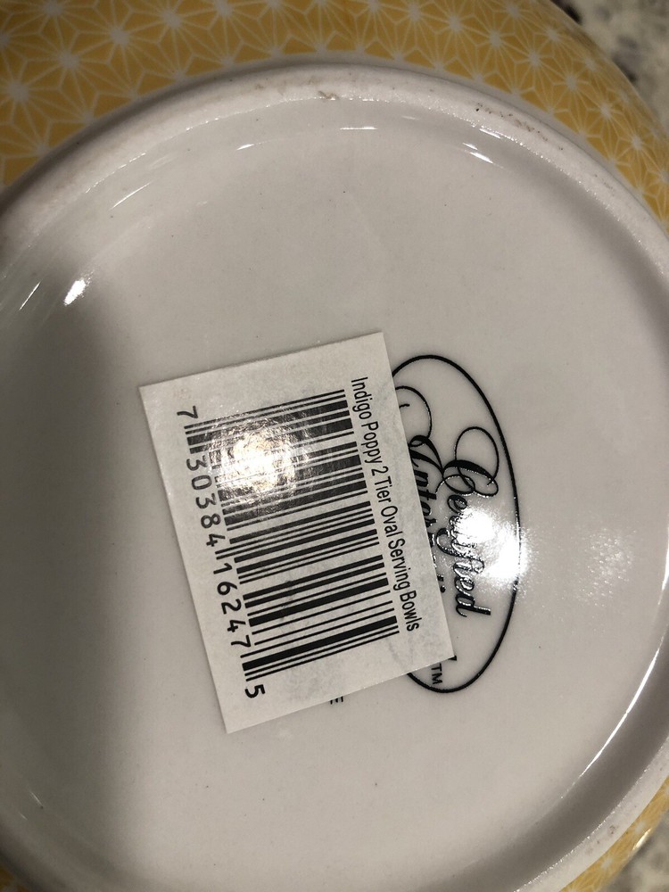 Material:CeramicBrand:Certified InternationalOccasion:All OccasionsColor:blue/yellowFinish:ShinyPersonalize:NoType:Serving BowlNumber of Items in Set:Two-PieceOriginal/Reproduction:OriginalCountry/Region of Manufacture:China