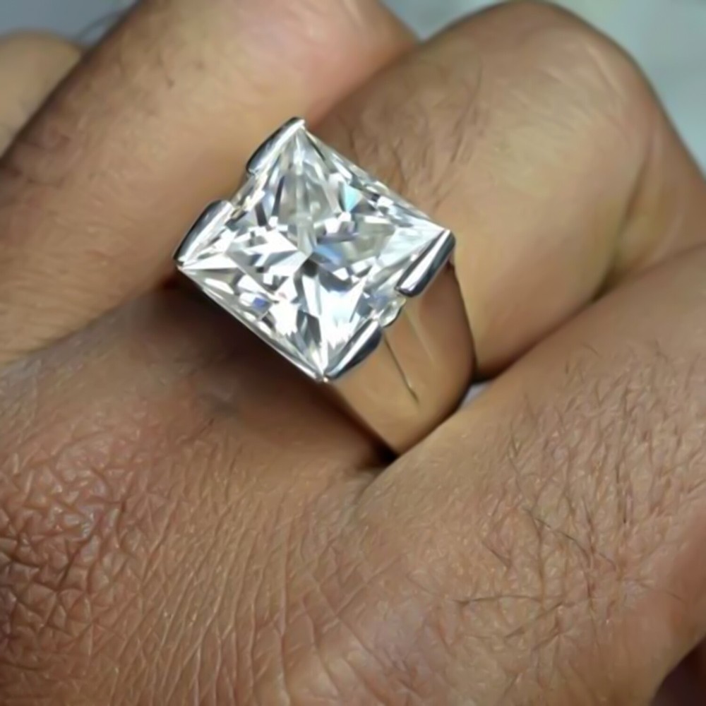 $ 120.7Certified Natural AAA 5.80ct VS1 White Diamond 925 Sterling Silver Handmade Ring