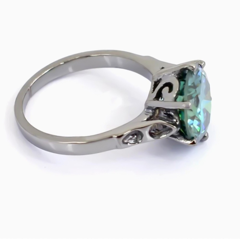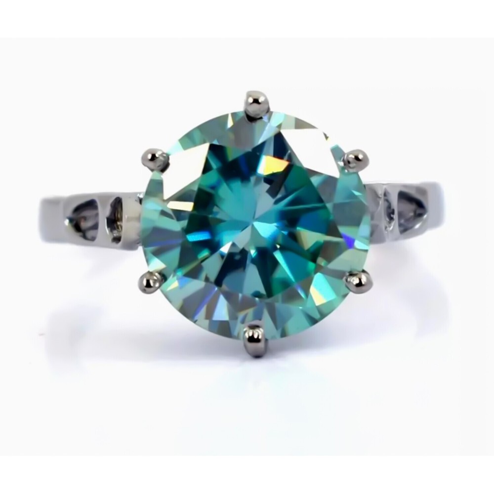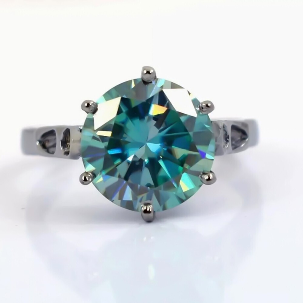 $ 177.76Certified 10 Ct Emerald Cut Blue Diamond Solitaire In 925 Sterling Silver Ring