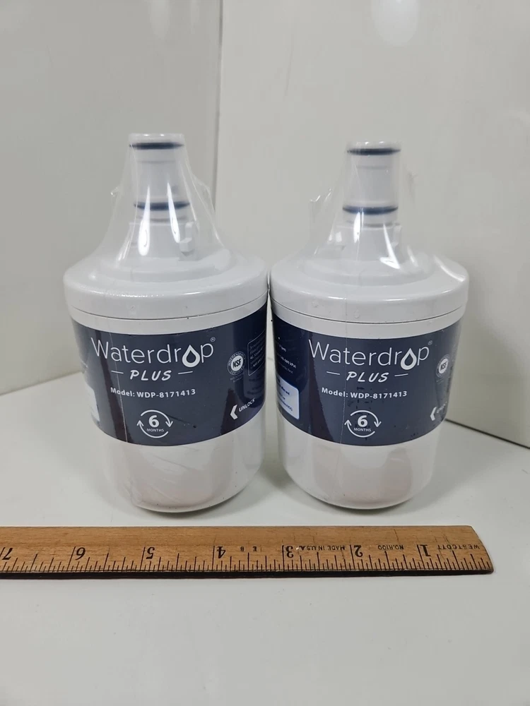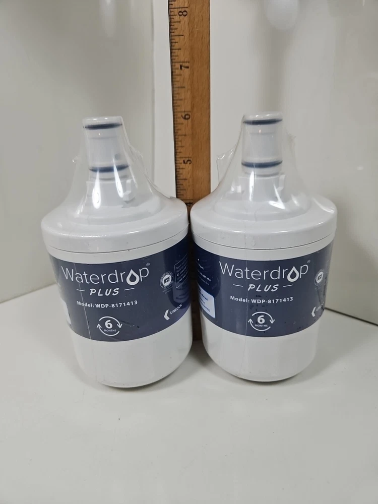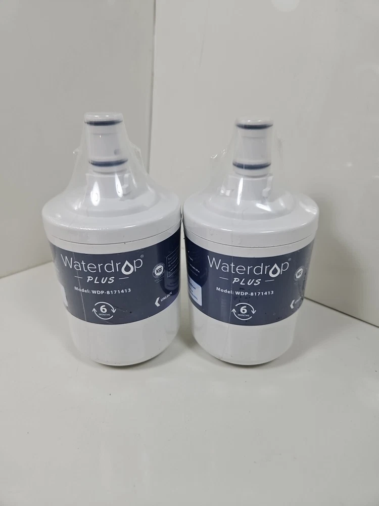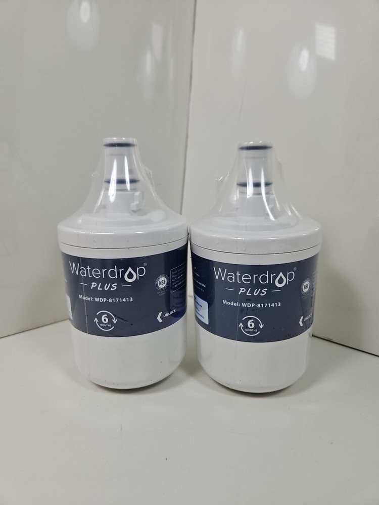 Lot Of 2 Certified Waterdrop Plus 8171413 Refrigerator Water Filter Whirlpool Product will be shipped timely and packaged with care. Offers are encouraged. Please feel free to reach out with questions. Please see pictures. Thank you. New old stock see pictures. Sealed filters. Get pure and clean water with the Waterdrop Plus 8171413 Refrigerator Water Filter. This lot includes two filters that are compatible with Whirlpool, Sears, Kenmore, and Kitchen Aid refrigerators. The filters are made of advanced activated coconut carbon and are lead-free, ensuring that you get the best quality water for your family. The Waterdrop filters are easy to install and require no tools, making it simple to replace your old filter. With a lifespan of 6 months, you can enjoy fresh and clean water for a long time. These filters are a must-have for anyone who wants to ensure that their drinking water is pure and healthy. AA1