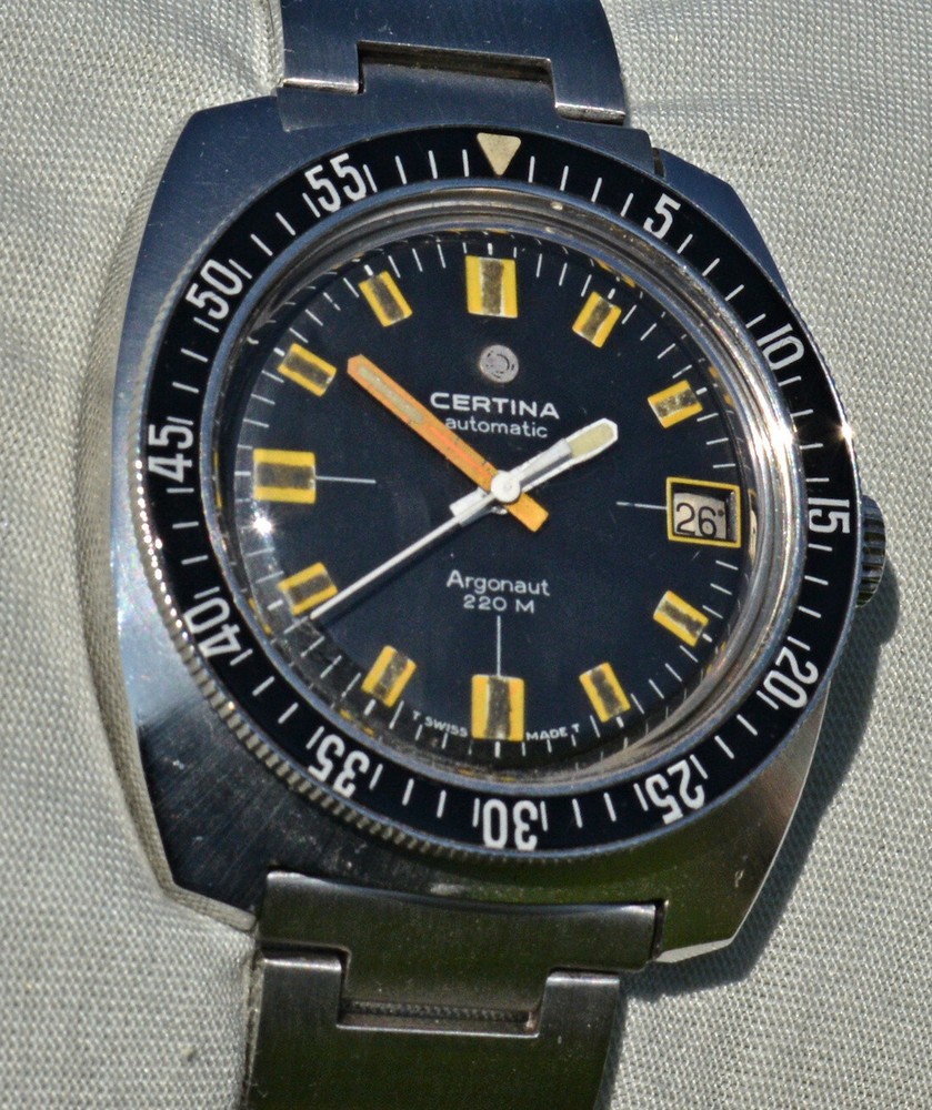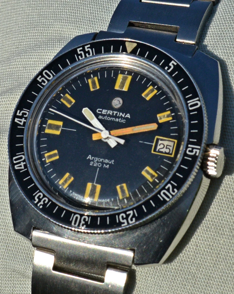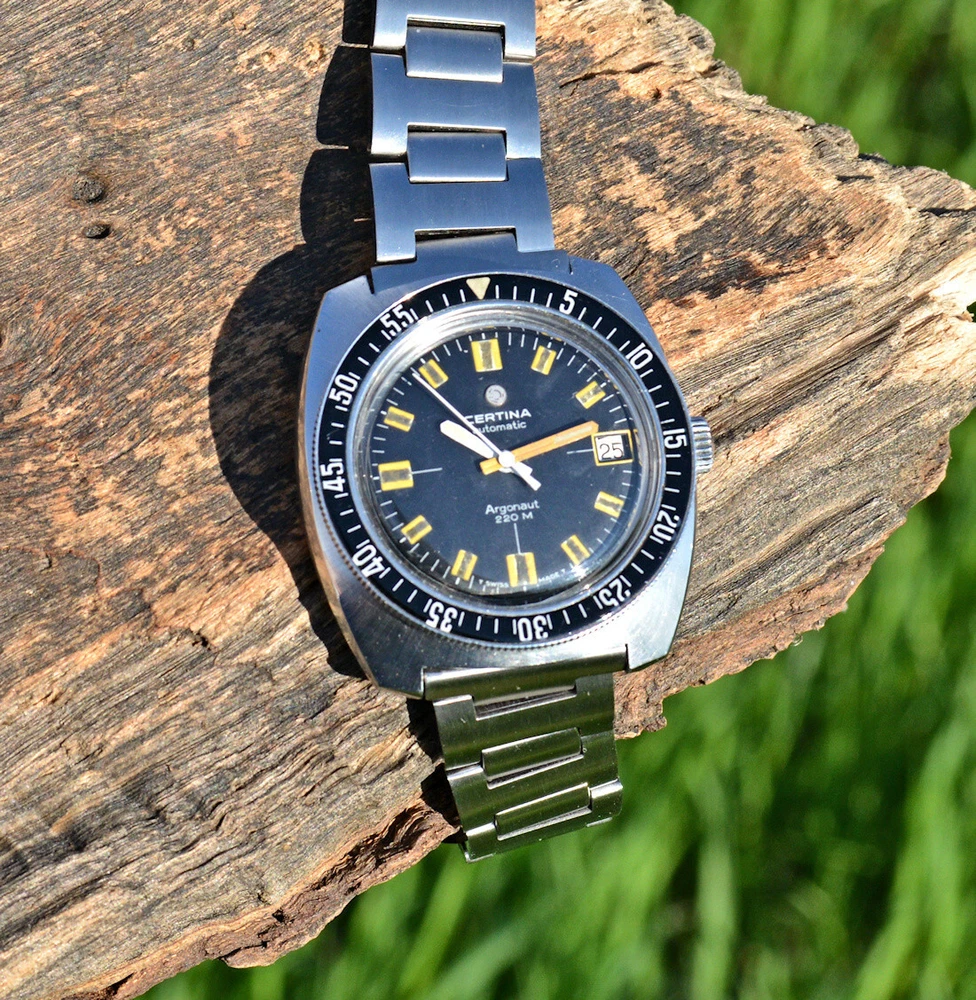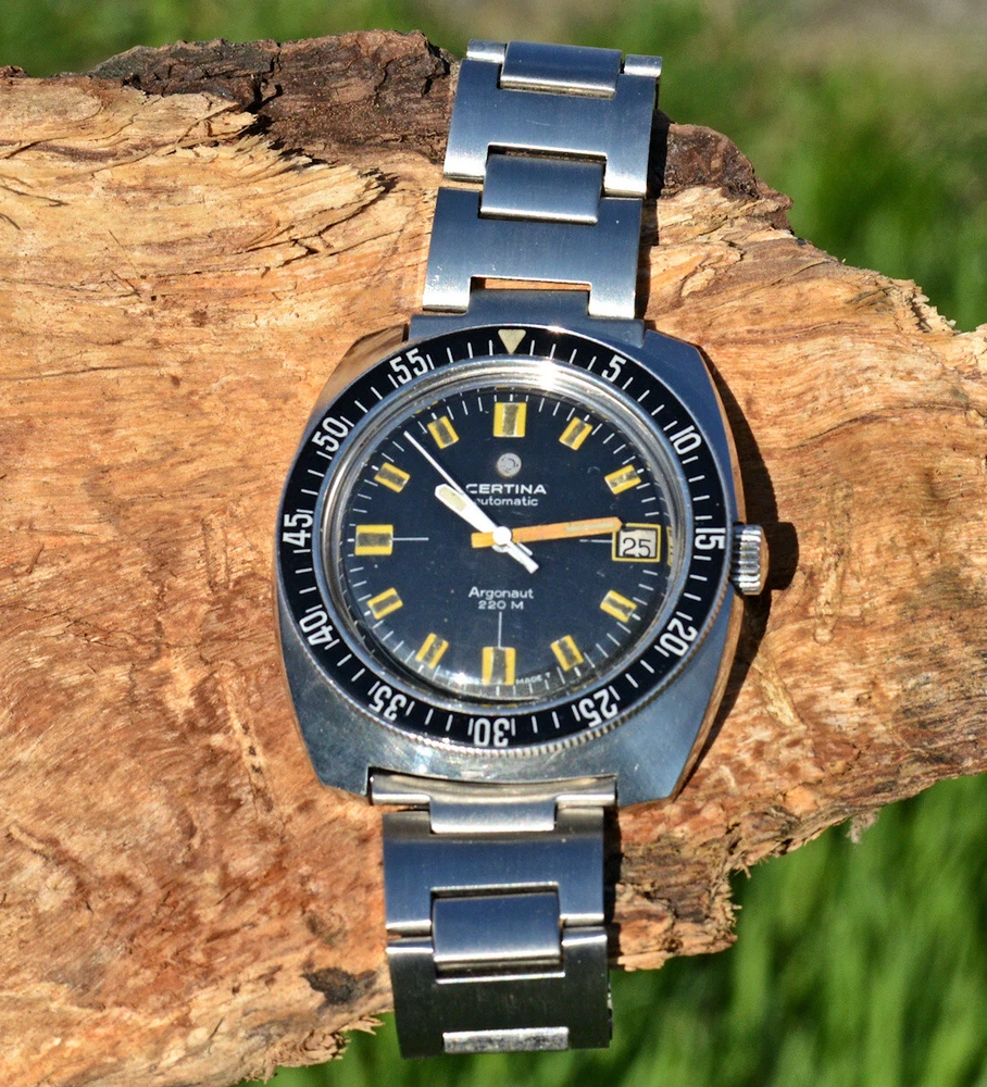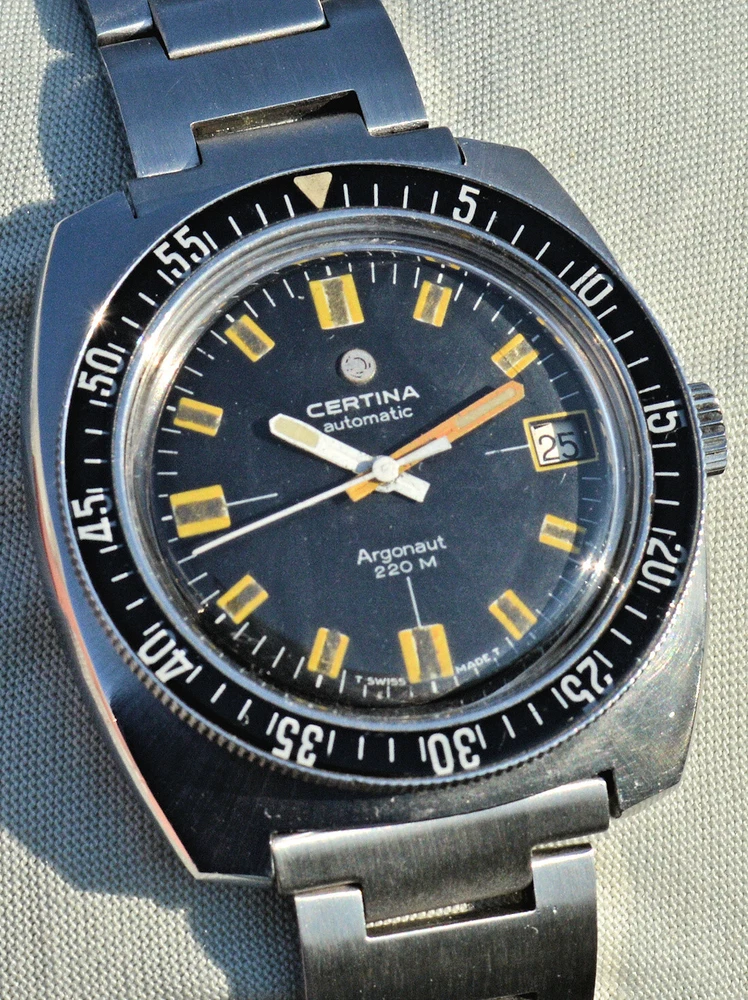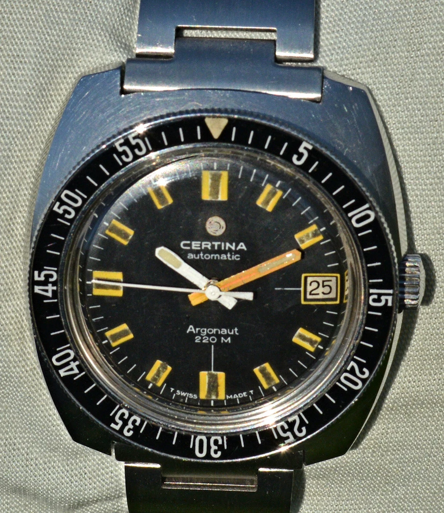 Condizione 1 (ottimo) - Rarissimo orologio Certina Automatic Argonaut sub diver 220 Meters, cassa in acciaio di grandi dimensioni, rarissimo modello Sub con data della fine degli anni '60 (non conosco l'anno preciso, 1968/1970 circa), ottimamente mantenuto (nonostante abbia più di 50 anni ha solo i normali e superficiali segni dell'uso ed è ancora presente la sua satinatura originale, non è mai stato lucidato). Dimensioni cassa 42x38,5 mm. esluso la corona originale a vite , il quadrante nero non ristampato è bellissimo , è il suo originale dell'epoca, le lancette e l'indice triangolare sulla lunetta sono luminosi al buio, il vetro plastica non ha graffi, la bellissima ghiera in bakelite è girevole bidirezionale. Il movimento Certina 25-651 è pulitissimo e perfettamente funzionante (è stato revisionato da un professionista del settore in Marzo 2025, quindi rilascierò personale garanzia scritta valevole per mesi 24) . Il fondello è in acciaio a vite e garantisce una impermeabilità fino a 220 mt. Il bracciale acciaio è il suo originale dell'epoca. Garantisco la massima serietà e veridicità dell’oggetto. Le fotografie sono attuali dell'oggetto in vendita. * * * * * INTERNATIONAL BUYERS ARE WELCOME ASK FOR SHIPPING QUOTE I accept paypal payment only from verify member * * * * *