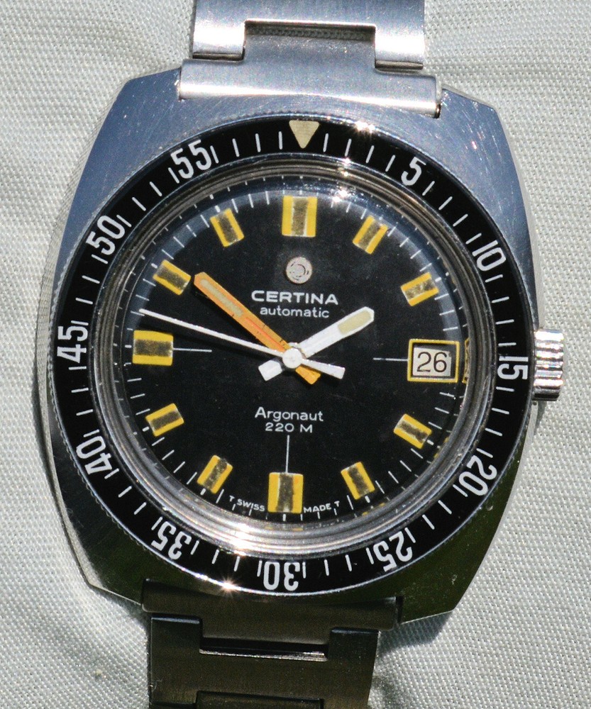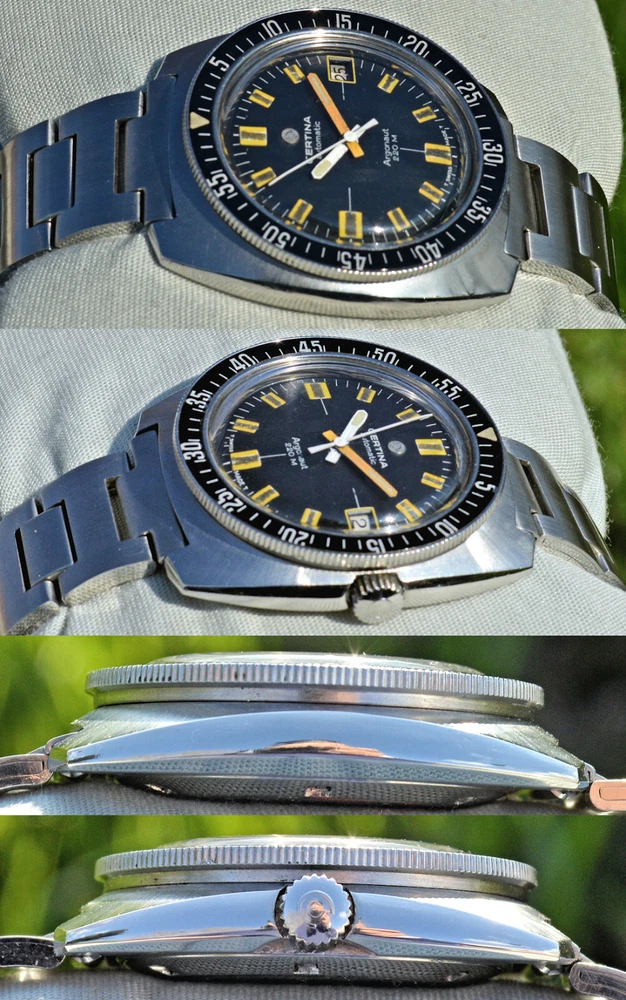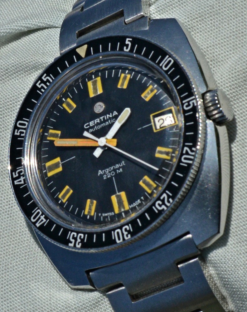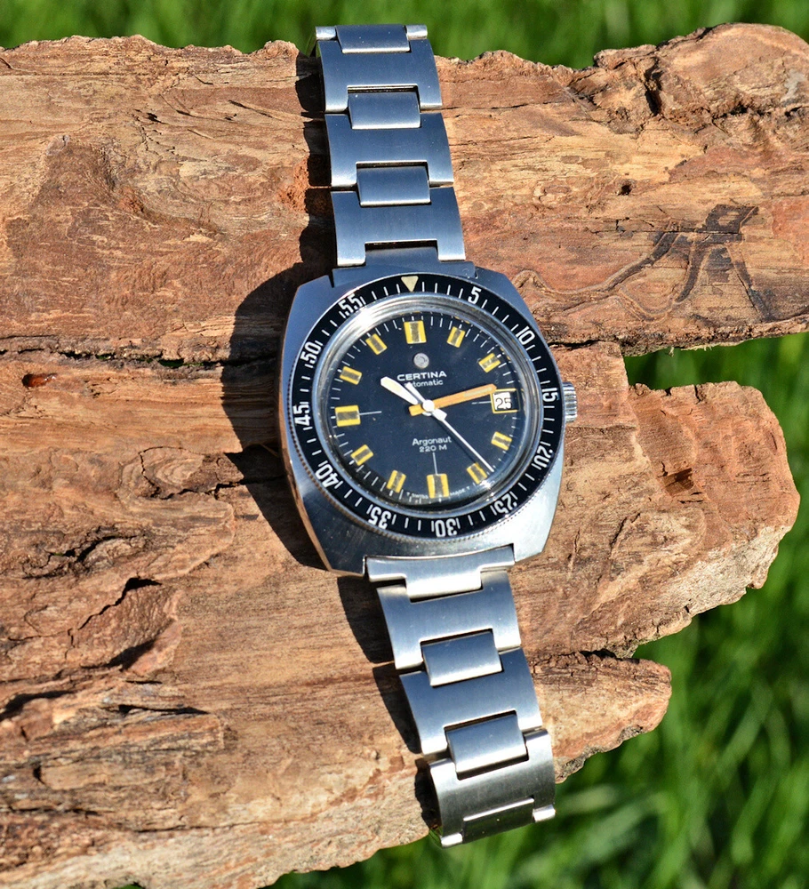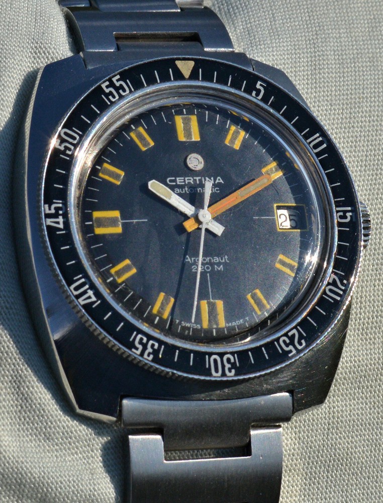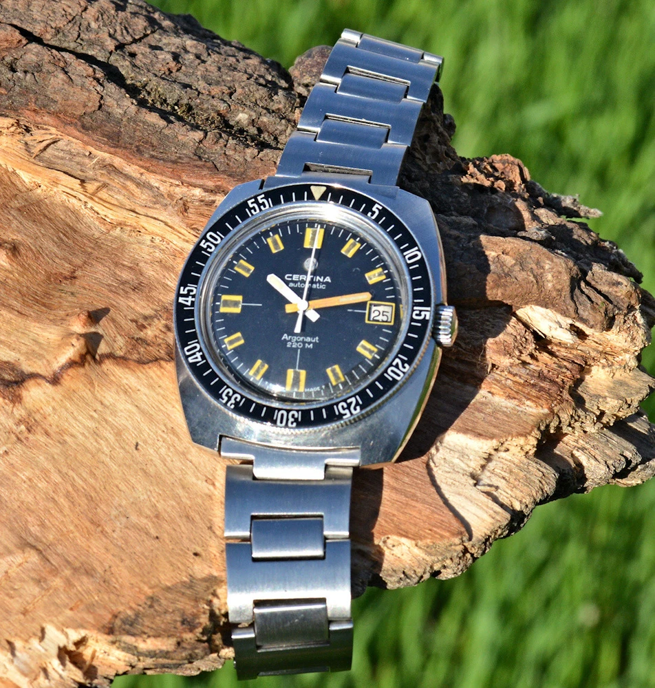 Condizione 1 (ottimo) - Rarissimo orologio Certina Automatic Argonaut sub diver 220 Meters, cassa in acciaio di grandi dimensioni, rarissimo modello Sub con data della fine degli anni '60 (non conosco l'anno preciso, 1968/1970 circa), ottimamente mantenuto (nonostante abbia più di 50 anni ha solo i normali e superficiali segni dell'uso ed è ancora presente la sua satinatura originale, non è mai stato lucidato). Dimensioni cassa 42x38,5 mm. esluso la corona originale a vite , il quadrante nero non ristampato è bellissimo , è il suo originale dell'epoca, le lancette e l'indice triangolare sulla lunetta sono luminosi al buio, il vetro plastica non ha graffi, la bellissima ghiera in bakelite è girevole bidirezionale. Il movimento Certina 25-651 è pulitissimo e perfettamente funzionante (è stato revisionato da un professionista del settore in Marzo 2025, quindi rilascierò personale garanzia scritta valevole per mesi 24) . Il fondello è in acciaio a vite e garantisce una impermeabilità fino a 220 mt. Il bracciale acciaio è il suo originale dell'epoca. Garantisco la massima serietà e veridicità dell’oggetto. Le fotografie sono attuali dell'oggetto in vendita. * * * * * INTERNATIONAL BUYERS ARE WELCOME ASK FOR SHIPPING QUOTE I accept paypal payment only from verify member * * * * *