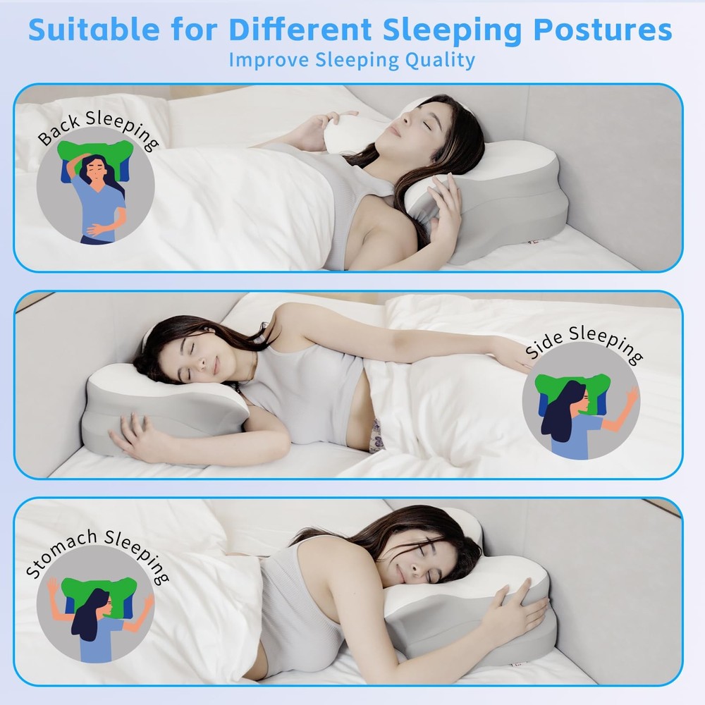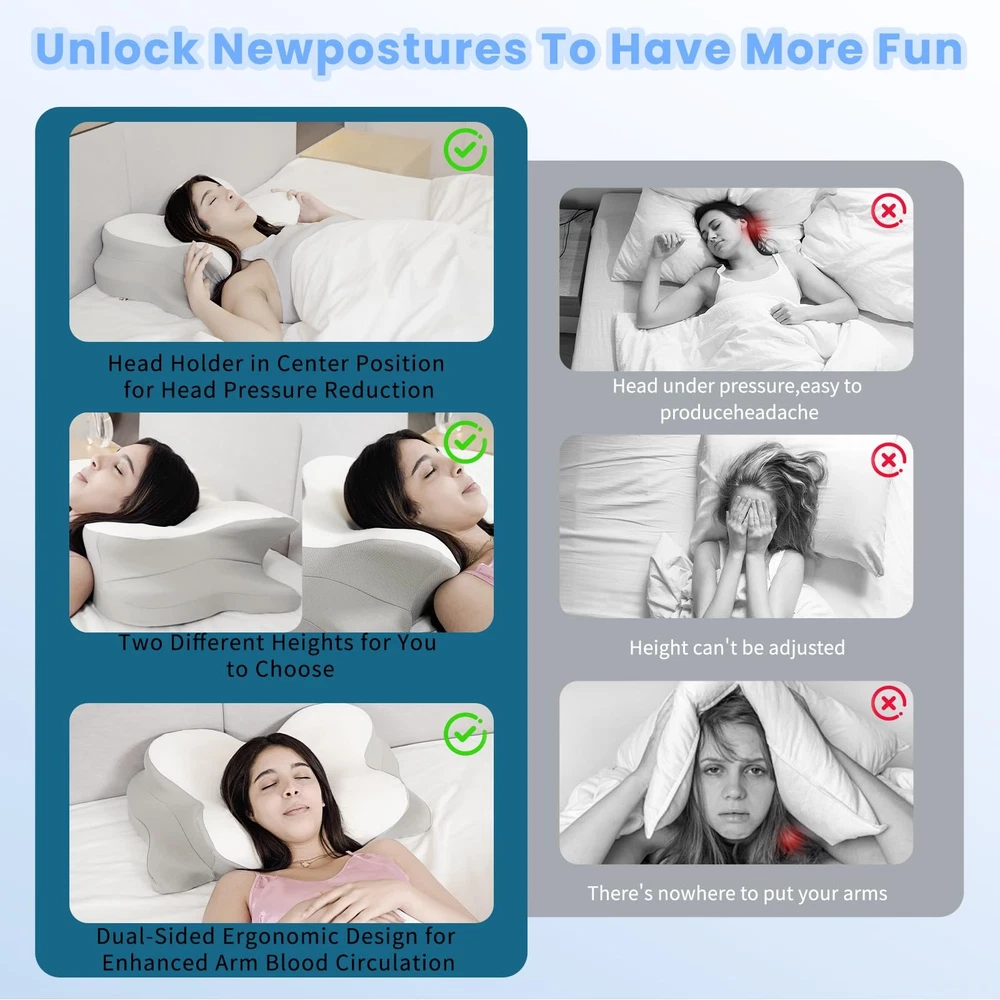 Neck and cervical pillows are designed to provide superior support and comfort for your head, neck, and shoulders. Crafted with premium materials, these pillows contour to the natural curves of your body, aligning your spine and promoting proper posture. Whether you're sleeping, traveling, or simply relaxing, these pillows can help alleviate neck pain, reduce muscle tension, and improve overall spinal alignment. With their ergonomic design and high-density filling, they offer customizable firmness and loft to suit your individual preferences. Invest in a neck and cervical pillow for a rejuvenating and restful experience, allowing you to wake up feeling refreshed and revitalized. Available in various sizes and shapes to accommodate diverse needs. 【Revitalize every night's deep sleep】 Rest assured on your cervical neck pillow and drift into sweet dreams,Say goodbye to neck fatigue and restless nights forever through our scientifically validated ergonomic pillow. This side sleeper pillow for neck pain is elaborately made of high-quality memory foam, with intelligent thickened neck support, precisely designed ridge and groove, and adaptive shoulder contour. Whether you lie on your back or side, you can maintain perfect neck alignment. 【 2 Height Designs 】Still struggling to find a cervical pillow for neck pain relief of suitable height? This cervical pillow can be called a sleep savior! It has two height designs, find the most comfortable support that suits you best. The unique arm groove bid farewell to the discomfort of curling up. Expanding the size broadens the contact range between the head and shoulders, making it easy to turn over without worrying about falling off the pillow.Switch the high and low contours, can easily realize the height free adjustment, avoid headache, shoulder, neck and back pain, sleep apnea, snoring and other problems caused by height discomfort, and a new day vigorously every morning. 【 Memory Foam Pillow 】 3-second slow rebound memory cotton pillow core disperses pressure points and provides adaptive support; The outer layer is made of skin friendly and breathable fabric, which feels like clouds and reduces stuffiness, making it sensitive and skin friendly. 【 Multi scenario applicability 】 The Neck Support Pillow Not only suitable for nighttime sleep, but also for office nap time, long-distance travel, sofa watching, relieving cervical fatigue, and improving entertainment comfort comes with a portable storage bag. 【Sleep Wellness Partnership】Round-the-clock care commitment 24/7 customer service team. Backed by sleep ergonomic experts prioritizing user experience and product longevity.