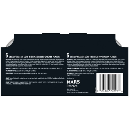 Important Note for Our Valued Customers: To offer you the best prices with free shipping, we occasionally experience shipping delays. If this happens, we’ll notify you immediately, issue a full refund, and invite you to place a new order at your convenience. To keep costs low, we sometimes reuse branded packaging boxes for shipments—we appreciate your understanding if you receive your order in repurposed packaging. Rest assured, all products we sell are 100% brand new, unopened, and freshly manufactured, including pet food and human-grade items, with a minimum 8-month shelf life remaining. If any issues arise, please contact us first—we’re committed to resolving them quickly. If you’re not completely satisfied, we offer a full refund with no hassle. Thank you for your trust and support! Highlights Real Beef is the #1 Ingredient: With real beef as the #1 ingredient, Classic Loaf in Sauce complements any dry food or stands alone as a tasty meal Made in the USA with the finest ingredients from around the world Quality Recipe: Contains no fillers, no artificial flavors, and is formulated without grains* (Trace amounts may be present due to cross-contact during manufacturing) Peel Away Seals: CESAR Classic Loafs gourmet soft dog food is served in convenient trays with easy, peel away seals. Deliciously Complete Small Breed Dog Food: This single serve, complete and balanced meal for adult dogs makes every mealtime delicious Contains twelve (12) 3.5 oz. easy peel trays of CESAR Wet Dog Food Classic Loaf in Sauce Filet Mignon and Porterhouse Steak Flavors Variety Pack Description The CESAR brand knows that the best way to show your dog love is by keeping them happy and healthy with gourmet meals. With beef as the #1 ingredient, CESAR Wet Dog Food Classic Loaf in Sauce Filet Mignon and Porterhouse Steak Flavors Variety Pack gives your dog great flavor and a delicious meal. This small breed dog food contains no fillers, no artificial flavors, and is formulated without grains*. Made in the USA with the finest ingredients from around the world, you can be sure your best friend is getting a high quality meal. This gourmet soft dog food is also served in convenient trays with easy peel away seals. Thanks to CESAR, you can give your dog a healthy meal that they will love and love you for (*Trace amounts may be present due to cross-contact during manufacturing).