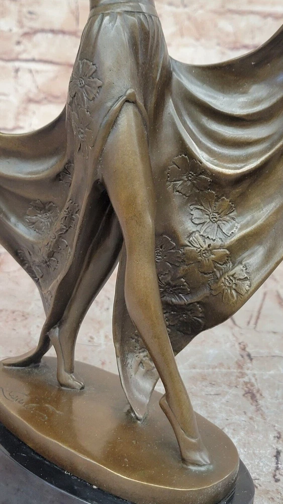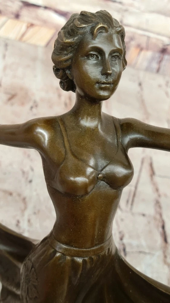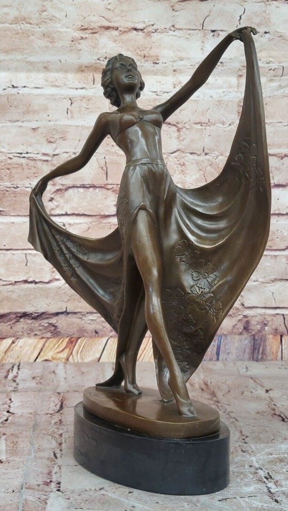 Condition : This sculpture is in perfect condition. Bronze Dimensions with Marble Base: Height 14" X Width 11" Marble Dimensions: Diameter 7" Height without base:13" Weight:10 LBS Inventory:47EPA66512174 This exquisite French Art Deco bronze sculpture by Cesaro captures the elegance and grace of a dancing girl in motion. The fluidity of her pose, combined with the intricate detailing of her form, embodies the spirit of the Art Deco era, where movement and sophistication merge seamlessly. Her expressive stance and delicate features reflect the artist’s mastery in sculpting beauty and rhythm into bronze. Handcrafted using the traditional Lost Wax Method, this artwork ensures exceptional detail and durability. The rich brown patina enhances the depth and texture of the piece, highlighting the fine contours of the dancer’s figure. Every curve and gesture is meticulously crafted, bringing an air of vitality and refinement to this timeless creation. Resting atop a polished black oval marble base, this sculpture exudes stability and elegance, making it a stunning addition to any Art Deco collection or interior space. Whether as a statement piece for collectors or a sophisticated gift for art lovers, this Cesaro bronze dancing girl is a true testament to the enduring charm of the Art Deco movement. French Art Deco Original Cesaro Bronze Dancing Girl Figurine Statue Artwork Video will open in a new window Using the eBay App? Paste link into a browser window: [isdntekvideo]