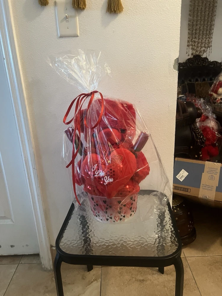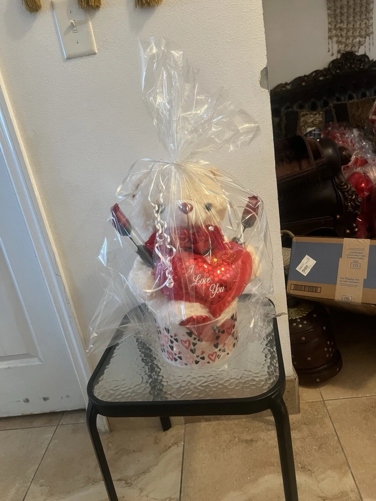 This handmade Valentine's Day gift basket is a perfect choice to convey happiness and romance. Featuring a multicolor theme with a touch of romanticism, the basket includes a rose, a bear, and is designed to light up for an extra special touch. Ideal for women, this gift basket exudes love and family vibes, making it a thoughtful and heartwarming present for the occasion. Made in the United States, this unique gift is sure to bring joy to your loved one on Valentine's Day.
