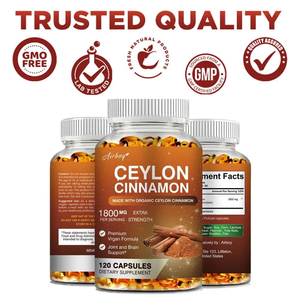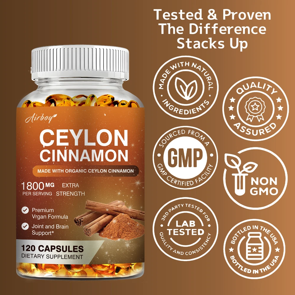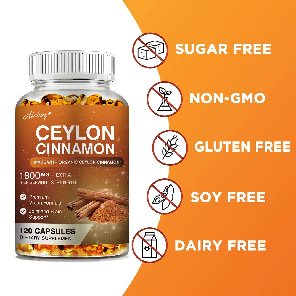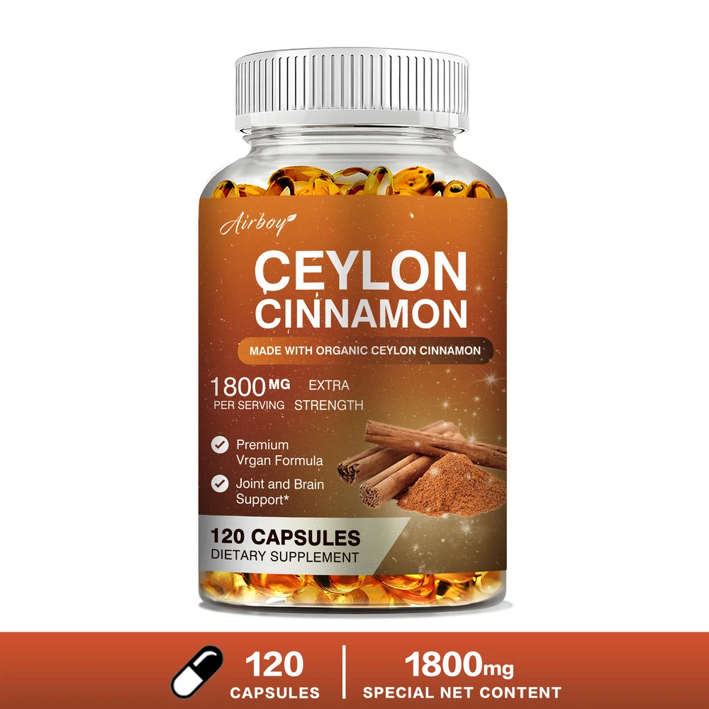 Active Ingredients: Organic Ceylon Cinnamon Features: All Natural, Easy to Swallow, Eco-Friendly Number of Pills: 30/60/120 Capsules Brand: airboy Dosage: 1800mg Production Date: 01/2024 Formulation: Capsule Storage: Keep in a cool, dry place and please sealing Item Weight: 40/65/100g Ingredients: Organic Ceylon Cinnamon Expiration Date: 01/2026 Country/Region of Manufacture: Unknown Flavor: Unflavored When to Take: After Meal FDA Registration Number: 10506864922 Shelf Life: 2 years Main Purpose: Brain & Nervous System Health, Heart Health Type: Vitamin MPN: M-0454 Department: Men, Unisex, Women