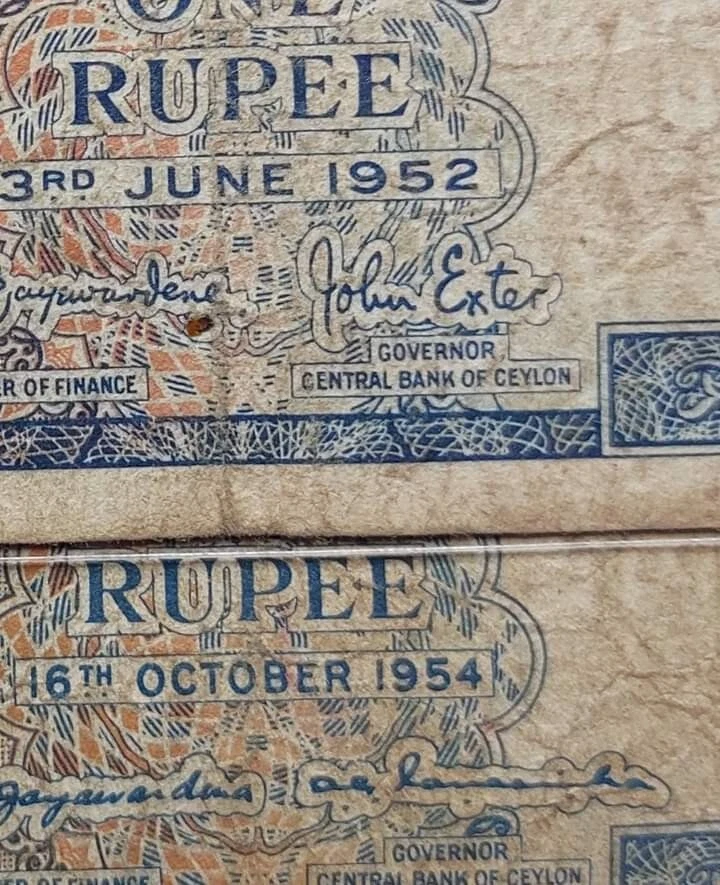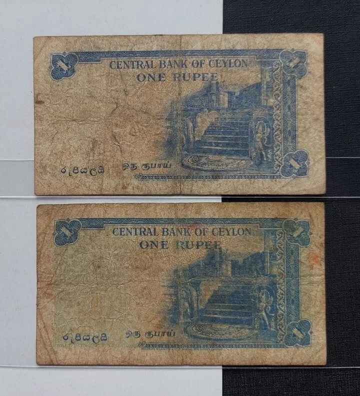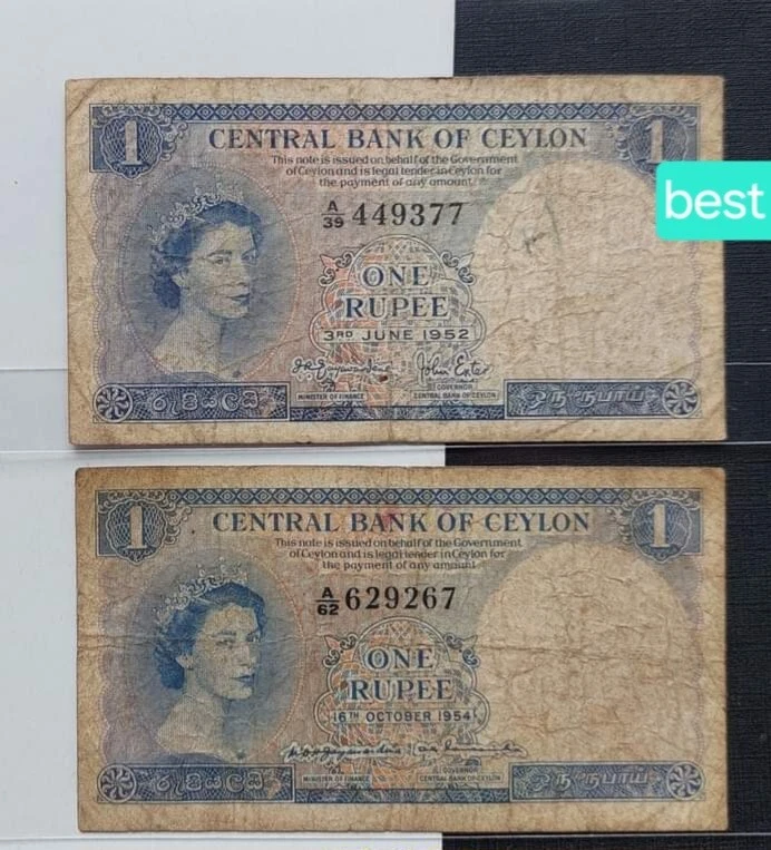 Ceylon Sri Lanka 1 RUPEE 1952 Queen Elizabeth TWO Bank Notes