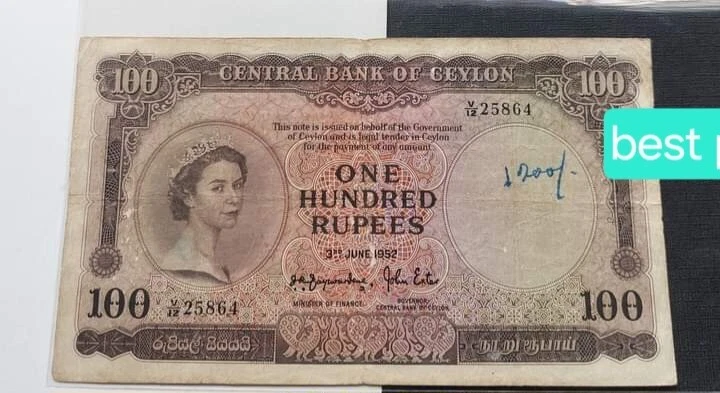 Ceylon: Queen 100 Rupees bank note Date :1952 Condition : Shipping Instructions * All items are sent by Registered mail , * Shipping cost for this item:4$. * Items bought and paid will be shipped within 4 working days. * Combined shipping is free