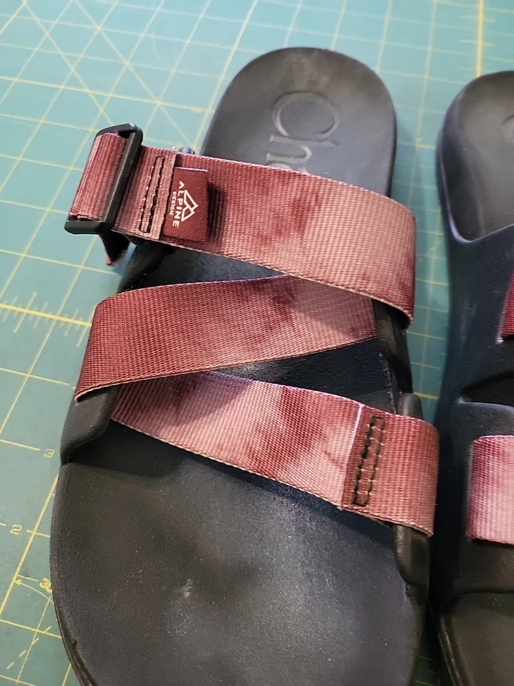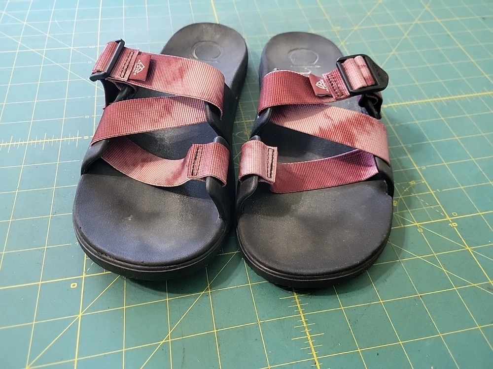 Country of Origin: Unknown MPN: NA Product Line: Chacos AU Shoe Size: NA Season: Fall, Spring, Summer, Winter Theme: Slide Sandals Occasion: Casual Shoe Width: M gtin13: NA UPC: NA Heel Style: Flat Insole Material: Foam Character: Slide Sandals Accents: Logo Personalize: No Heel Height: Flat (Under 1 in) UK Shoe Size: Na Type: Sandal Model: Chaco Chillos US Shoe Size: 10 Features: Adjustable, Adjustable Strap, Breathable, Comfort, Cushioned, Padded Department: Women Closure: Slip On Pattern: Tie Dye Outsole Material: Rubber EU Shoe Size: NA Lining Material: Blended Fabric Customized: No Upper Material: Polyester Color: Red Mahogany Vintage: No Style: Slide Brand: Chaco