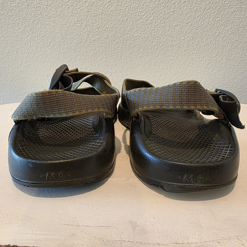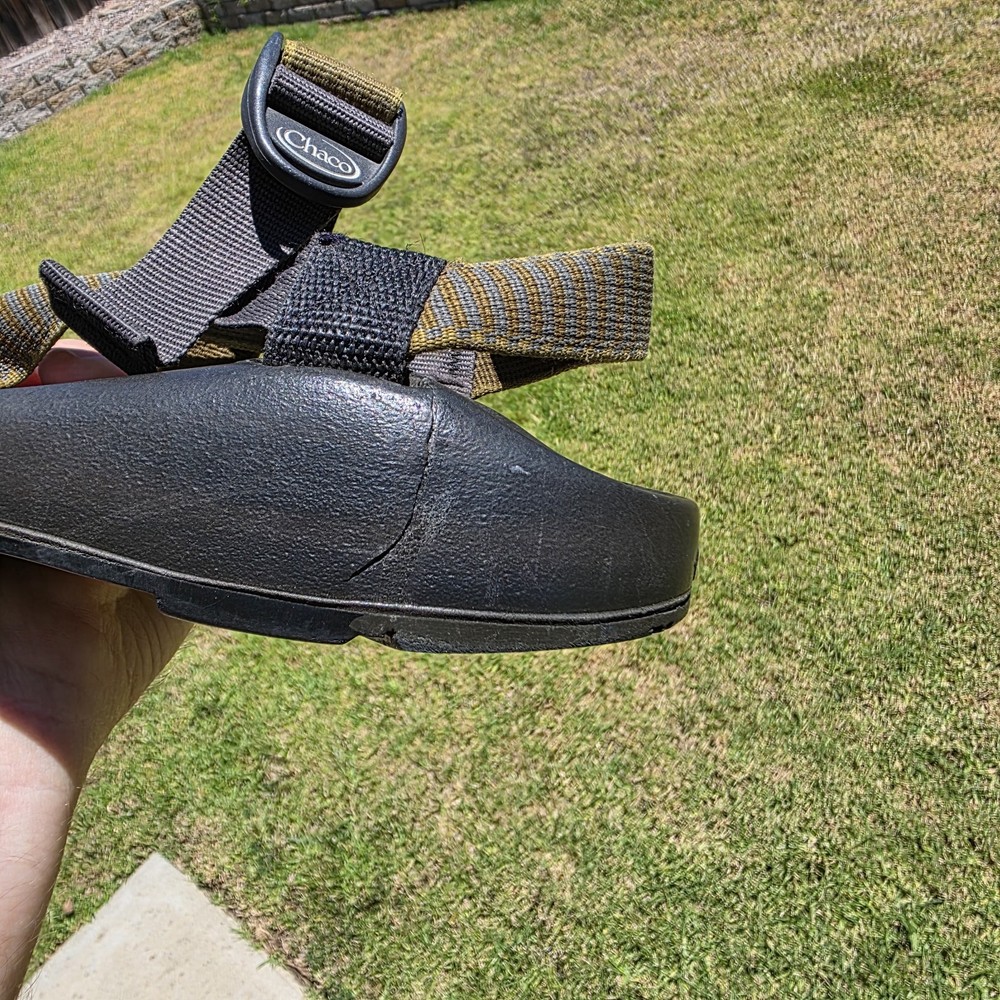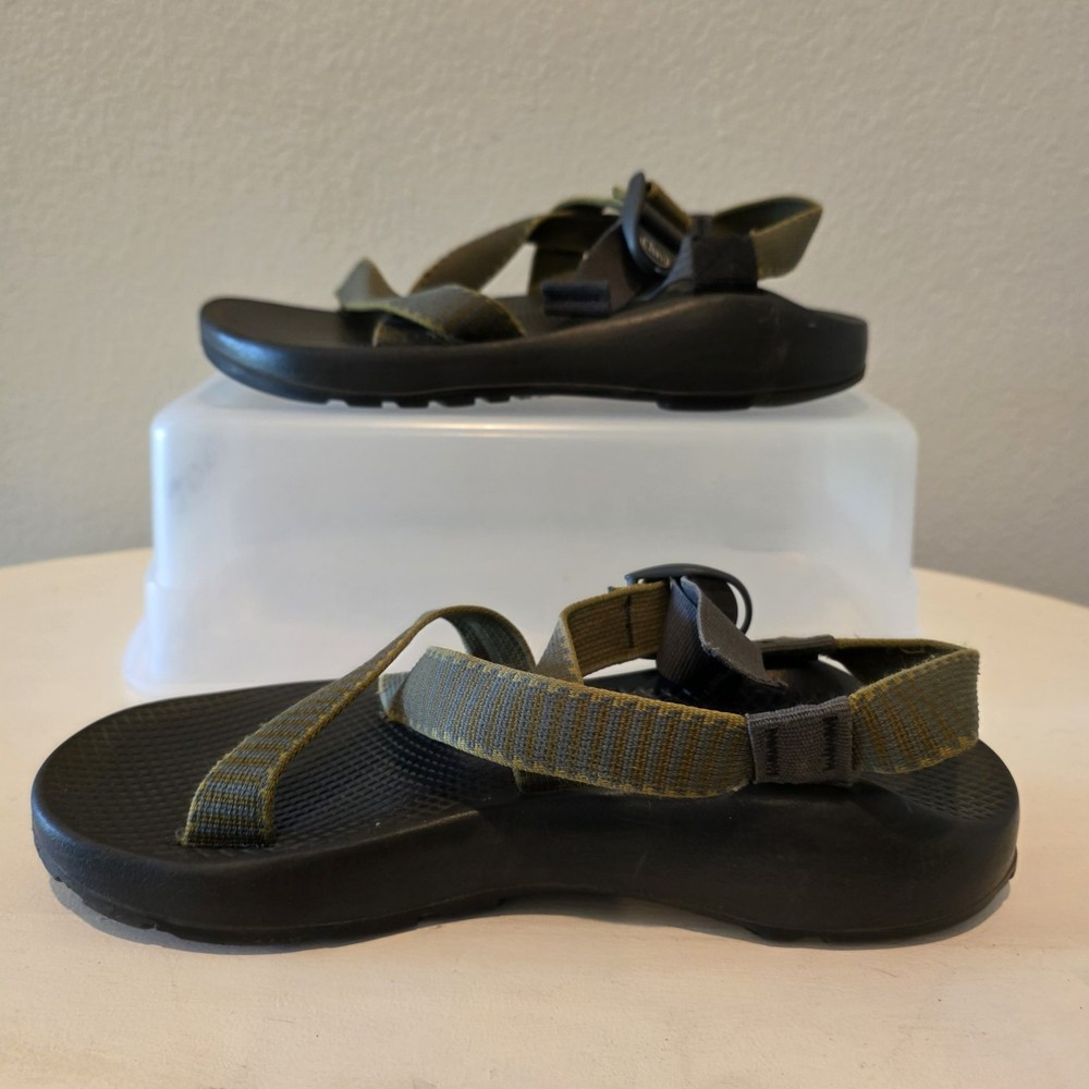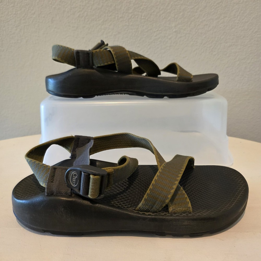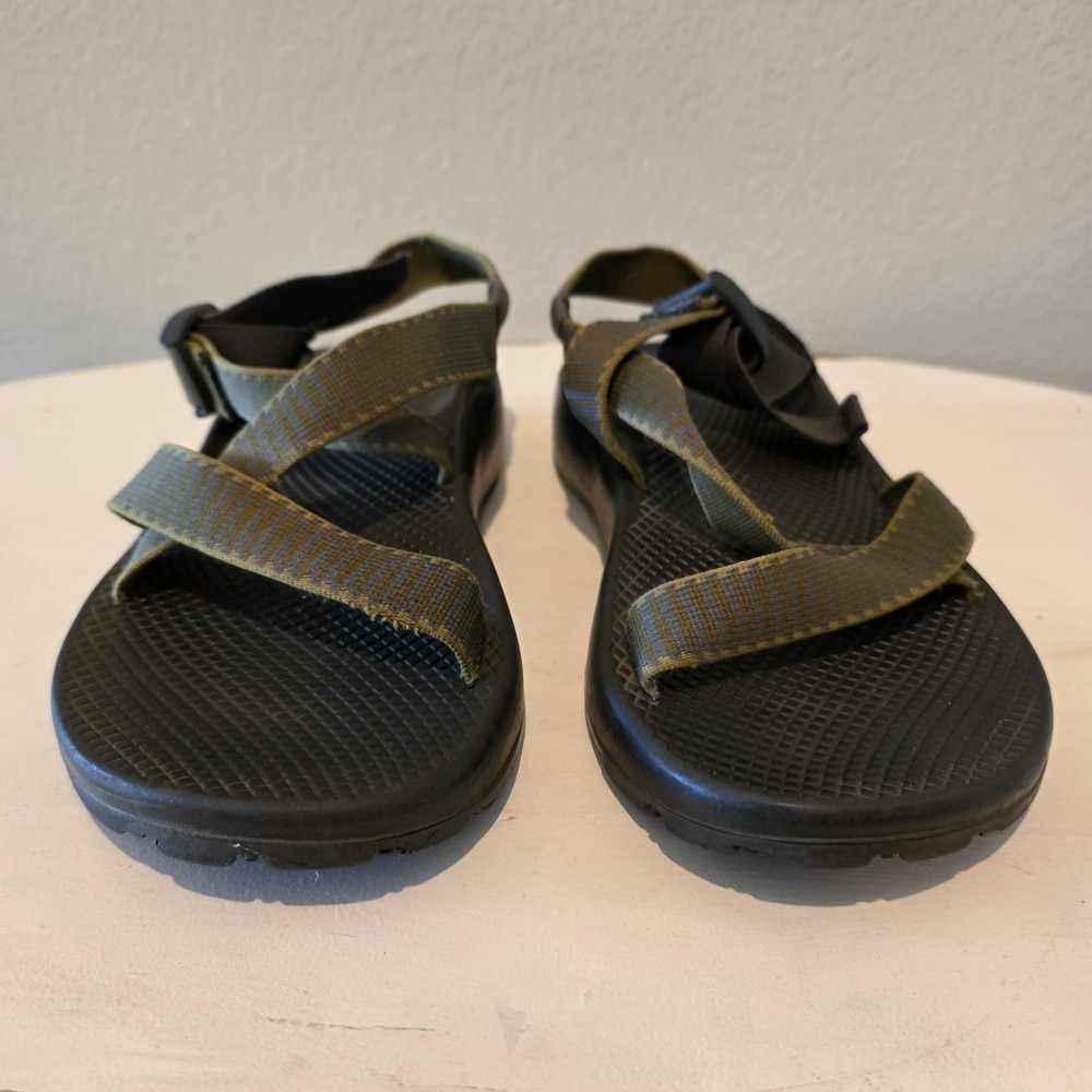 Chaco Z1 Summer Classic Sandals Men's 9 Green Black Outdoor Water LEFT SANDAL HAS CRACK AT BASE. THE CRACK DOES NOT SEPARATE ANY FURTHER - SEE PIC