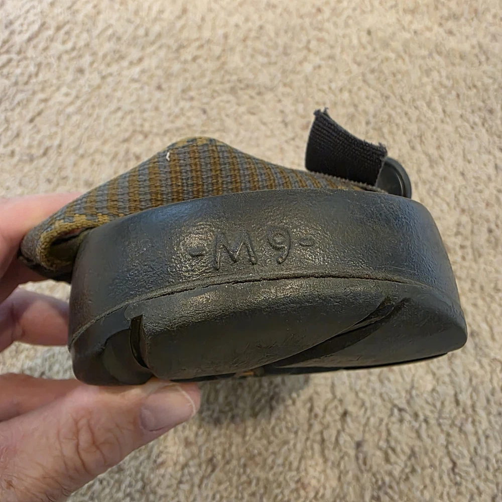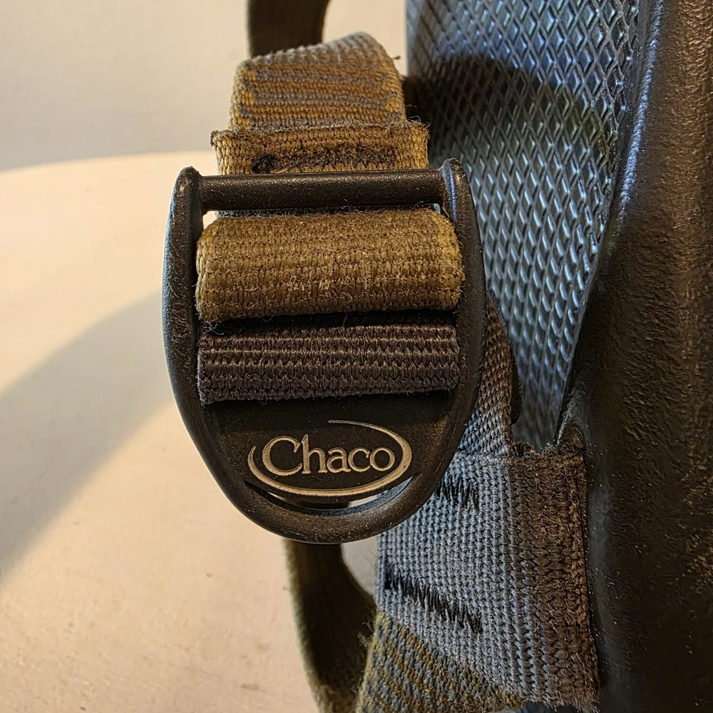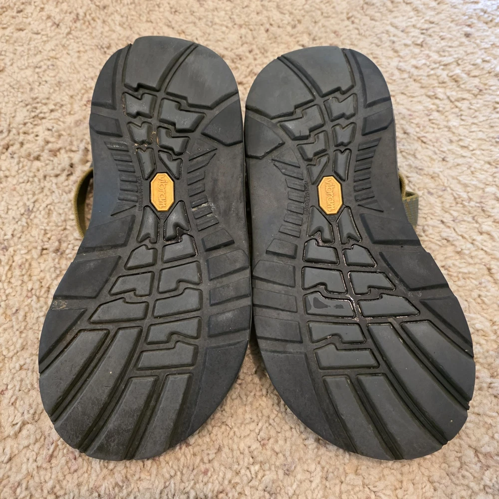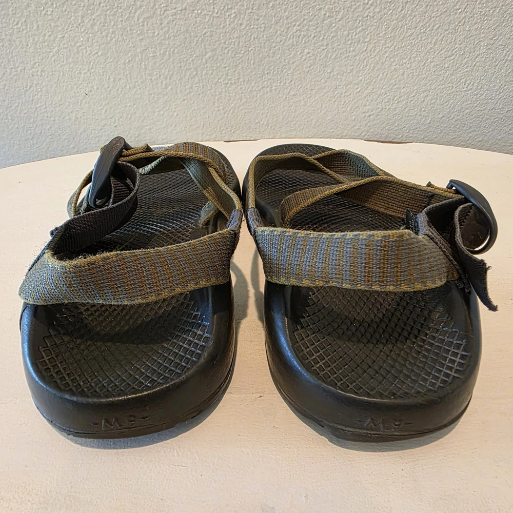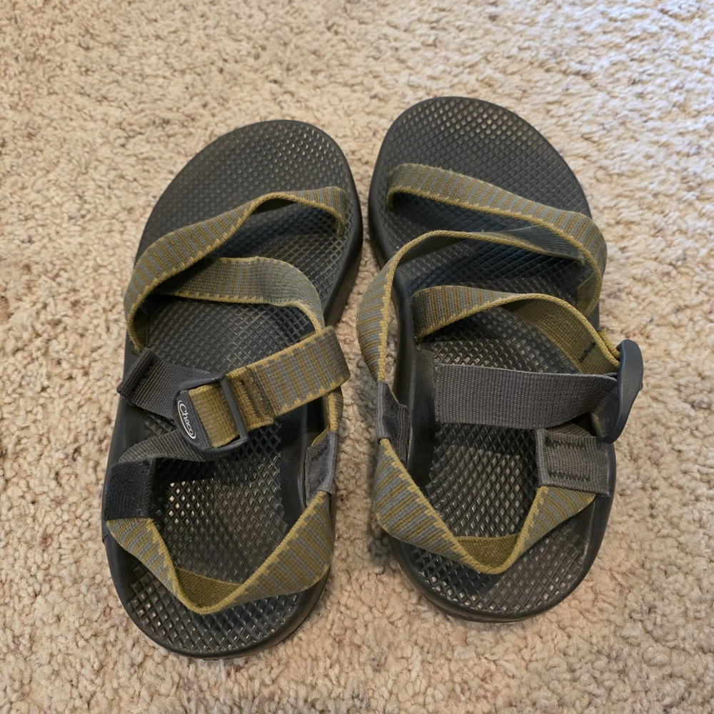 Chaco Z1 Summer Classic Sandals Men's 9 Green Black Outdoor Water LEFT SANDAL HAS CRACK AT BASE. THE CRACK DOES NOT SEPARATE ANY FURTHER - SEE PIC