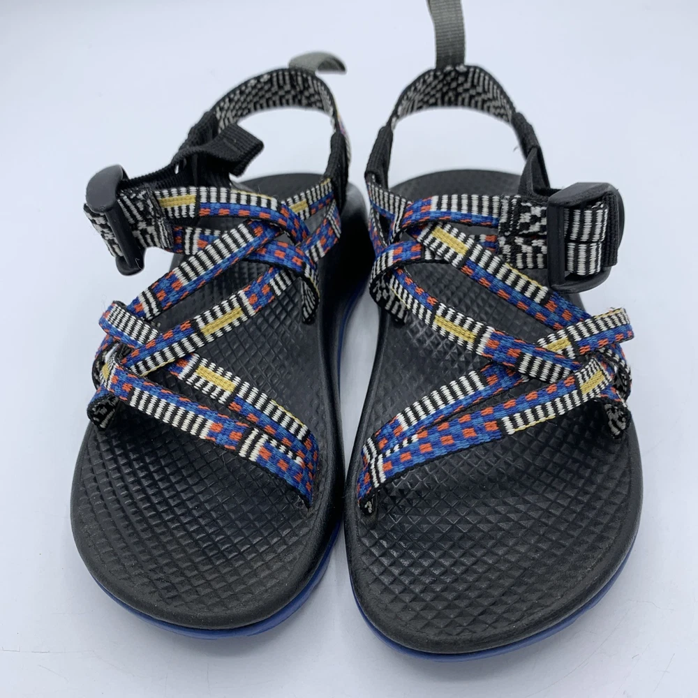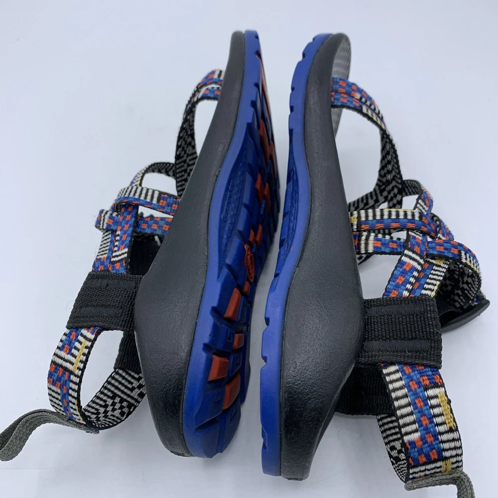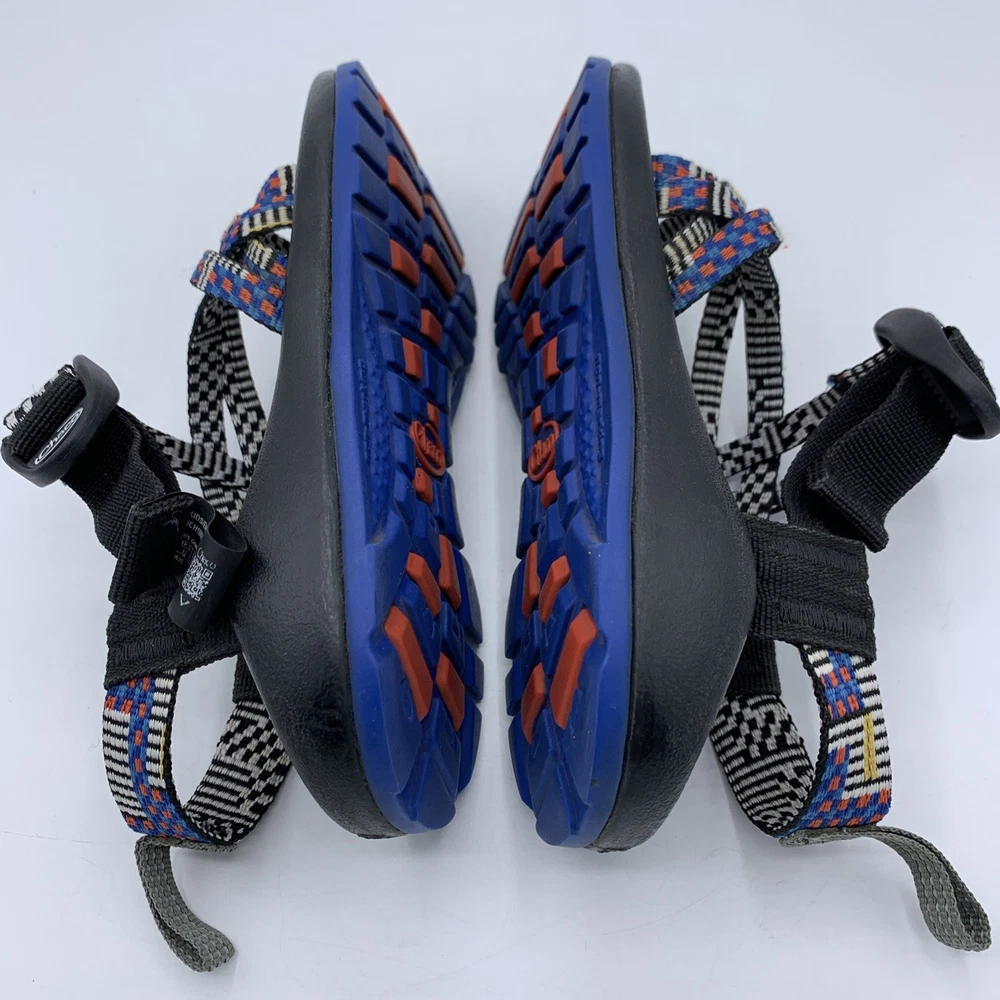 The Chaco ZX/1 Ecotread Youth 12 Mantel Cerulean Blue hiking and beach strappy sandals are perfect for active kids who love outdoor adventures. With an open toe design and adjustable buckle closure, these sandals offer comfort and support for all-day wear. The rubber outsole provides grip and stability, while the breathable synthetic fabric lining ensures dryness during water activities. Whether your child is walking, hiking, or engaging in water sports, these sandals are a reliable and stylish choice for summer, fall, or spring seasons. The colorful design and durable construction make them a versatile option for any outdoor enthusiast.