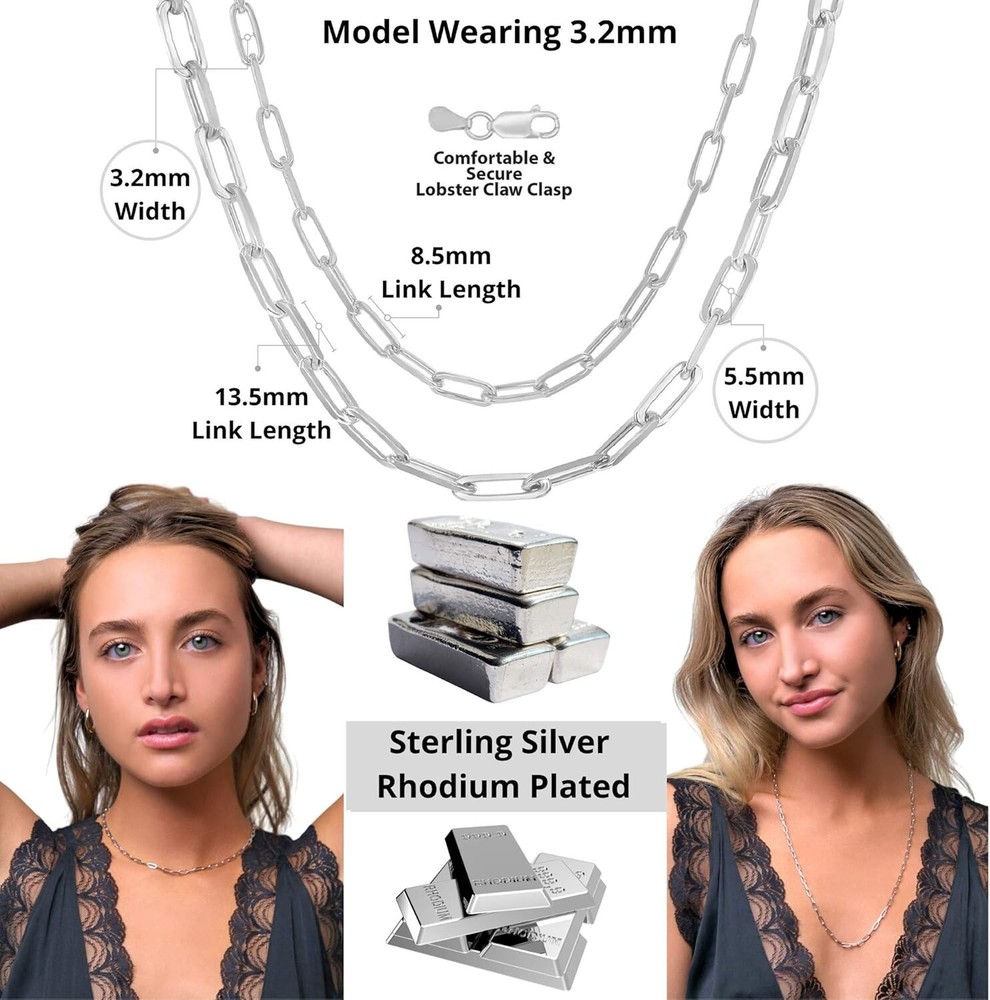 Chain Necklaces for Women | Sterling Silver 14k Gold Plated | Women's Trendy Layering Necklaces | Choose Width and Length | Fine Chain Necklaces Crafted in Italy HIGH-QUALITY handcrafted sterling silver and gold plated silver paperclip necklaces a gorgeous outfit boosting can't go wrong chain necklace that makes an effortless style statement that you will absolutely love 923 STERLING SILVER crafted in silver with anti-tarnish Rhodium plating this precious metal finish layer adds a long-lasting tarnish-free shine for a high polish sparkling lustrous finish. necklaces are hypoallergenic sensitive skin friendly, nickel, lead, and cadmium-free. EXPERTLY CRAFTED in Italy and made to last, wear every day and everywhere, add charms, sliders, or pendants wear alone or layered with chokers or other chain necklaces, they make beautiful and trendy gold layering necklaces for women GIFT READY jewelry for women arrives elegantly packaged with a soft pouch within a lovely jewelry gift box; it makes a beautiful gift for yourself and makes a unique gift idea for women and teen girls WE BELIEVE that jewelry influences how we feel about ourselves and reflects our character. At , we aspire to design a vast range of quality, uniquely crafted jewelry that empowers you to discover your natural confidence and beauty, helping you look and feel more confident and beautiful Product details Item display length 16 inches Material Metal Metal type Sterling Silver Chain type Elongated Gem type Unavailable About this item HIGH-QUALITY handcrafted sterling silver and gold plated silver paperclip necklaces a gorgeous outfit boosting can't go wrong chain necklace that makes an effortless style statement that you will absolutely love 923 STERLING SILVER crafted in silver with anti-tarnish Rhodium plating this precious metal finish layer adds a long-lasting tarnish-free shine for a high polish sparkling lustrous finish. necklaces are hypoallergenic sensitive skin friendly, nickel, lead, and cadmium-free. EXPERTLY CRAFTED in Italy and made to last, wear every day and everywhere, add charms, sliders, or pendants wear alone or layered with chokers or other chain necklaces, they make beautiful and trendy gold layering necklaces for women GIFT READY jewelry for women arrives elegantly packaged with a soft pouch within a lovely jewelry gift box; it makes a beautiful gift for yourself and makes a unique gift idea for women and teen girls WE BELIEVE that jewelry influences how we feel about ourselves and reflects our character. At , we aspire to design a vast range of quality, uniquely crafted jewelry that empowers you to discover your natural confidence and beauty, helping you look and feel more confident and beautiful See more About this item