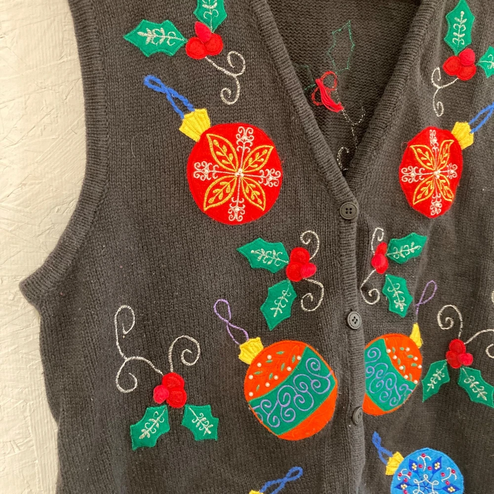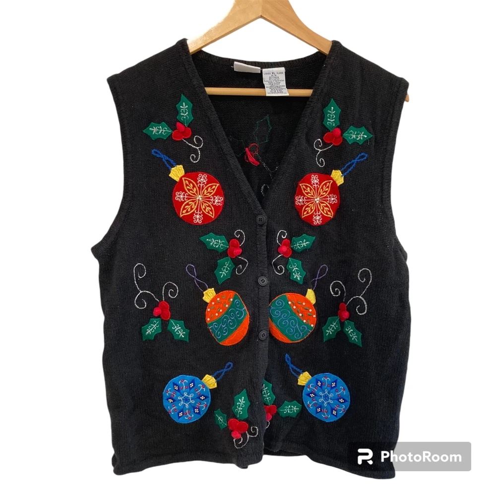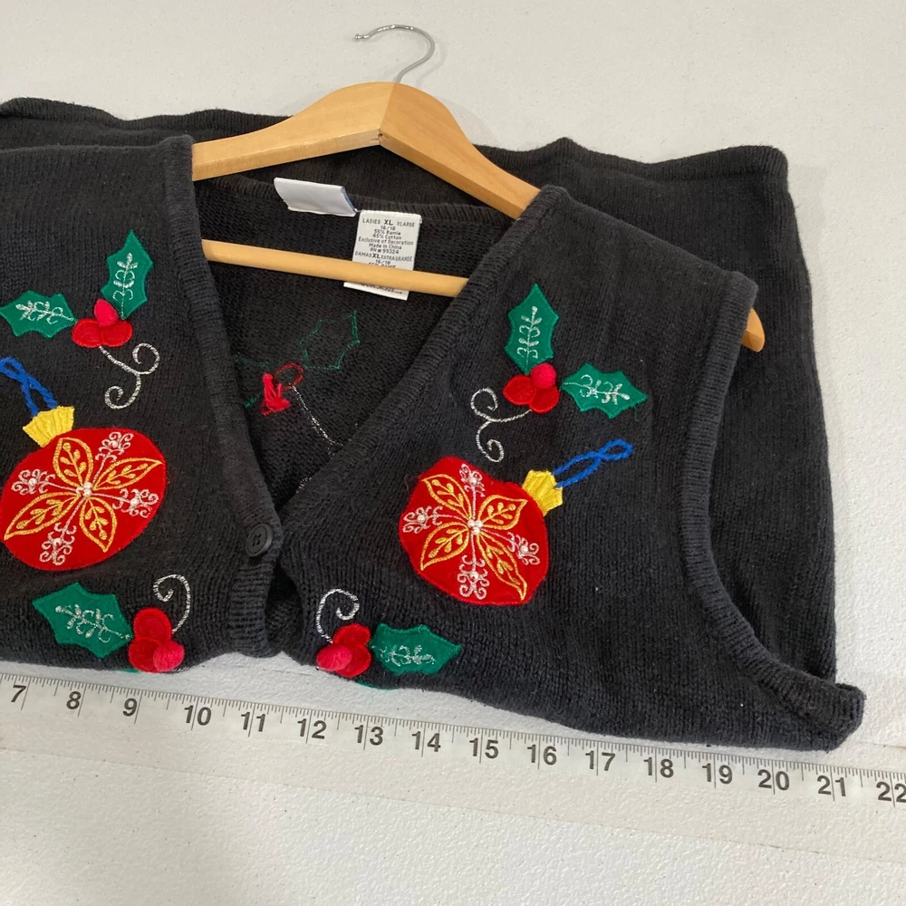 Acentos:Arco, bordado, cremalleraEstado del artículo:De segunda mano - buenoColor:NegroTipo:ChalecoLongitud de la manga:Sin mangasNotas del vendedor:“Worn as pictured”brand:Bobbie BrooksEstilo:Chaleco suéter sin mangasTema:NavidadLongitud de la chaqueta/abrigo:Longitud mediaCuidado de la ropa:Lavado a mano solamenteTipo de tela:TejidoMarca:Bobbie BrooksTemporada:InviernoTamaño:XLVintage:SíTipo de tamaño:RegularMaterial del forro:Algodón/RamieDepartamento:MujeresMaterial de la carcasa exterior:Mezcla de algodónOcasión:Casual, NavidadPatrón:SólidoCierre:Botón, cremalleraAjuste:Regular