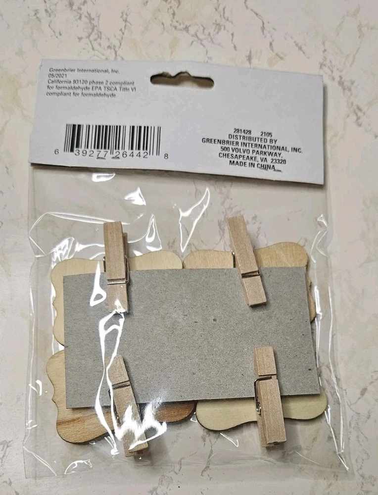Make your crafting projects easy and fun with this set of 4 Crafter's Square Chalkboard Tag Clothespins. Each tag has a chalkboard shape with a clothespin on the back, perfect for creating personalized tags or labels. You can write messages or draw designs on the chalkboard using chalk or chalk markers, and then clip them onto your crafts or decorations using the clothespin. These tags are made of wood with a slate finish, and are perfect for all occasions. Handmade , these tags are small in size but have a lot of charm and character. Whether you're creating name tags, gift tags, or decorative pieces, these Chalkboard Tag Clothespins from Crafter's Square are the perfect addition to your crafting toolkit. #gdrawer-1#