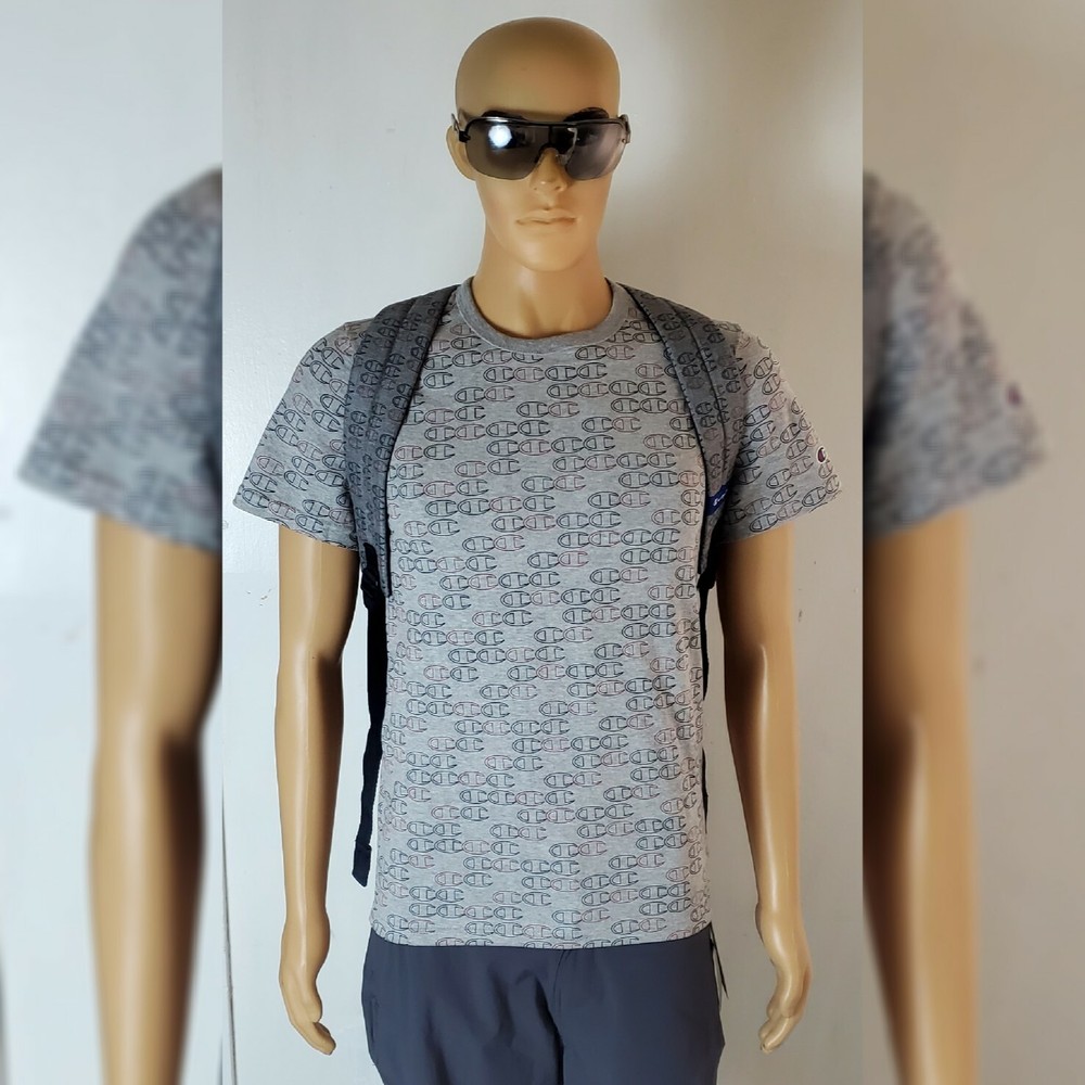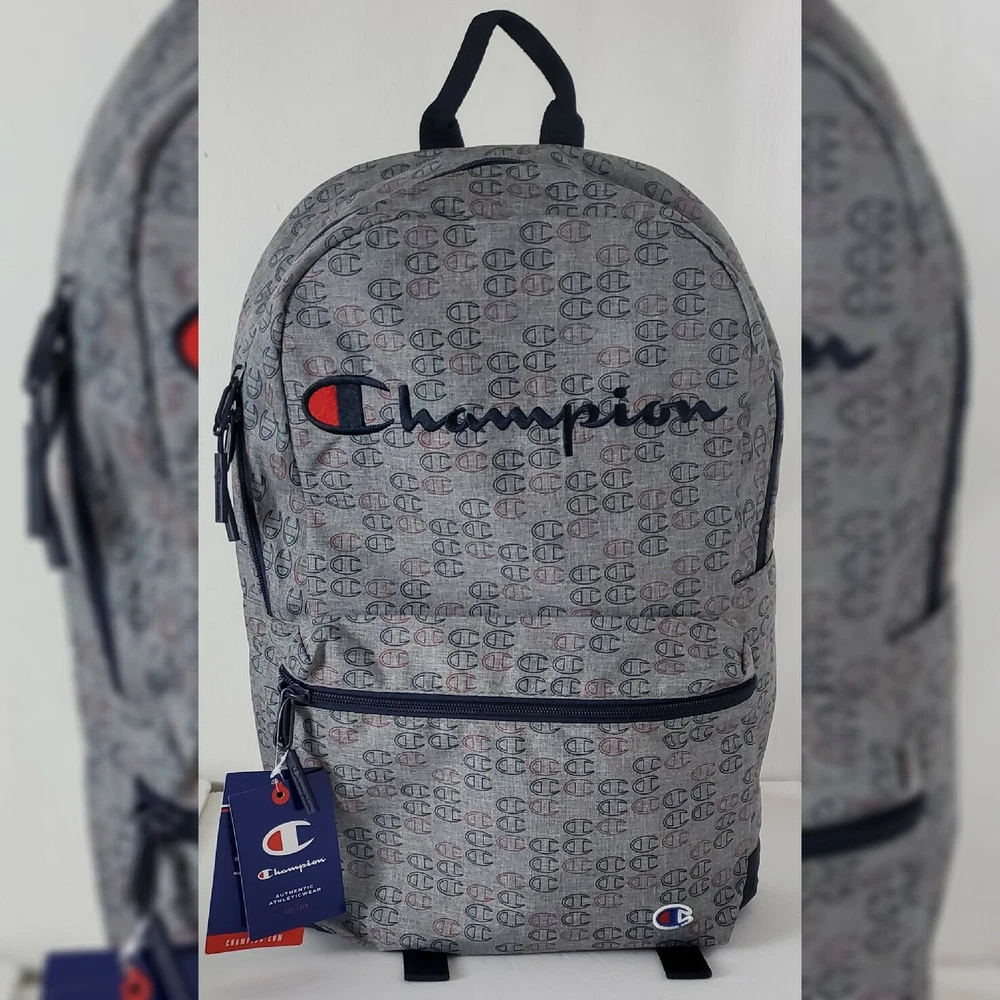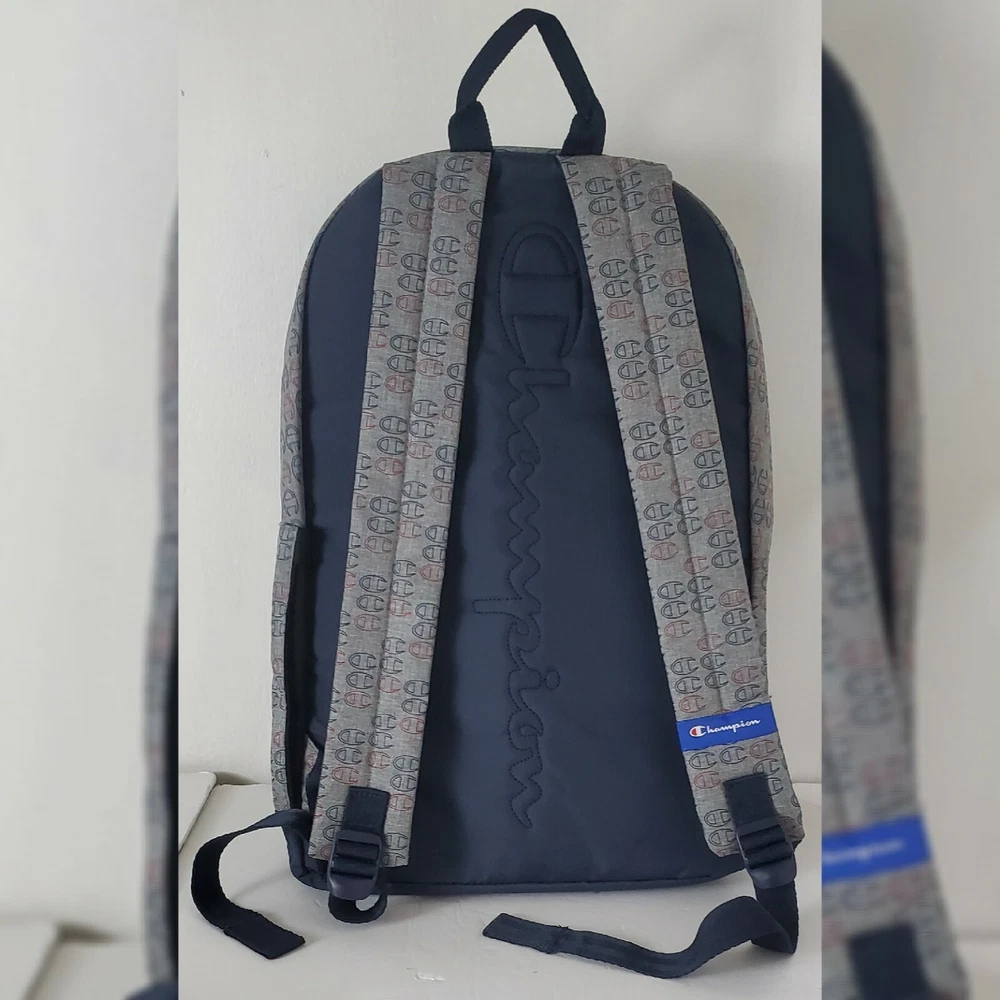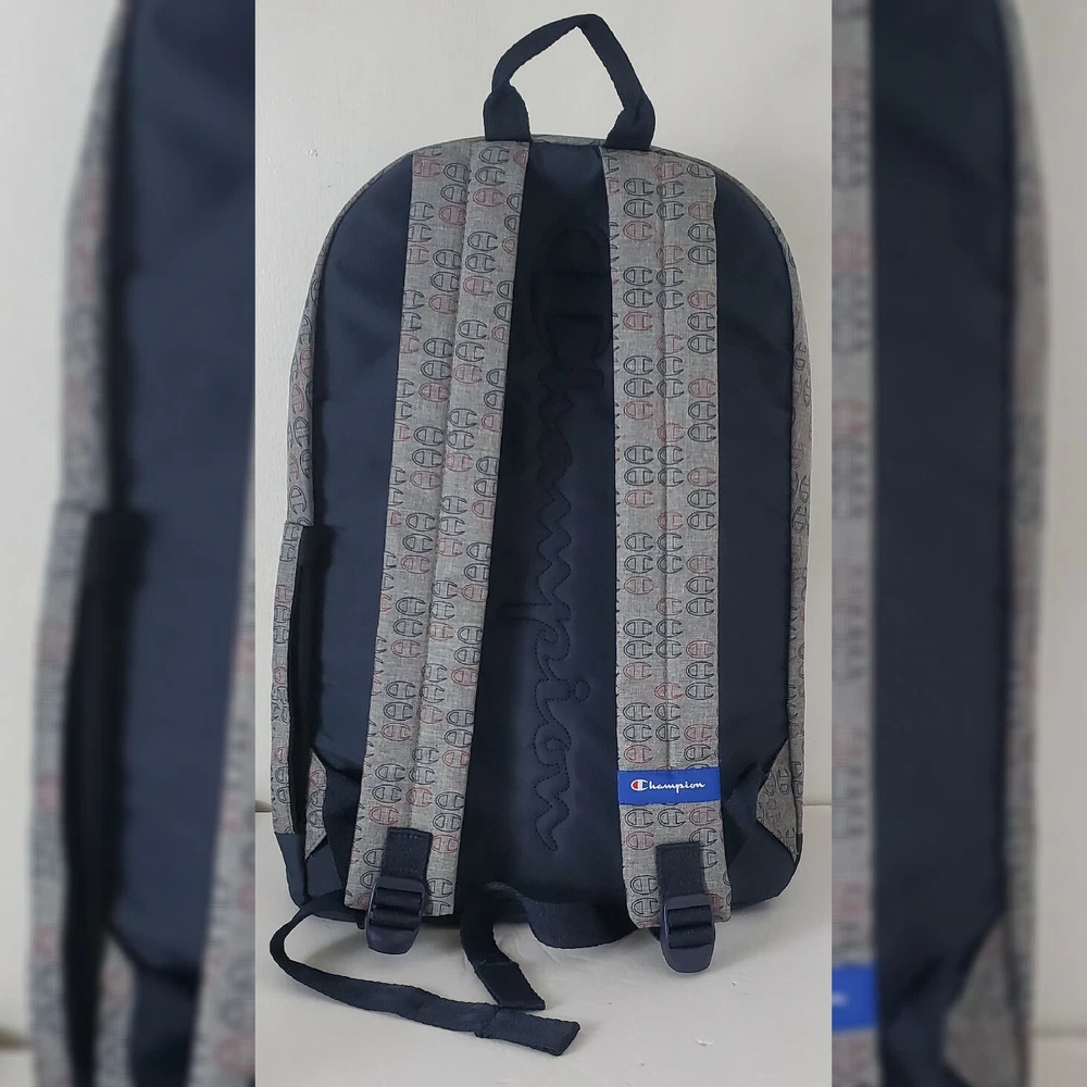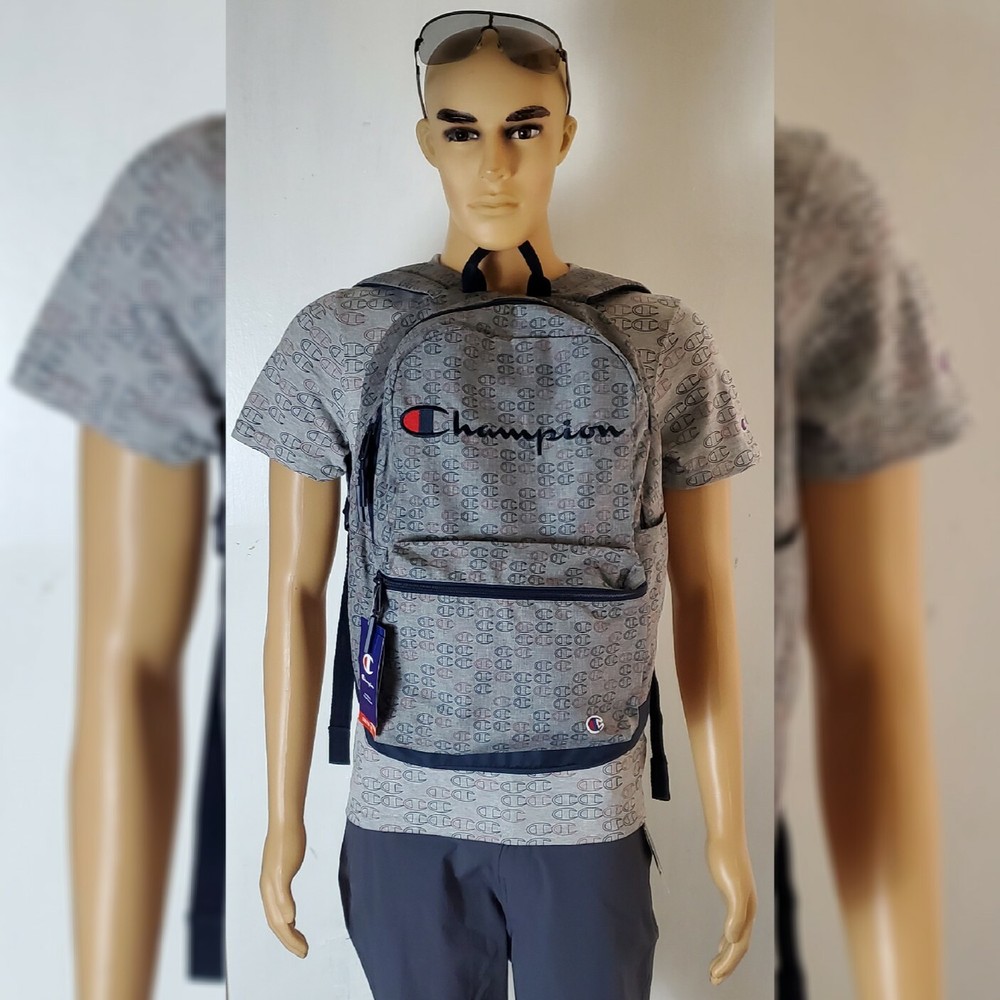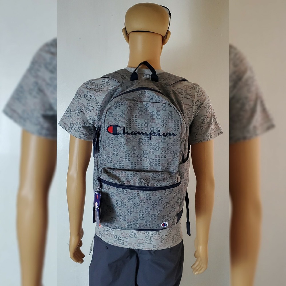 CHAMPION AUTHENTIC ATHLETICWEAR ASHER LOGO ALLOVER PRINT BACKPACK MEN'S.CONDITION IS NEW WITH TAGS. A logo print details this backpack with plenty of storage space. - Top handle - Dual adjustable shoulder straps - ULTIMATE DURABILITY PADDED LAPTOP SLEEVE EXTERIOR ZIP POCKET ORGANIZER POCKET WATER BOTTLE POCKET Approx. 18" H x 12" W x 6" D - Approx. 3" handle drop; 18" adjustable strap drop - Imported Textile exterior and lining
