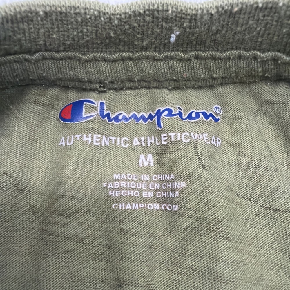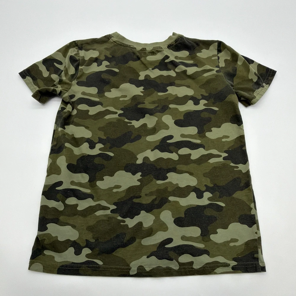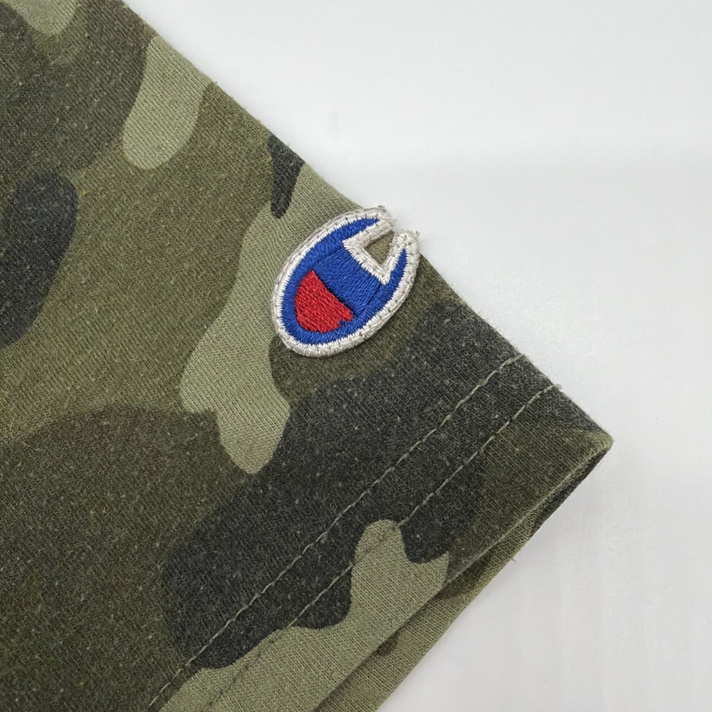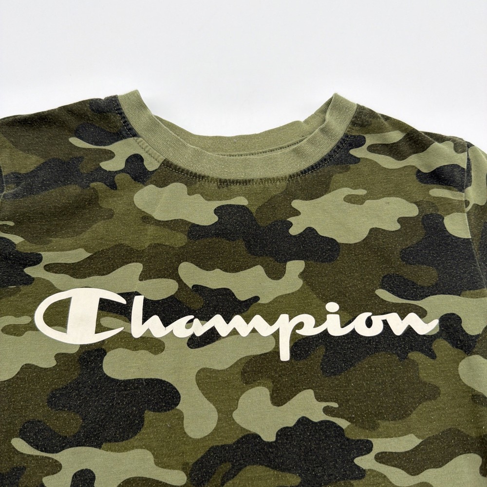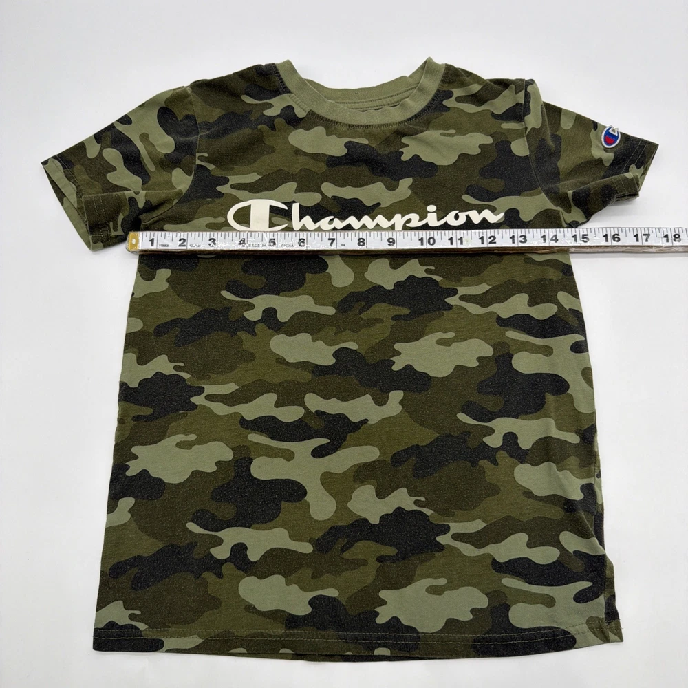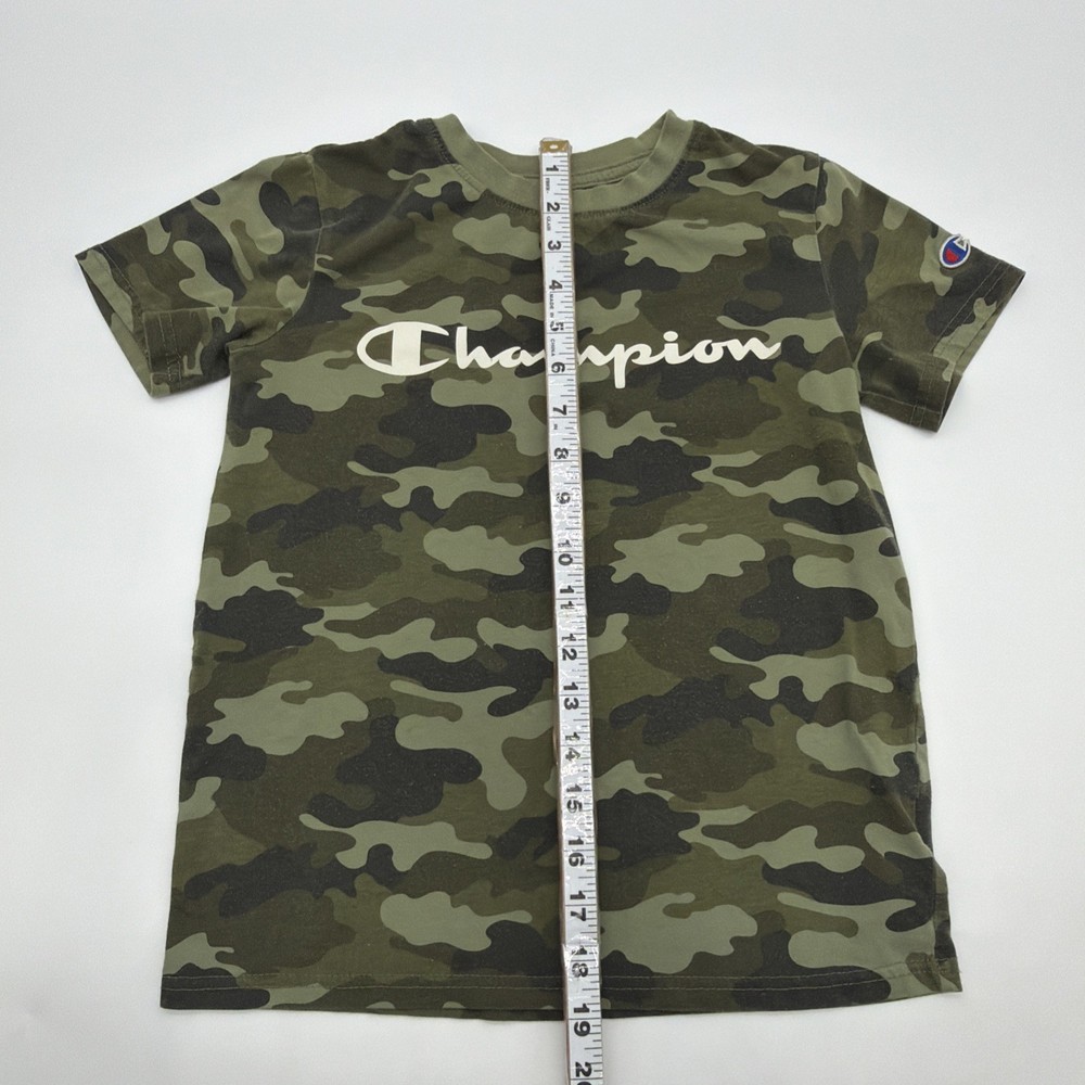 The Champion Authentic Athleticwear T-shirt for boys in size M features a camo logo design, perfect for casual, activewear, or party occasions. Made from a blend of polyester and cotton, this pullover shirt with a crew neck is ideal for all seasons and various activities like school, baseball, and basketball. The multicolor camouflage pattern adds a classic sporty touch, making it a stylish and comfortable choice for young boys on the go. Check pictures for flaws and measurements