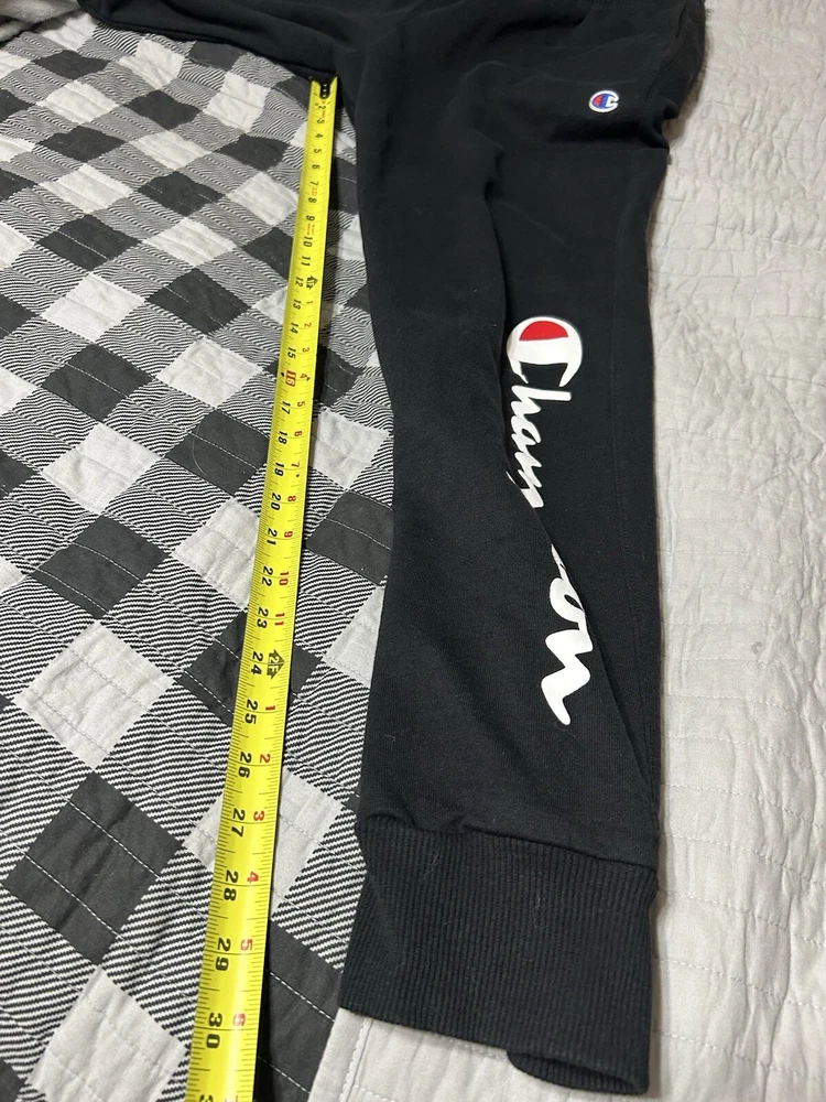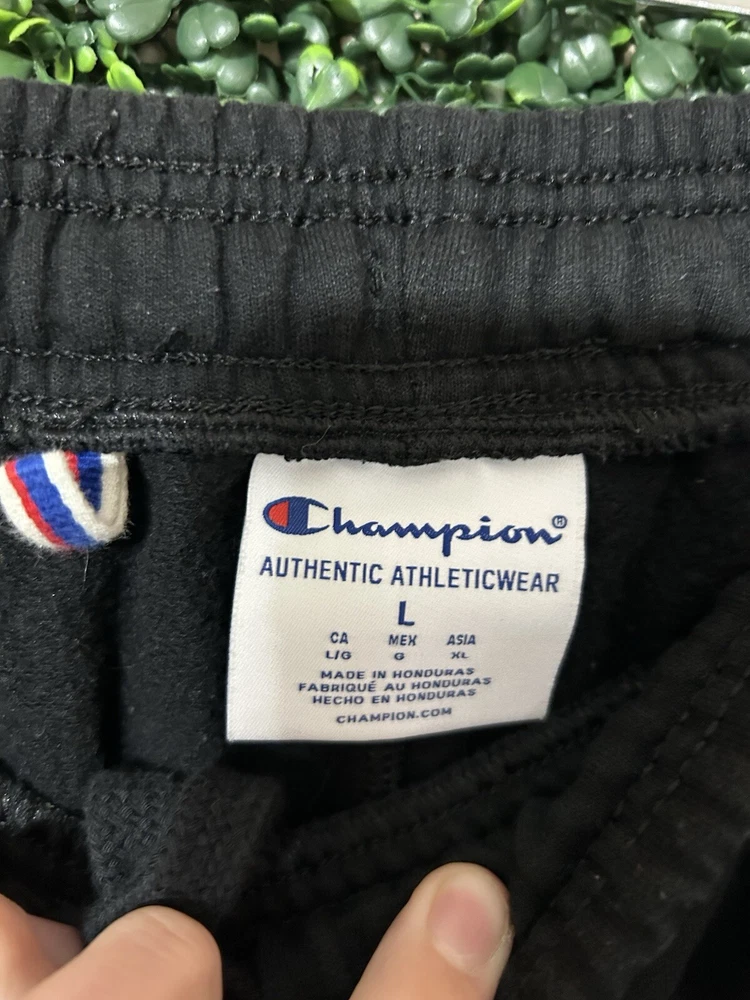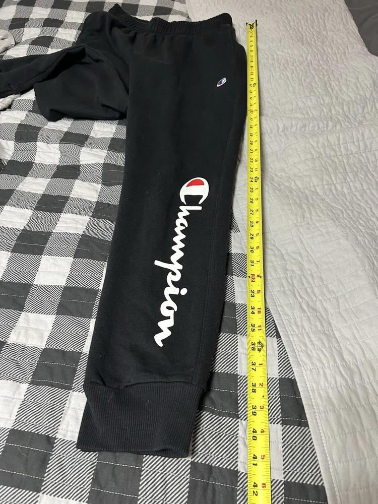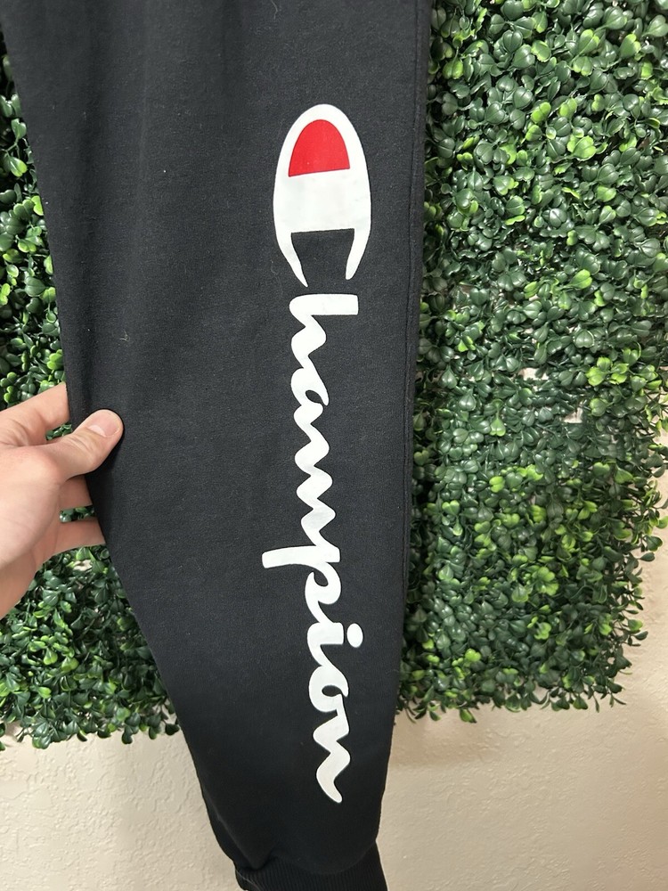 Compression Area: Leg Product Line: Champion Closure: Pull On Type: Pants Inseam: 30 in Season: Spring, Winter, Fall Size Type: Regular Size: L Style: Sweatpants Fit: Athletic Features: Pockets Brand: Champion Performance/Activity: Driving, Fishing, Football, Gym & Training, Running & Jogging, School, Skateboarding, Soccer, Track & Field, Walking Occasion: Activewear Color: Black Material: 100% Cotton Garment Care: Machine Washable Department: Men