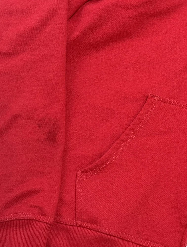 Has a small stain on right sleeve. No other rips or stains. In good condition.
