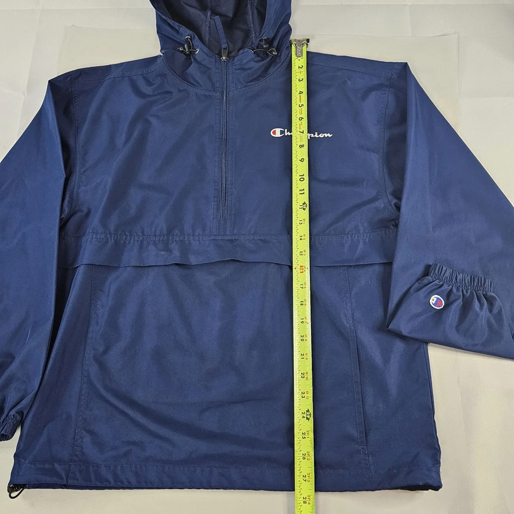 Champion Stadium Packable Half Zip Windbreaker Jacket Blue Mens Sz Medium. Has Small Hole On The Left Directly On The Side. Pretty Hidden By The Left Sleeve, Shown In Last Few Pictures. Other Then That The Jacket Is In Great Condition. Please Check All Pictures Closely For A More Detailed Visual Description Of Condition And Measurements. Ships Out Free Within One Business Day.