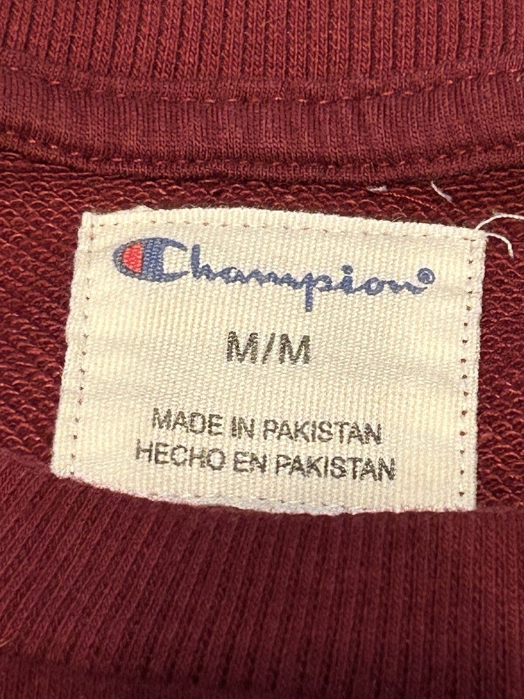 Pit to pit 22”. Champion sweatshirt, featuring a solid pattern and long sleeves with a pullover closure. The crewneck design and regular fit make it suitable for any occasion, from gym and training sessions to cross-training and walking. The Mulled Berry color adds a touch of style, while the logo accents provide a subtle branding experience. Crafted from a blend of polyester and cotton, this sweatshirt is machine washable for easy care. It's available in size M and is perfect for men who enjoy sports-themed clothing. Get your hands on this high-quality sweatshirt from Pakistan, designed to provide comfort and style all year round.