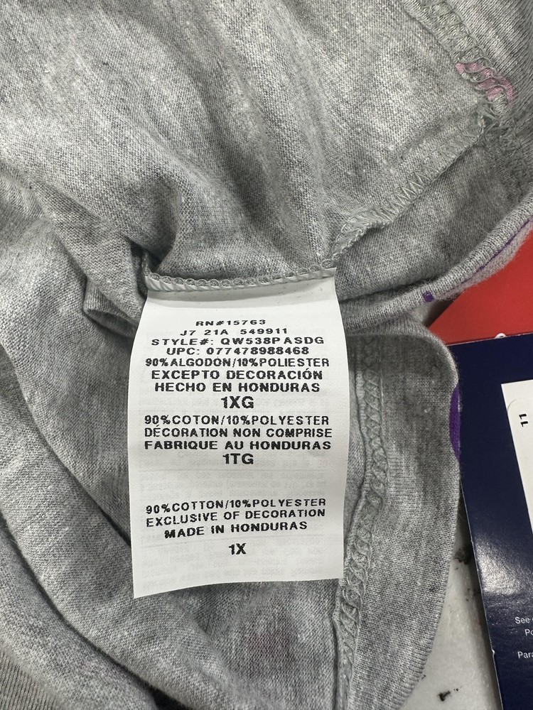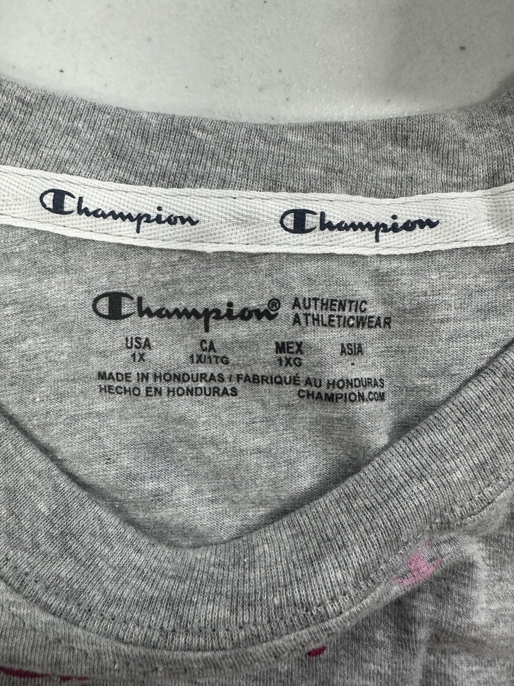 Champion Womens Plus Size 1X Gray Plus Cropped Scatter Logo Athletic Tee Top New with tags Brand new with original Champion retail hangtags attached. Fabric is clean and intact with no stains, holes, or pilling. Appears unworn and unwashed. Brand: Champion Style: Plus Cropped Tee P short sleeve cropped shirt with multi scatter logo print Color: Gray heather with multicolor Champion logos in an allover geometric scatter pattern Size: Womens 1X plus size Material: 90% cotton, 10% polyester jersey knit Details: Crew neck, short sleeves, cropped length, ribbed neckline, Authentic Athleticwear branding, Champion logo tape inside neckline Country of origin: Made in Honduras Style code: QW538PASDG, RN# 15763, UPC: 077478988468 Actual Measurements: Weight: 0 lb 4.2 oz Keywords: plus size crop top, casual athletic tee, logo graphic shirt, spring summer loungewear 26C0135_WTCK_FU_X