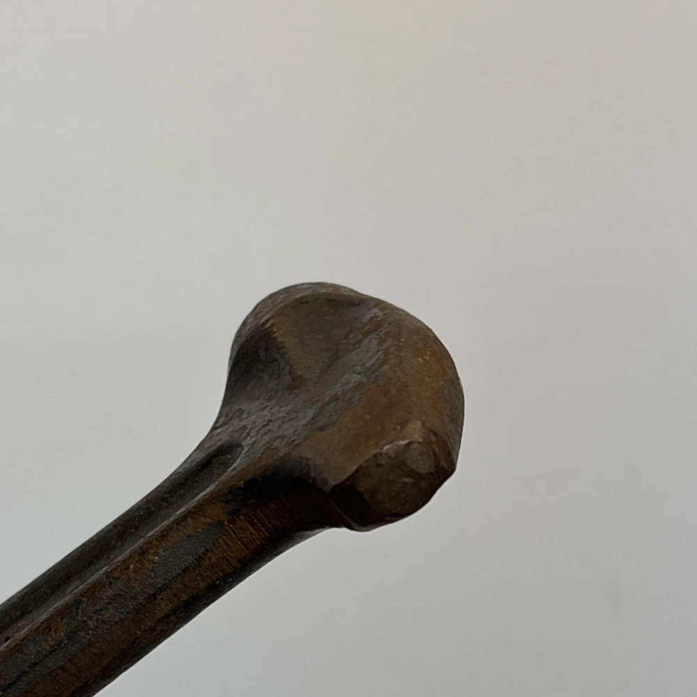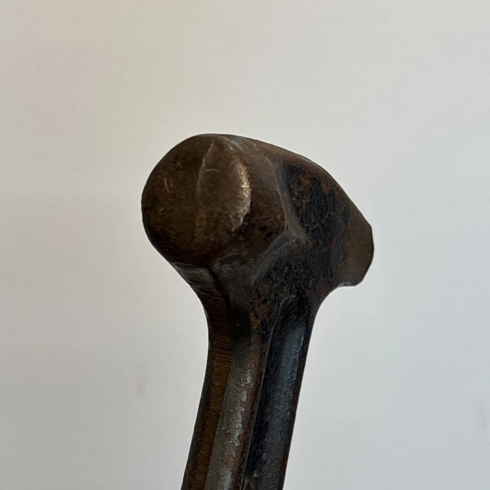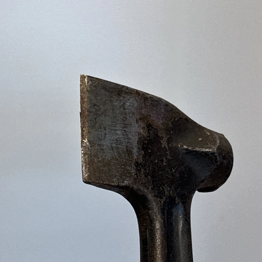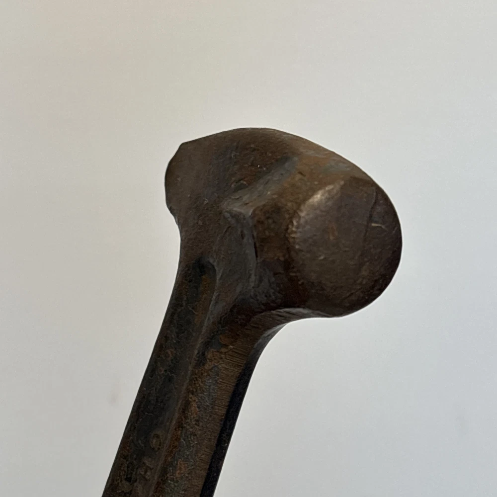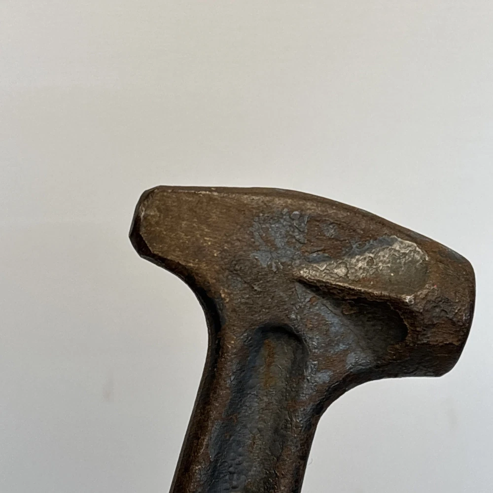 Vintage Champion-DeArment No. 17 combination crate and nail clinching tool made in Meadville, Pennsylvania, USA. One-piece forged steel construction with integral handle between both working ends. One end features an approximately 1½ inch wide chisel/axe-style cutting blade with opposing hammer face. The opposite end includes a larger hammer face with a smaller opposing striking surface. Designed for crate opening, nail driving, and nail clinching in warehouse and packing applications. Clearly marked “Champion-DeArment” and “No. 17.” See photos for full details and measurements. Condition Used vintage condition with surface rust, oxidation, and wear from age and use. Cutting edge shows wear but no cracks observed. Hammer faces show typical striking marks. Structurally solid. See photos for complete condition details.