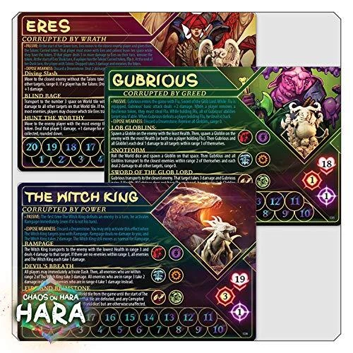An expansion to the Champions of Hara core game, featuring 4 new playable characters, 3 new corrupted foes, and 16 new secenarios including 3 ultra hard end game scenarios. 4 New playable characters each with their own unique resource system Includes 6 transclucent green "Globlin" miniatures, and 6 transcluent pink "Dark Rift" miniatures. 3 new corrupted foes to face off against in 16 new co-op scenearios. (Including 4 dedicated solo scenarios) Expand the base game to a max of 6 players! Includes new world events cards and special, community made monsters.