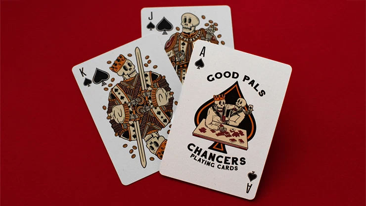The Card Inn's very FIRST deck! Chancers Playing Cards is the debut deck by Good Pals. 'The Chancer - A person who takes many risks to gain an advantage' Chancers Playing Cards is the representation of taking risks in life to gain your reward. Explore our fully custom casino-themed playing cards featuring truly unique court cards. Deck specs: * Printed by USPCC * Premium Bee stock (black edition) / Standard USPCC stock (red edition) * Standard tuck (black edition) / Matte tuck (red edition) * Fully custom deck, including 12 x skeletal court designs * Familiar but custom number cards - suitable for magic, cardistry + card games. Photos by @forest_of_spades + @kiergomes ------------------------------- --added to catalog: 06/22/2023 --SKU: MMSI-73621 --Brand: Good Pals --Ebay Cat: 06 Decks --Ebay Cat#: 3565553819