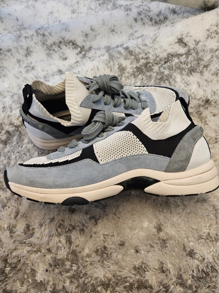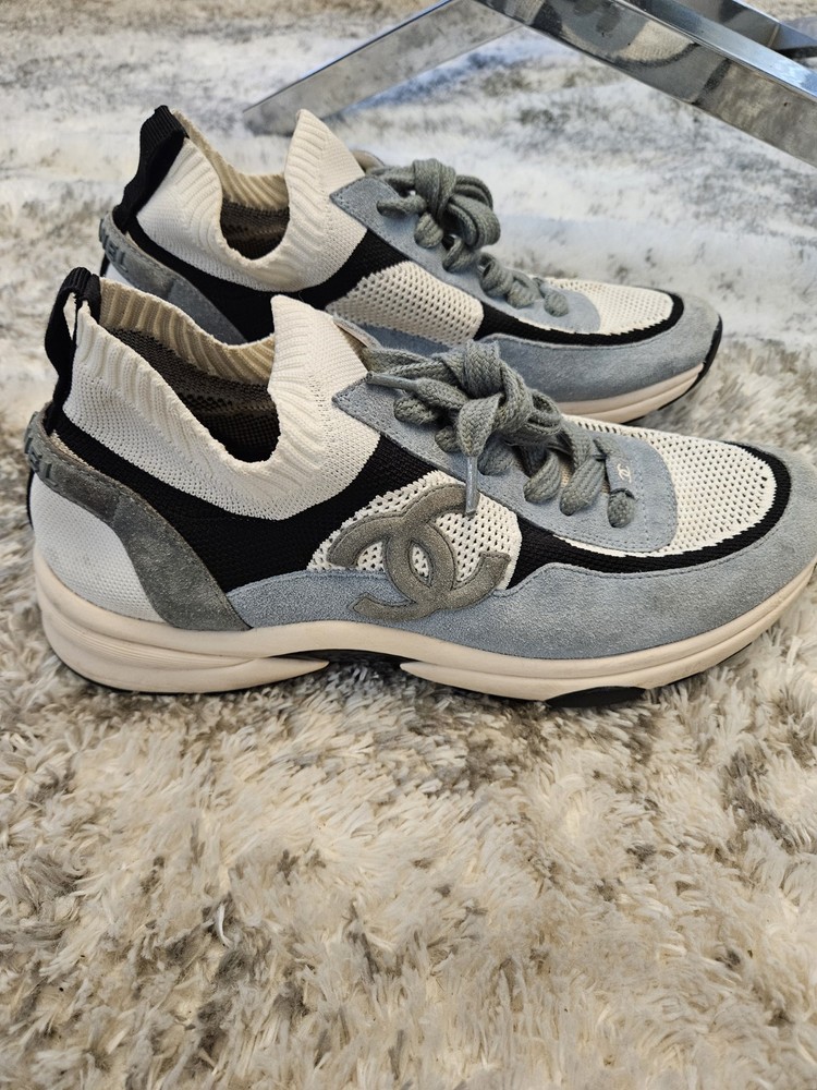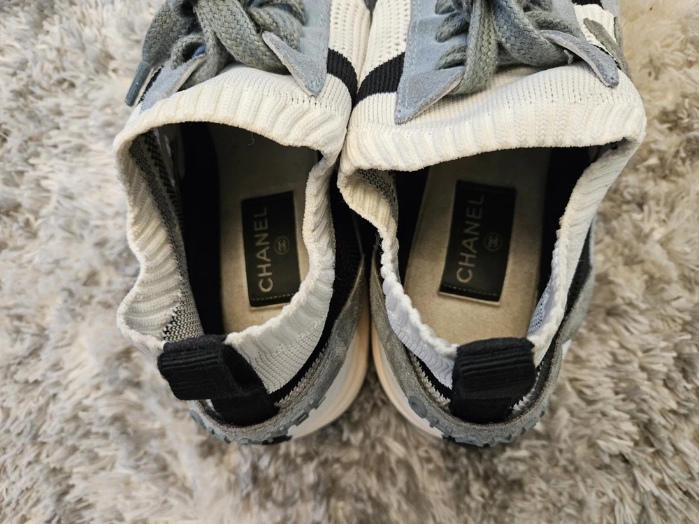 These sneakers are a fantastic find—the suede and knit combo looks stylish even with some wear. The blue, white, and grey colorway is versatile, and the CC logo adds a luxe touch. Fits true to size, super comfortable, and still in great shape for being pre-loved. No box, but a steal for the price!