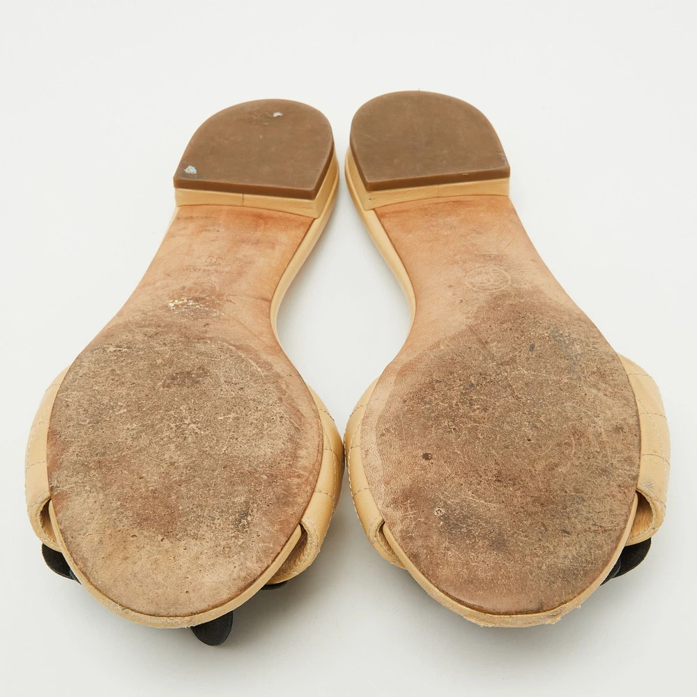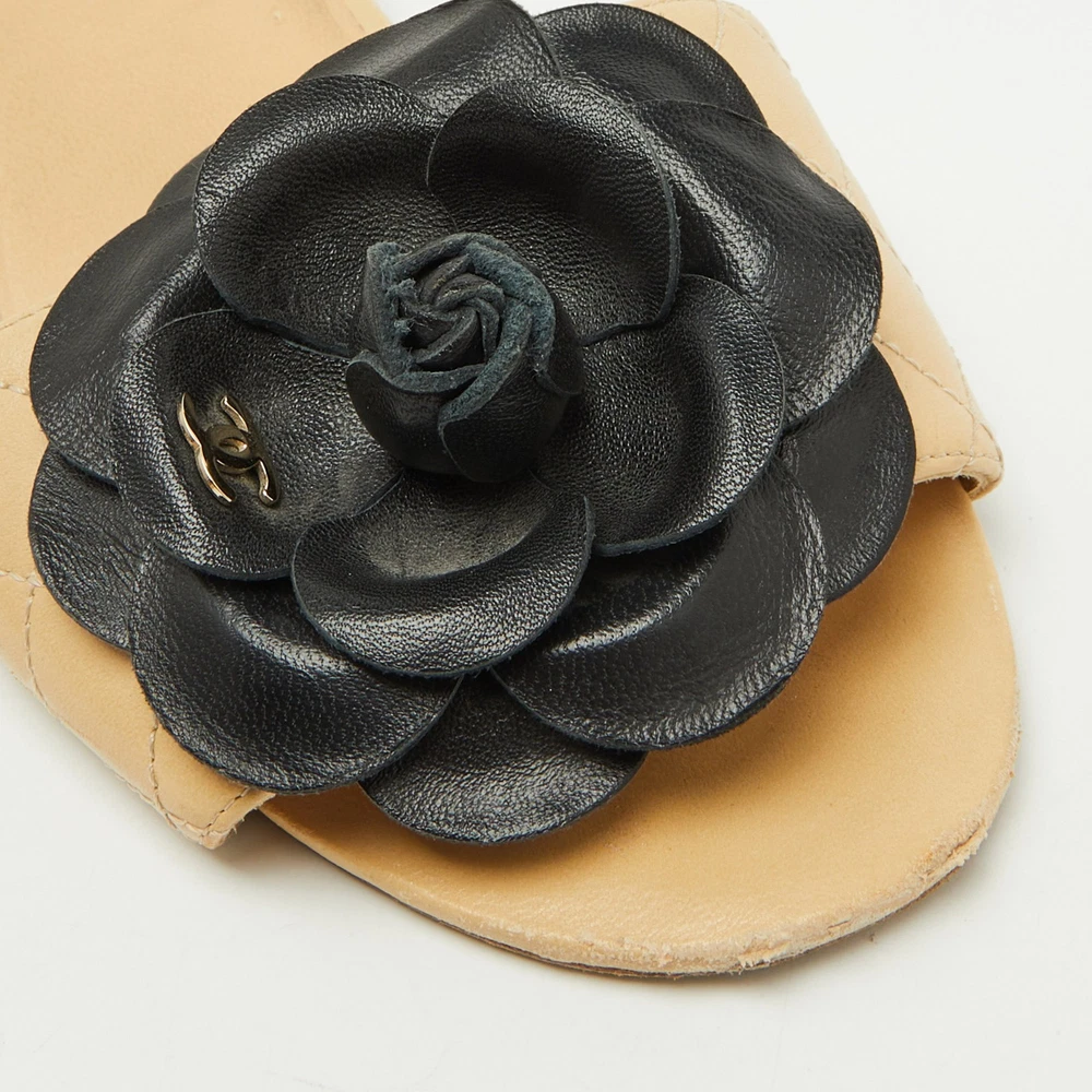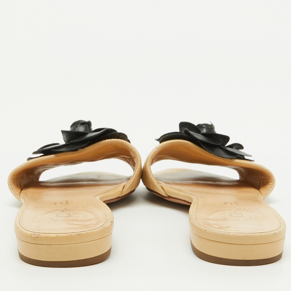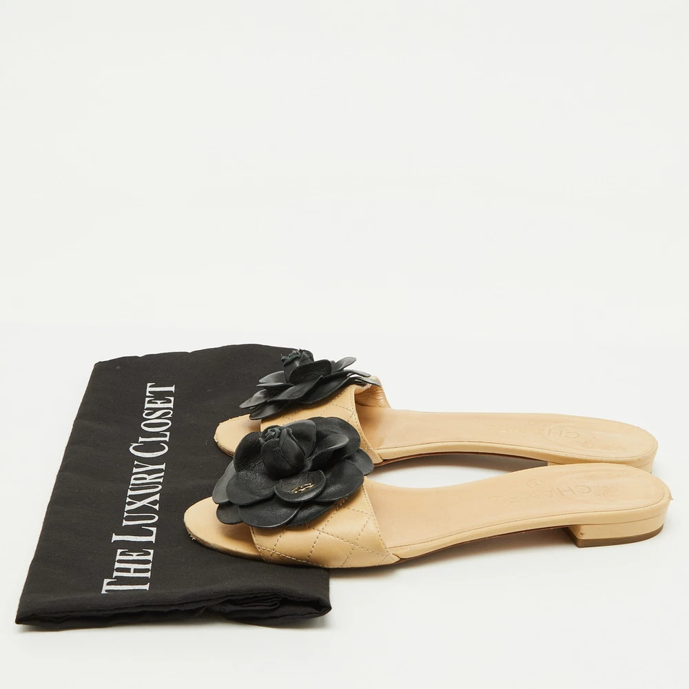 Chanel Beige Leather CC Camellia Flat Slide Sandals Size 39