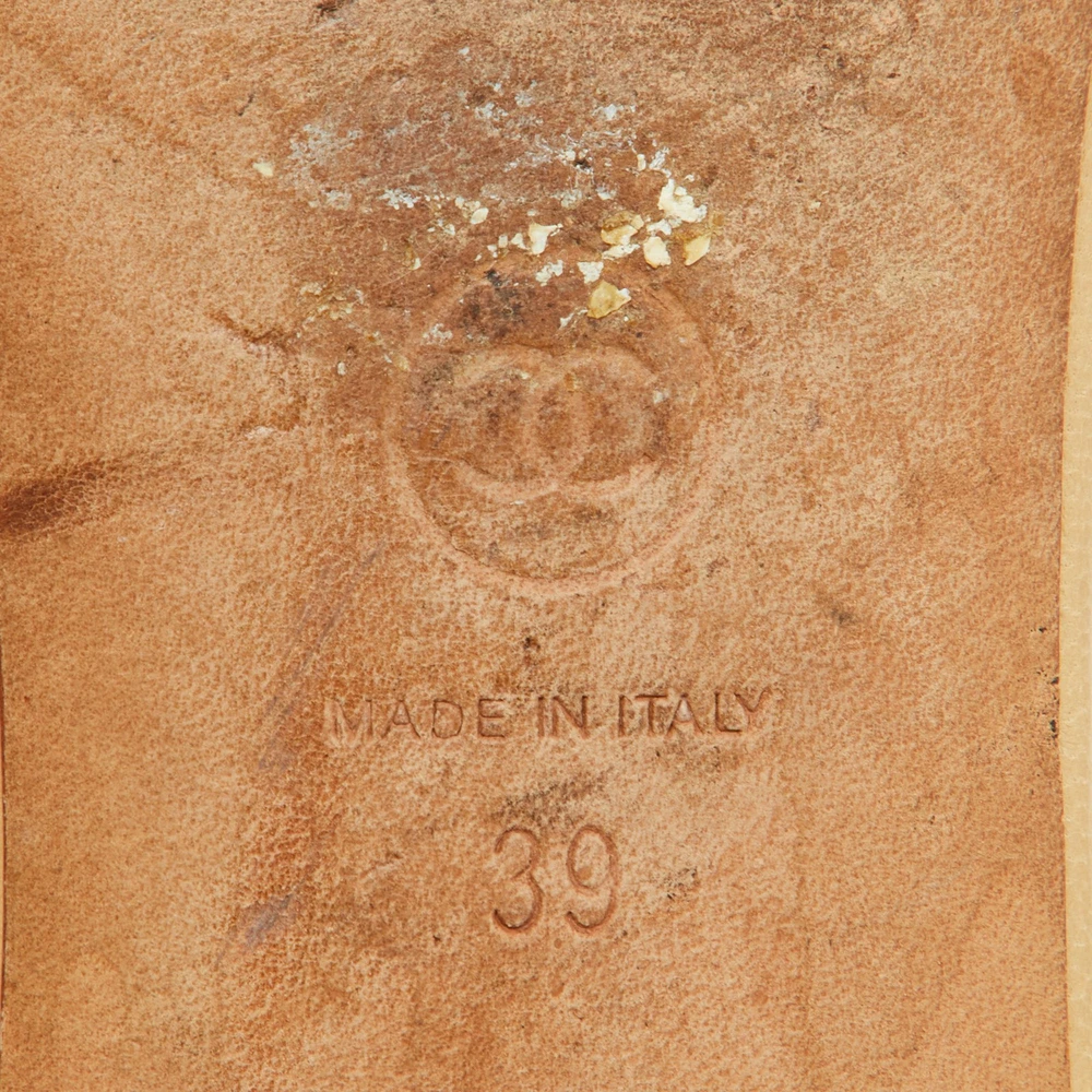 Color: Beige Product Type: Sandals Upper Material: Leather Style: Camellia Country/Region of Manufacture: France EU Shoe Size: 39 Size: 39 Department: Women Gender: female Material: Leather US Shoe Size: N/A Brand: Chanel Customized: No