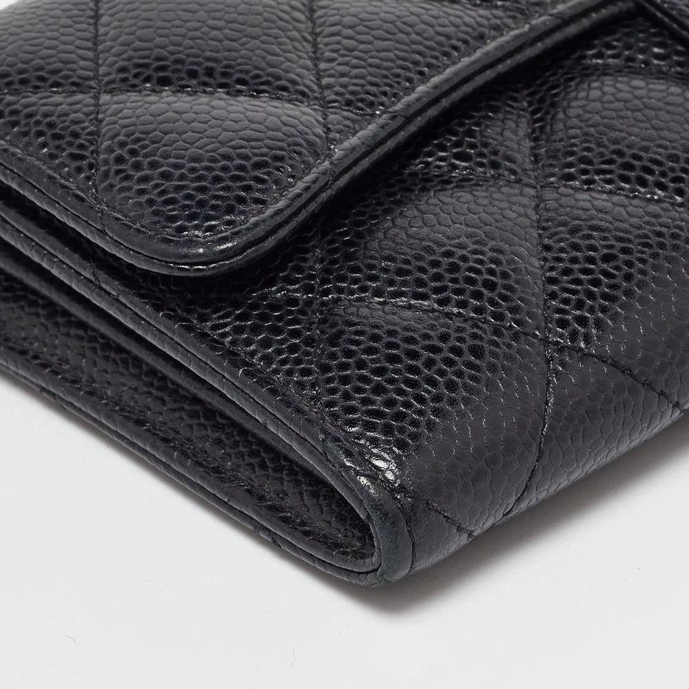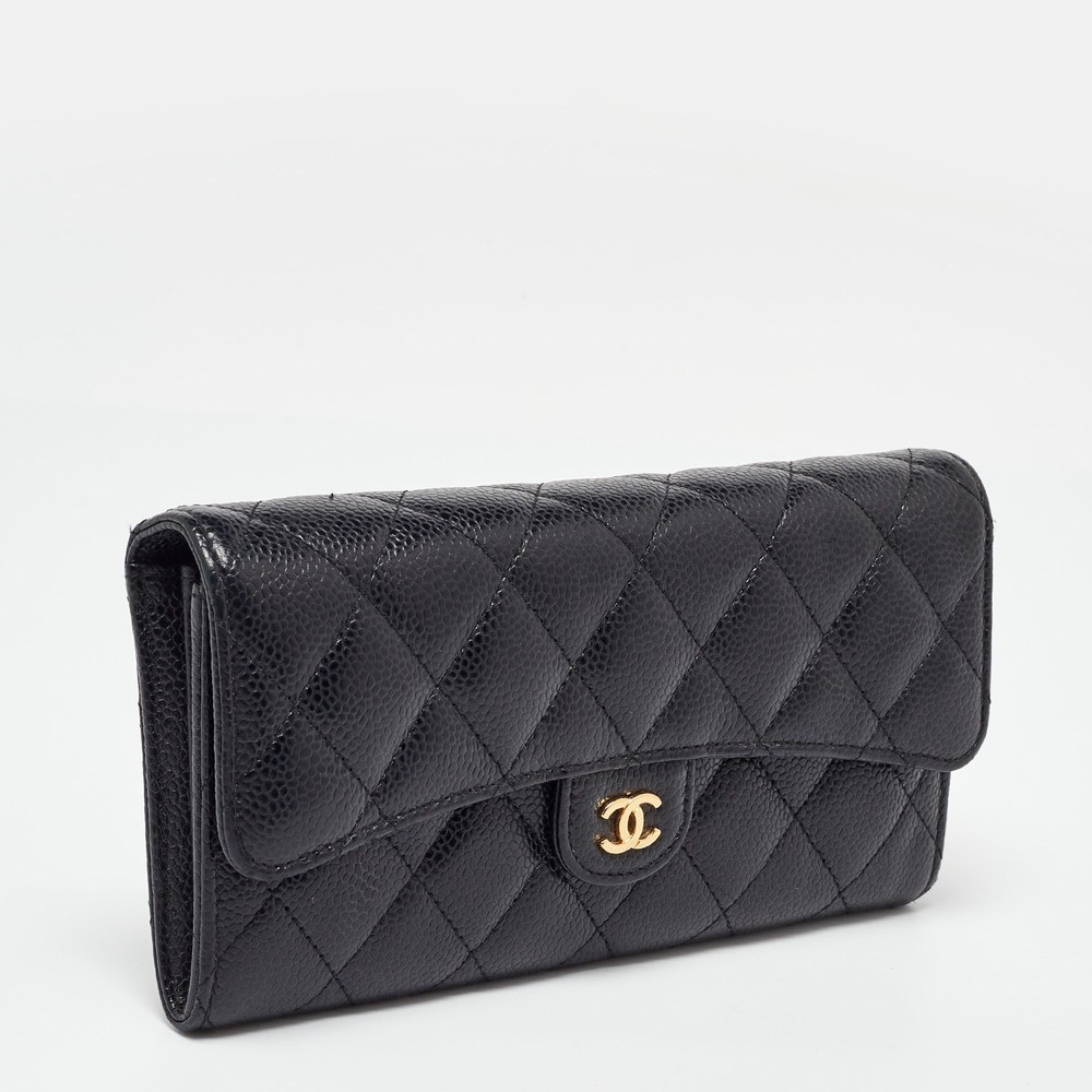 This designer wallet is an immaculate balance of sophistication and rational utility. It has been designed using prime quality materials and elevated by a sleek finish. The creation is equipped with ample space for your monetary essentials.Certified by The Luxury Closet - This item has gone through a detailed authentication process overseen by our experts. We offer a lifetime guarantee of authenticity on all our items. Import duties, taxes and charges are not included in the item price. These charges are the buyers responsibility. Please check with your country’s customs office to determine what these additional cost will be prior to buying. Our eBay Store About Us Contact Us Add to Favorite Sellers Chanel Black Caviar Quilted Leather Classic Long Flap Wallet $1107.7 This designer wallet is an immaculate balance of sophistication and rational utility. It has been designed using prime quality materials and elevated by a sleek finish. The creation is equipped with ample space for your monetary essentials. Product Details Brand Color Black Dimensions Height: 10 cm, Width: 9.5 cm, Length: 19 cm Material Leather Size Outsole Width Outsole Length Heel Height Includes The Luxury Closet Packaging Certified by The Luxury Closet This item has gone through a detailed authentication process overseen by our experts. We offer a lifetime guarantee of authenticity on all our items. How We Check The in-house team of experts at The Luxury Closet is highly trained to verify the authenticity and the condition of the luxury products. They ensure that only 100% authentic items are put on sale.The evaluation process is unique with its own mix of assessment criteria and differs according to the category. Each item is evaluated based on the following combination of hallmarks, hardware, stitching, symmetry, material, craftsmanship, stamping, codes, hologram stickers, and packaging. Our authenticators also check if the items have been modified or amended (e.g., aftermarket diamonds, replaced batteries, repaired bags, etc.) International Buyers Import duties, taxes and charges are not included in the item price. These charges are the buyers responsibility. Please check with your country’s customs office to determine what these additional cost will be prior to buying.
