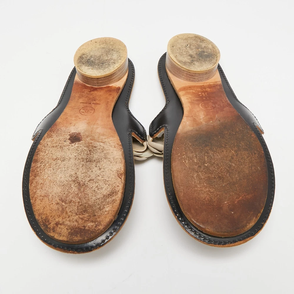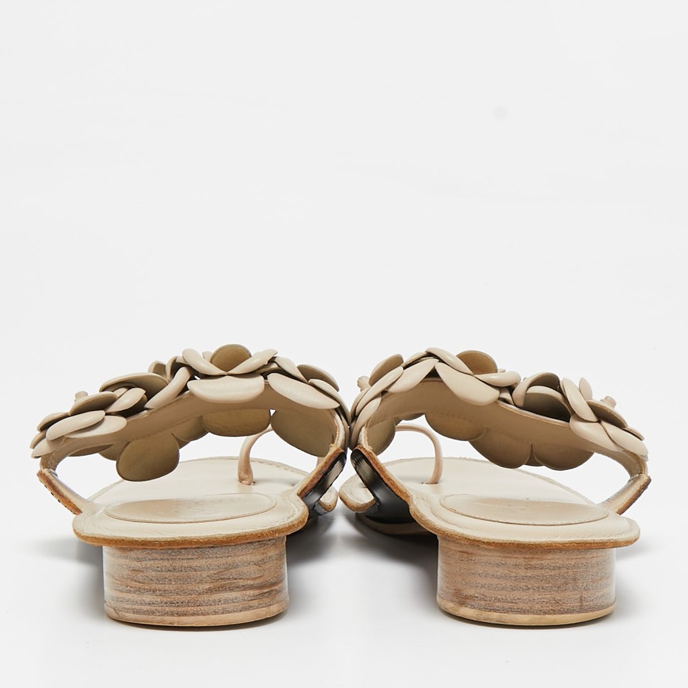 Create effortless styles with these Chanel flats. Made of quality materials, they are designed to elevate your OOTD and keep you in comfort all day long.Certified by The Luxury Closet - This item has gone through a detailed authentication process overseen by our experts. We offer a lifetime guarantee of authenticity on all our items. Import duties, taxes and charges are not included in the item price. These charges are the buyers responsibility. Please check with your country’s customs office to determine what these additional cost will be prior to buying. Our eBay Store About Us Contact Us Add to Favorite Sellers Chanel Cream Leather Camellia Toe Ring Flat Sandals Size 39 $618.2 Create effortless styles with these Chanel flats. Made of quality materials, they are designed to elevate your OOTD and keep you in comfort all day long. Product Details Brand Color Cream Dimensions Material Leather Size 39 Outsole Width 8 cm Outsole Length 25 cm Heel Height Includes The Luxury Closet Packaging Certified by The Luxury Closet This item has gone through a detailed authentication process overseen by our experts. We offer a lifetime guarantee of authenticity on all our items. How We Check The in-house team of experts at The Luxury Closet is highly trained to verify the authenticity and the condition of the luxury products. They ensure that only 100% authentic items are put on sale.The evaluation process is unique with its own mix of assessment criteria and differs according to the category. Each item is evaluated based on the following combination of hallmarks, hardware, stitching, symmetry, material, craftsmanship, stamping, codes, hologram stickers, and packaging. Our authenticators also check if the items have been modified or amended (e.g., aftermarket diamonds, replaced batteries, repaired bags, etc.) International Buyers Import duties, taxes and charges are not included in the item price. These charges are the buyers responsibility. Please check with your country’s customs office to determine what these additional cost will be prior to buying.