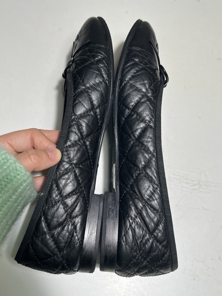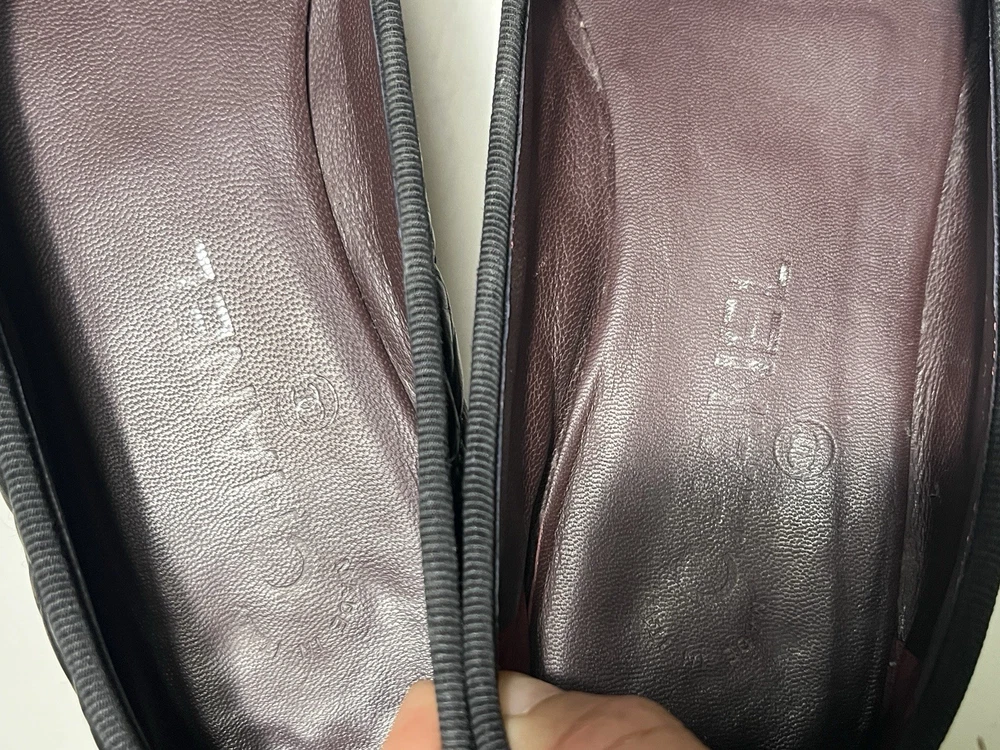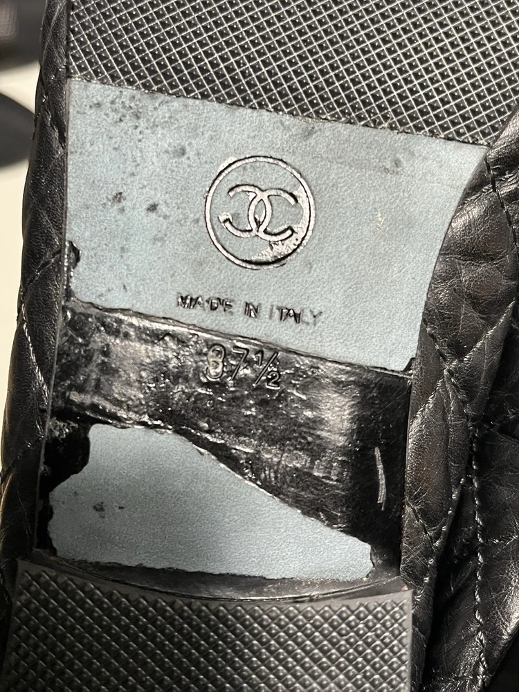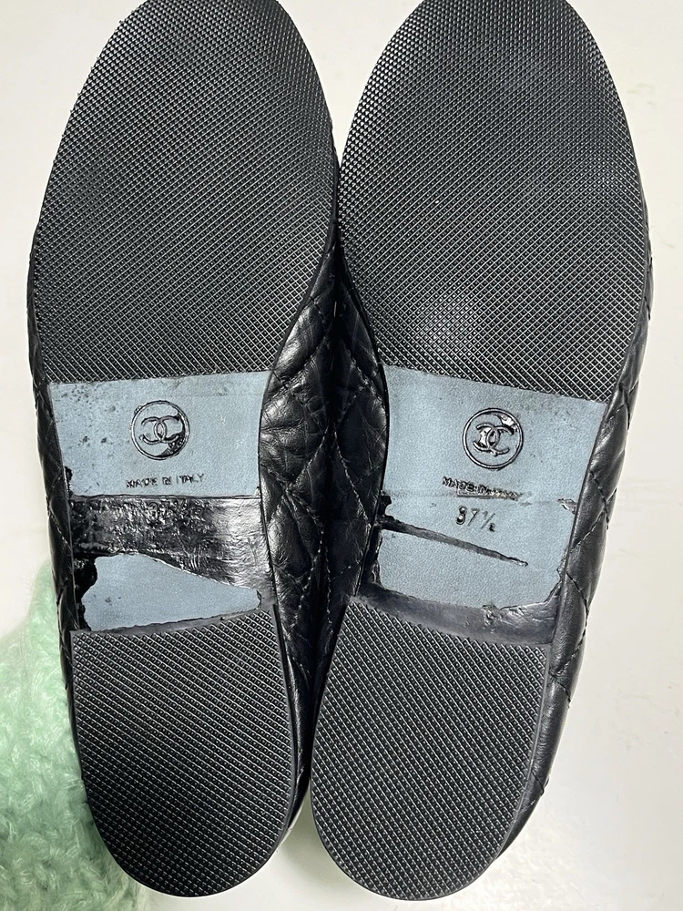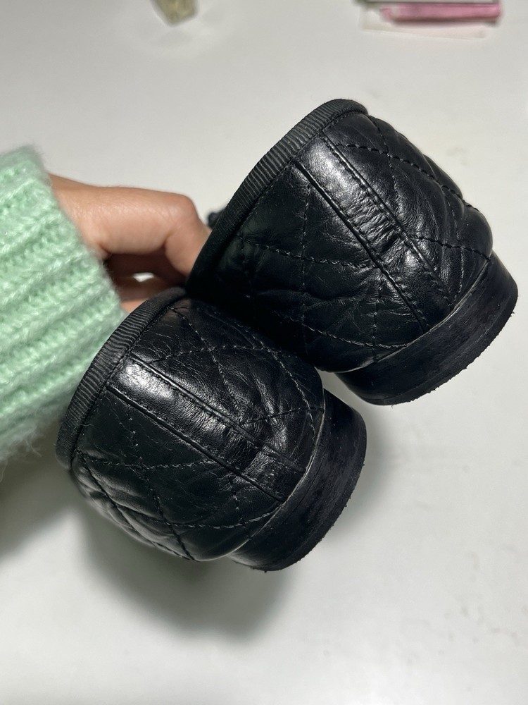 In great shape actually. The soles were looking off because the owner used to put 3M protectors on them, and when she got the protectors off, it took down the black paint… but the shoes were actually in good shape. Size 37.5. Classic cushioned leather in black. Authentic. Only shoes. Ship same or next day.