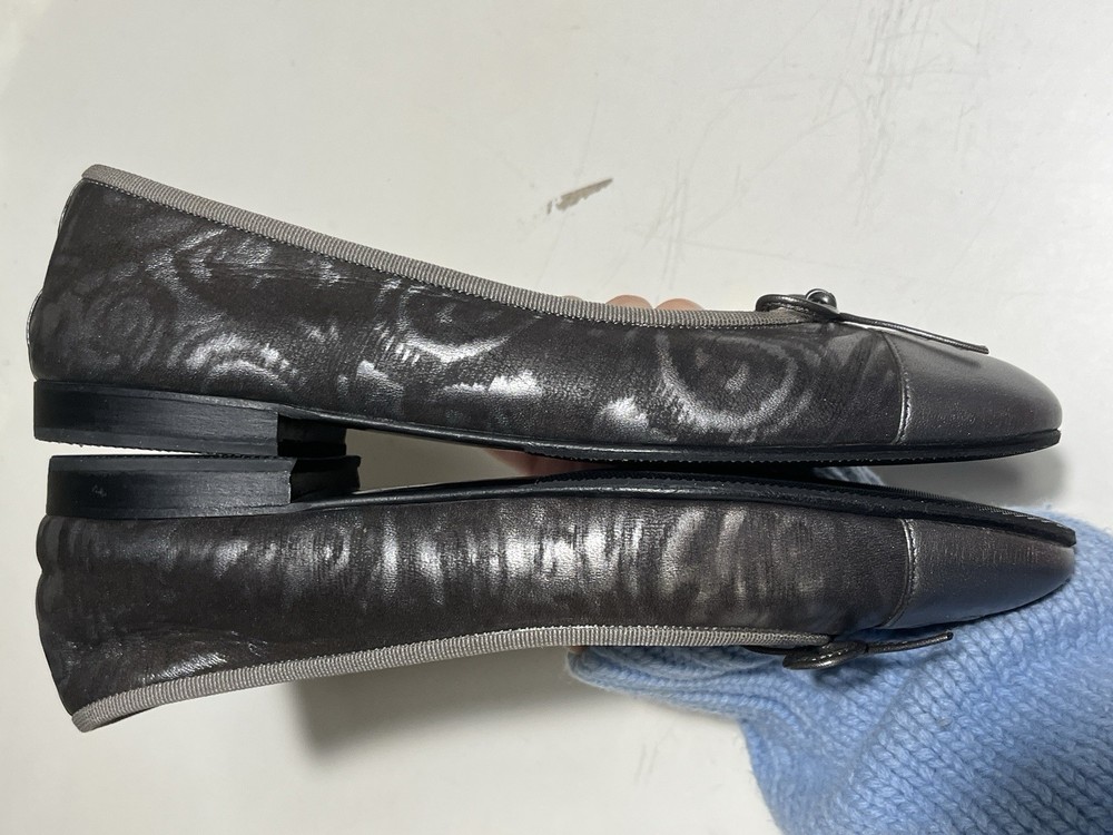 Popular gray lambskin leather. Size 37.5. The pattern is a rose-shaped swirl pattern. Kind of abstract. Authentic. Only shoes. Ship same or next day.