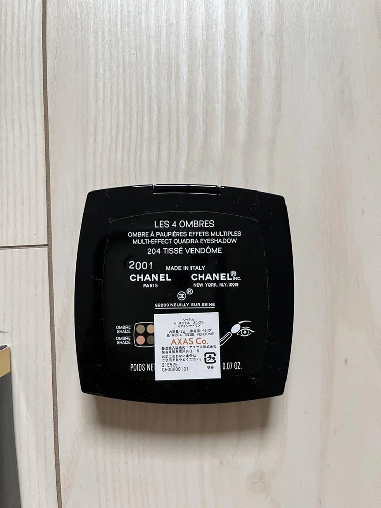 Chanel Les Quatre Ombres 204 Eyeshadow , Box Damaged, Fast Shipping Z83 Key Features **CHANEL Les 4 Ombres Eyeshadow - 204 Tisse Vendome** - **Brand**: CHANEL - **Product Type**: Eyeshadow Palette - **Model**: Les 4 Ombres - 204 Tisse Vendome - **Condition**: The box shows slight wear from storage, but the product itself is in excellent condition. - **Packaging**: The eyeshadow will be securely wrapped in bubble wrap for protection during shipping. Elevate your makeup collection with this luxurious CHANEL eyeshadow palette, featuring four harmonious shades perfect for creating stunning looks. Specifications Brand Chanel Product Description Shipping We ship all items with tracking numbers. We decide the delivery company depending on the area you live in. If you wish to use a freight car, please make sure to contact us in advance. Depending on your area, delivery fee to the remote area may be charged separately. In that case, additional charges may apply. If you are concerned, please let me know the area before purchasing. Depending on your area, you may be charged by your local shipping company. There is also a problem with the local shipping company, so I recommend you to check beforehand. International Buyers - Please Note: Import duties, taxes, and charges are not included in the item price or shipping cost. These charges are the buyer's responsibility. Please check with your country's customs office to determine what these additional costs will be prior to bidding or buying. Please Note: Consoles and game consoles are products for Japan. All displays are in Japanese. Only Japanese software may be available. Please check if it is available in your country before purchasing. Electrical Appliances: AC 100 For 100 V electrical appliances used in Japan, a transformer may be required for use in your country. Please confirm before purchase or feel free to contact us if you have any questions. About returns Points to note when returning items. ●Unopened. ●unused. The inquiry must be made within the due date. If you have any questions, please feel free to ask. We will always respond politely and sincerely.