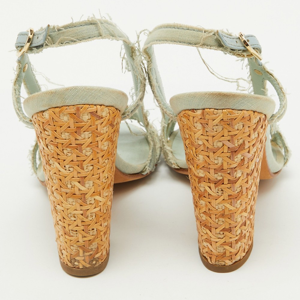 These sandals will frame your feet in an elegant manner. Crafted from quality materials, they display a classy design and comfortable insoles.Certified by The Luxury Closet - This item has gone through a detailed authentication process overseen by our experts. We offer a lifetime guarantee of authenticity on all our items. Import duties, taxes and charges are not included in the item price. These charges are the buyers responsibility. Please check with your country’s customs office to determine what these additional cost will be prior to buying. Our eBay Store About Us Contact Us Add to Favorite Sellers Chanel Light Blue Canvas Strappy Block Heel Slingback Sandals Size 36.5 $284.9 These sandals will frame your feet in an elegant manner. Crafted from quality materials, they display a classy design and comfortable insoles. Product Details Brand Color Blue Dimensions Material Canvas Size 36.5 Outsole Width 8 cm Outsole Length 22 cm Heel Height 10 cm Includes The Luxury Closet Packaging Certified by The Luxury Closet This item has gone through a detailed authentication process overseen by our experts. We offer a lifetime guarantee of authenticity on all our items. How We Check The in-house team of experts at The Luxury Closet is highly trained to verify the authenticity and the condition of the luxury products. They ensure that only 100% authentic items are put on sale.The evaluation process is unique with its own mix of assessment criteria and differs according to the category. Each item is evaluated based on the following combination of hallmarks, hardware, stitching, symmetry, material, craftsmanship, stamping, codes, hologram stickers, and packaging. Our authenticators also check if the items have been modified or amended (e.g., aftermarket diamonds, replaced batteries, repaired bags, etc.) International Buyers Import duties, taxes and charges are not included in the item price. These charges are the buyers responsibility. Please check with your country’s customs office to determine what these additional cost will be prior to buying.