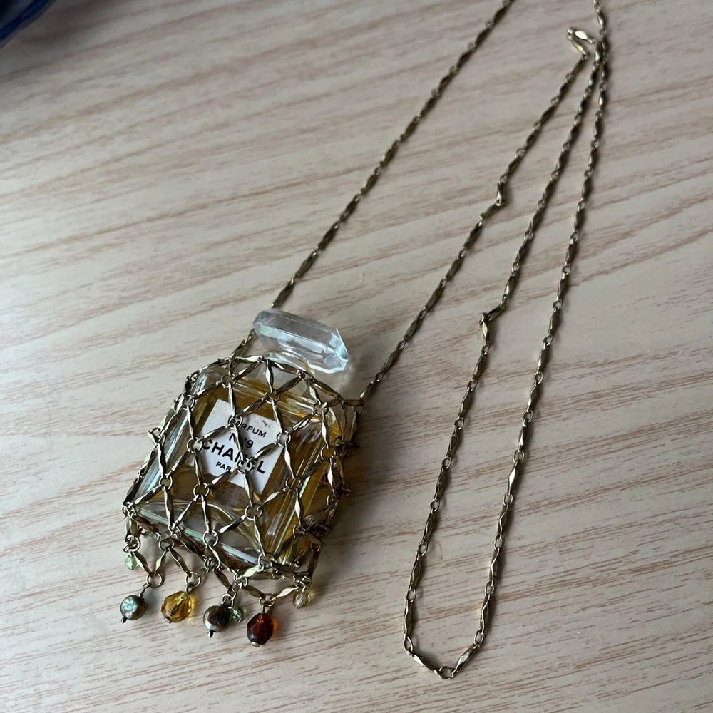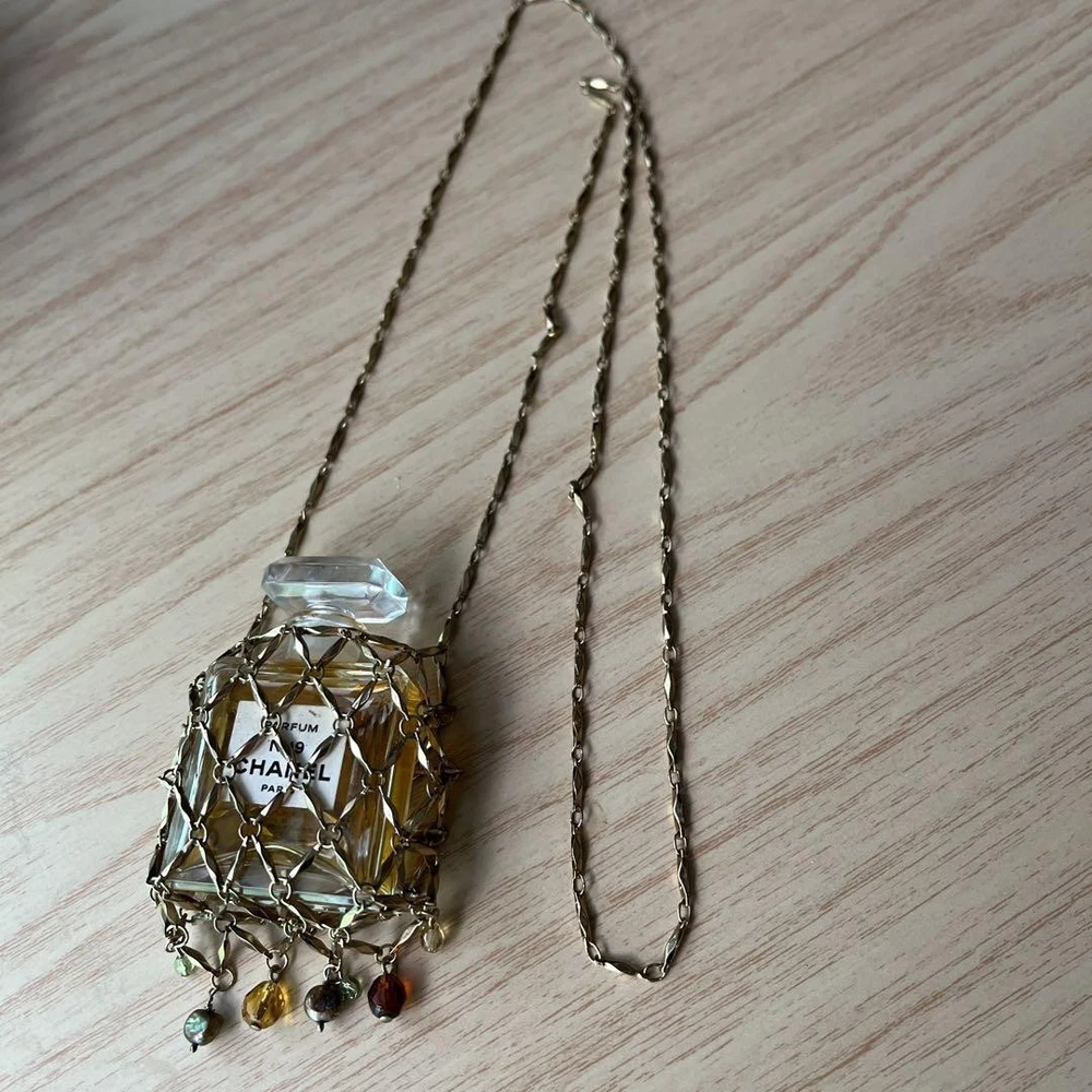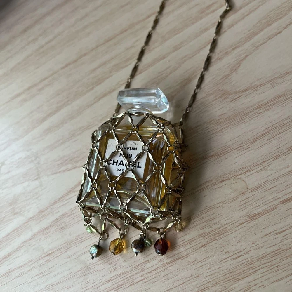 Chanel Perfume Bottle Necklace Old Classic Beaded Gold Chain Used Key Features - Brand: CHANEL - Product Type: Necklace with perfume bottle pendant - Model: Vintage CHANEL perfume bottle necklace - Features: - Unique design featuring a transparent 7ml CHANEL No.19 perfume bottle (remains inside) - Gold-colored chain with decorative beads and net design - Material: Metal chain with bead accents - Length: Approximately 7.5 inches (19 cm) - Condition: Used, with some remaining perfume in the bottle - Additional notes: - Perfume can be replaced with your preferred scent for continued use - No accessories are included unless noted in the title or product description - If you have any questions, please ask before purchasing Specifications Brand Chanel Country Japan Theme Classic Product Description Item Title Appraised Chanel Perfume Bottle Necklace Old Classicavailable Payment Supports managed payments Please pay within 5 days after auction is finished. About Us We are located in Japan. It's our pleasure to make you happy by proposing our recommend item. If you have any questions or request about items, please feel free to ask us. International Buyers - Please Note: -Import duties, taxes, and charges are not included in the item price or shipping charges. These charges are the buyer's responsibility. -Please check with your country's customs office to determine what these additional costs will be prior to bidding/buying. -These charges are normally collected by the delivering freight (shipping) company or when you pick the item up - do not confuse them for additional shipping charges. -We do not mark merchandise values below value or mark items as - gifts - The US and International government regulations prohibit such behavior. Thank you for your understanding.