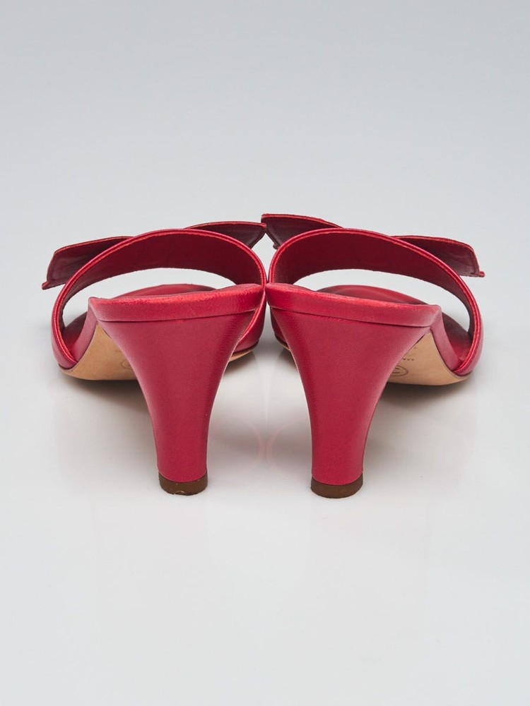 Chanel Pink Leather Open Toe CC Bow Heeled Sandals Size 5.5/36 Description These Chanel sandals are simply to die for! They feature chic pink leather uppers with a large bow at the vamp and CC details. The sandals have a manageable 2.5" heel. These sandals perfect for day or night. Be the envy of the night with these heels! Condition The leather uppers are clean with some rubbing at the heels and the toes. The soles have rubbing and some light scuffing. The boot beds remain clean with no wear. Details Overall Condition: Like new Exterior Condition: Interior Condition: Includes: Chanel box, two shoe bags, booklet, replacement heel caps Material: Pink leather Handles: Closure/Opening: Interior Lining: Interior Pockets: Hardware: Origin: Italy Production Year: Handle Drop: Measurements: Date/Authenticity Code: Guaranteed Authentic Only 100% authentic bags earn the tag! We guarantee the authenticity of every item we sell or 100% of your money back including original and return shipping costs. We're experts in distinguishing the "wanna-bes" from the "real deal." Whether it's a handbag or necklace, determining the authenticity of an item is a mix of art and science. Items such as stampings, symmetry, stitching, hardware, authenticity stamps, as well as overall workmanship and materials are inspected and determined to be consistent with the manufacturer's established standards of quality. If applicable, manufacturer date codes and serial numbers are verified for consistency. Lastly, the item is compared to on-hand authentic reference items. Payment We accept Paypal along with Visa, Mastercard, American Express, and Discover. We request full payment immediately upon purchase. Hassle-free Return Policy We guarantee the authenticity and condition of each item we sell. If you are not completely satisfied with your purchase, you may return it within 15 days of shipping date for a prompt refund. Hassle-free returns means that you don't have to contact us prior to returning an item. All we ask is that you do not remove the Authenticity Seal attached to your item and that you return the item in the condition you received it. We also ask that all original papers and box are returned. We cannot accept return items that do not meet this criteria. To return your order for a refund, please initiate the return within your eBay account. Within 2-3 business days upon receipt, you will be issued a refund for the original sales price and any taxes in the same form as the original payment method. Please note that this credit will not include any original shipping charges. Shipping Fees Our goal is to process your order quickly and ensure its safe delivery. We offer free shipping for all domestic orders and flat rate shipping fees for expedited and international orders regardless of how many items are in your order. Please note that we cannot ship to P.O. boxes. Shipping Method Fee per Order Standard (UPS Ground) FREE Expedited (UPS 2 Day) $15 APO/FPO, Alaska, and Hawaii (USPS Priority Insured) FREE Canada (USPS Priority Insured) $15 International (USPS Priority Insured) $15 International (USPS Express Insured) $25 About Us We know that shopping for new luxury goods at high-end retailers can be a luxurious and satisfying experience. We strive to deliver the same high quality experience and level of service for pre-owned goods. Never considered giving a pre-owned luxury item as a gift? Every order is presented and packaged to standards that match or exceed luxury retail stores and therefore make great gifts (especially if it's a gift for yourself!). For every order, take a look at what comes in the box: Professionally cleaned and rejuvenated luxury item with "Guaranteed Authentic by Yoogi's Closet" hang tag and seal. "Guaranteed Authentic by Yoogi's Closet" enclosure card. Care instructions and message from Yoogi. Invoice and return instructions. Original box, dustbag, and enclosed materials* * Note that select pre-owned merchandise will arrive with these items. Please refer to the product description page on the Yoogi's Closet website for details. Have Authentic Luxury Handbags or Jewelry to Sell? If you are having problems selling your authentic luxury handbag on eBay, we can help! We pay top dollar for quality, gently used luxury handbags. Learn more about our selling and consignment services.
