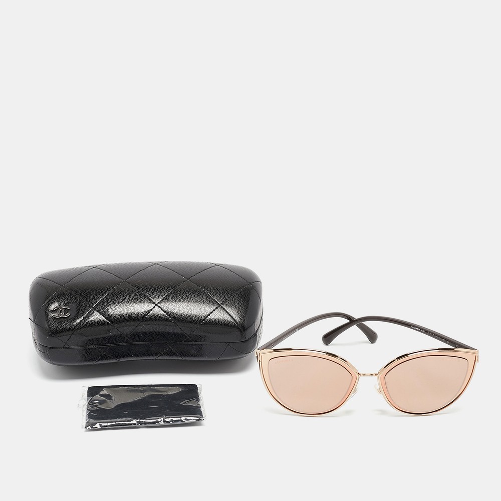 We see the detailing on this exquisite pair of designer sunglasses made from fine materials. The sunglasses are luxe in appeal and practical in usage.Certified by The Luxury Closet - This item has gone through a detailed authentication process overseen by our experts. We offer a lifetime guarantee of authenticity on all our items. Import duties, taxes and charges are not included in the item price. These charges are the buyers responsibility. Please check with your country’s customs office to determine what these additional cost will be prior to buying. Our eBay Store About Us Contact Us Add to Favorite Sellers Chanel Rose Gold/Brown Mirrored 422 Cat Eye Sunglasses $544.5 We see the detailing on this exquisite pair of designer sunglasses made from fine materials. The sunglasses are luxe in appeal and practical in usage. Product Details Brand Color Gold Dimensions Material Acetate, Metal Size Outsole Width Outsole Length Heel Height Includes Original Case, Original Dust Cloth Certified by The Luxury Closet This item has gone through a detailed authentication process overseen by our experts. We offer a lifetime guarantee of authenticity on all our items. How We Check The in-house team of experts at The Luxury Closet is highly trained to verify the authenticity and the condition of the luxury products. They ensure that only 100% authentic items are put on sale.The evaluation process is unique with its own mix of assessment criteria and differs according to the category. Each item is evaluated based on the following combination of hallmarks, hardware, stitching, symmetry, material, craftsmanship, stamping, codes, hologram stickers, and packaging. Our authenticators also check if the items have been modified or amended (e.g., aftermarket diamonds, replaced batteries, repaired bags, etc.) International Buyers Import duties, taxes and charges are not included in the item price. These charges are the buyers responsibility. Please check with your country’s customs office to determine what these additional cost will be prior to buying.