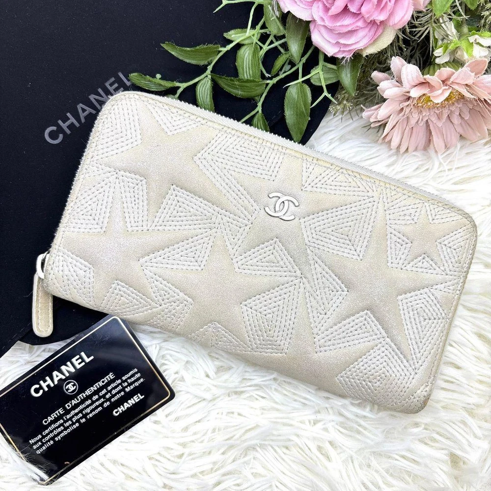 Type: Pouch Wallet Seller Notes: “good condition see photo” Style: Zip-Around Theme: Stars Brand: CHANEL Color: white Department: Women