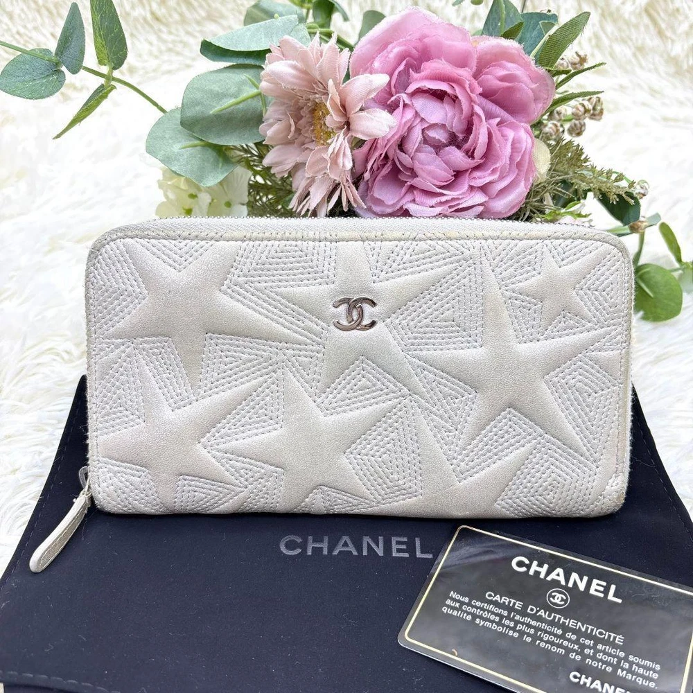 Chanel Star Embossed Lambskin Zip Around Long Wallet Rare Preowned Excellent