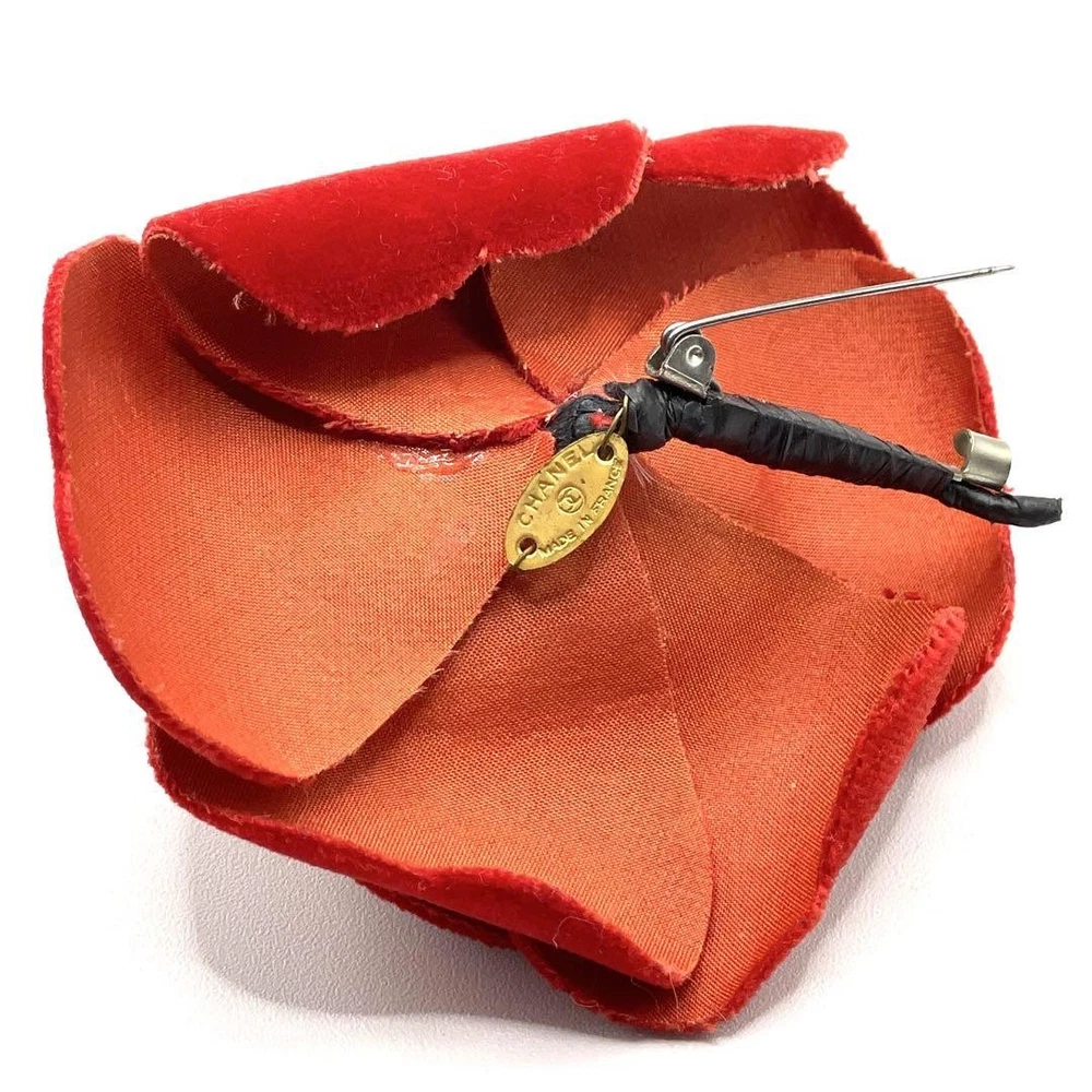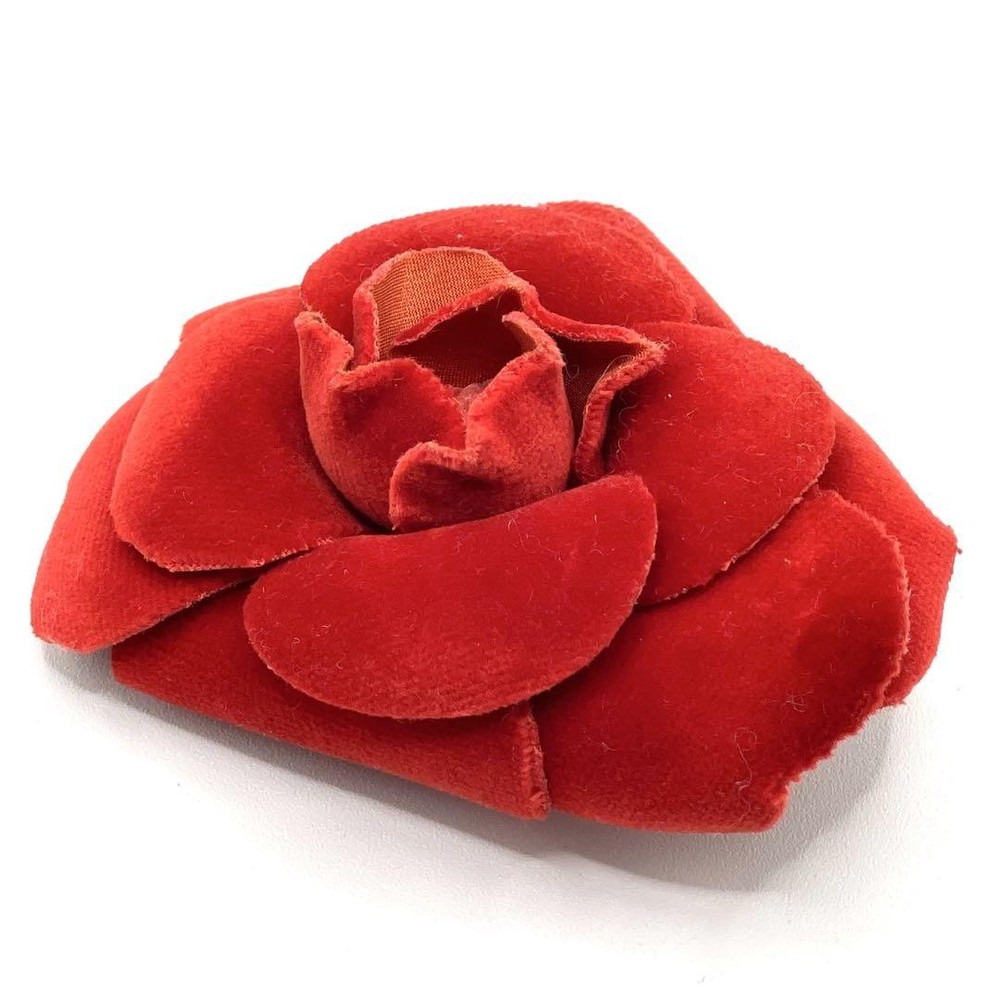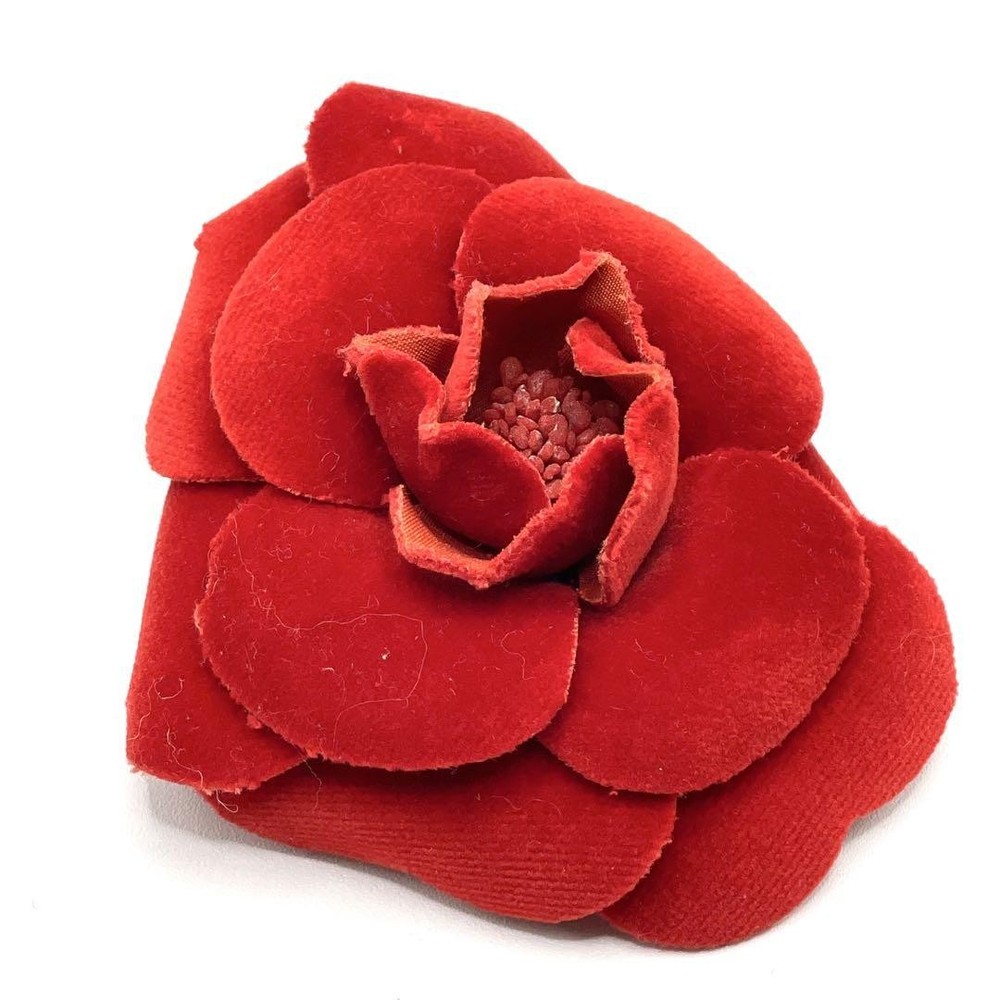This stunning Chanel Camellia Corsage Pin in rich velour red is a timeless statement piece. The luxurious velvet material and flawless 3.3-inch floral design add instant elegance to any outfit. Despite being pre-owned, it's in excellent condition with no visible wear—perfect for collectors or fashion lovers wanting iconic Chanel charm without the boutique price. The bold red hue makes it pop against jackets, bags, or scarves. A must-have accessory that feels special every wear!