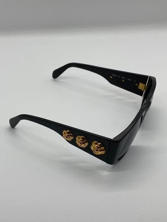 Chanel Vintage 1991 Black CC Logo Camellia Sunglasses Coco Mark