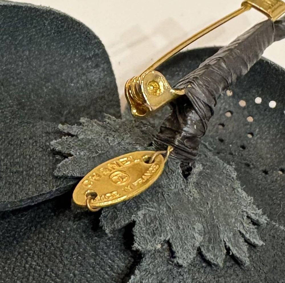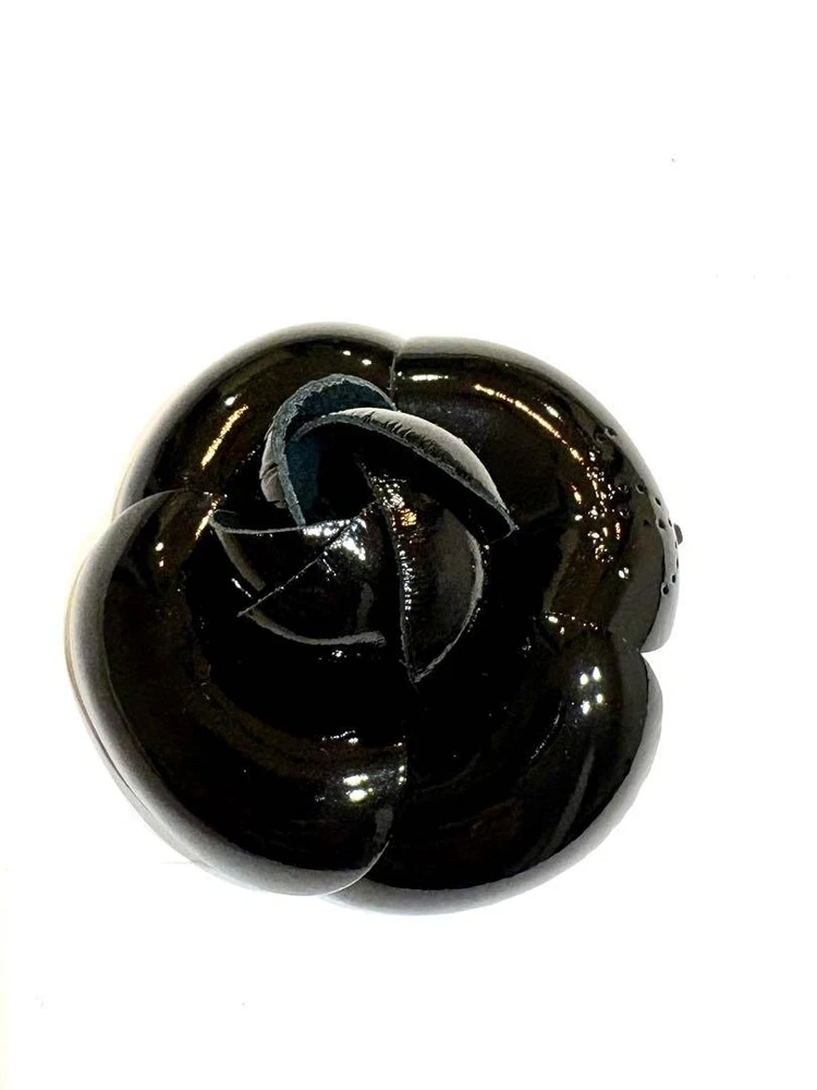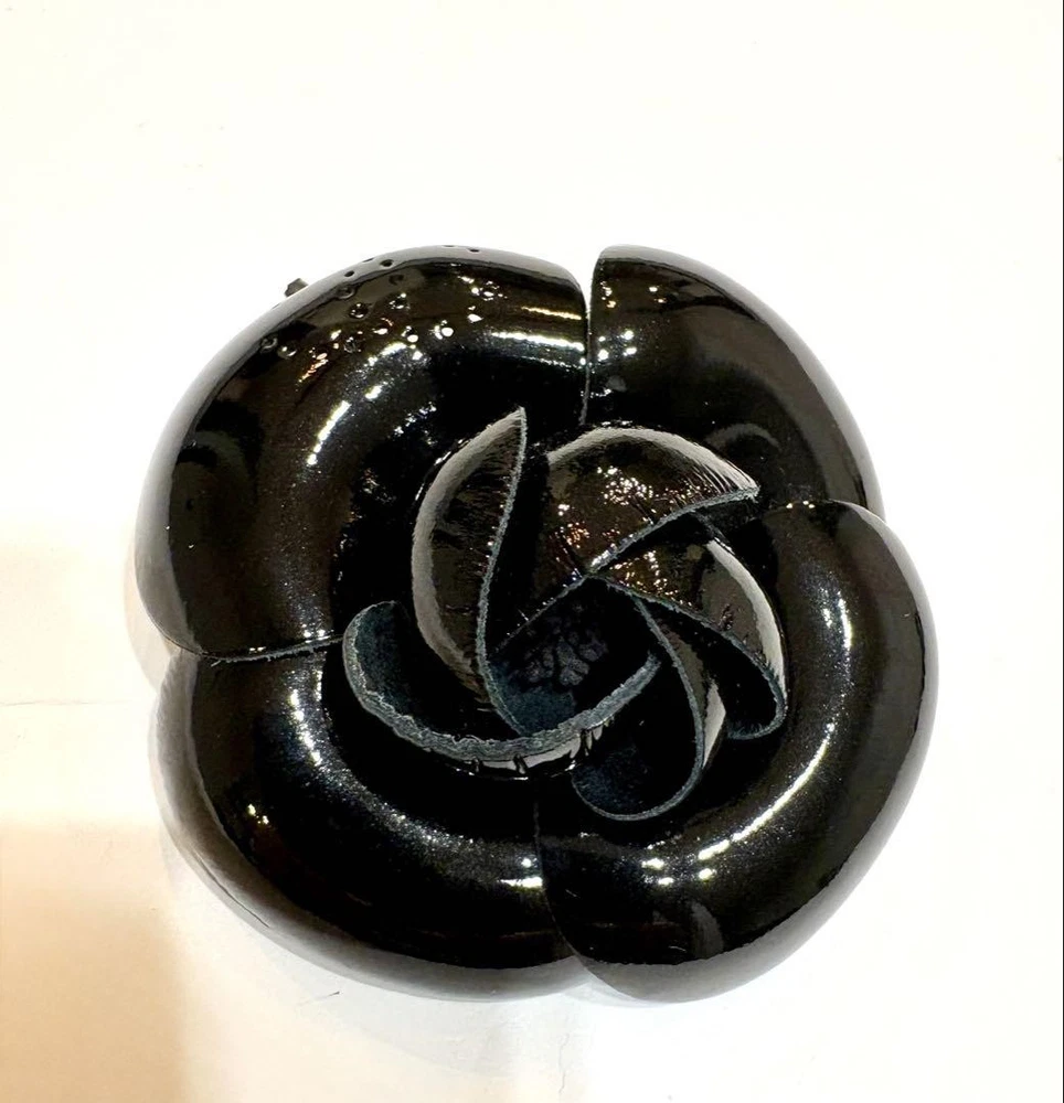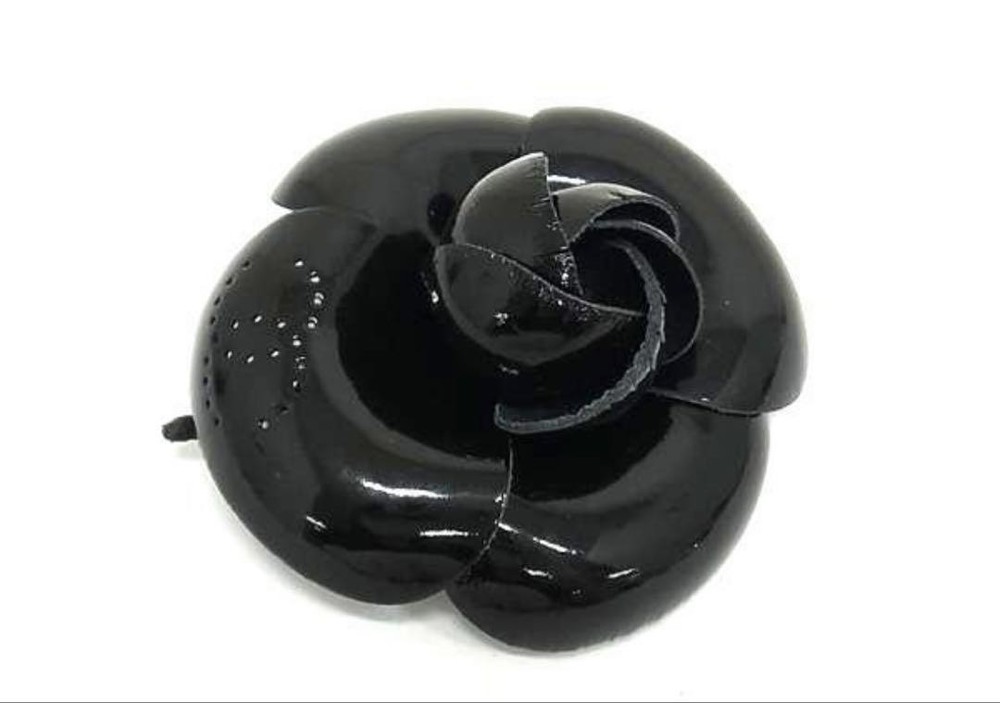 Chanel Vintage Black Camellia Leather Corsage Pin Badge