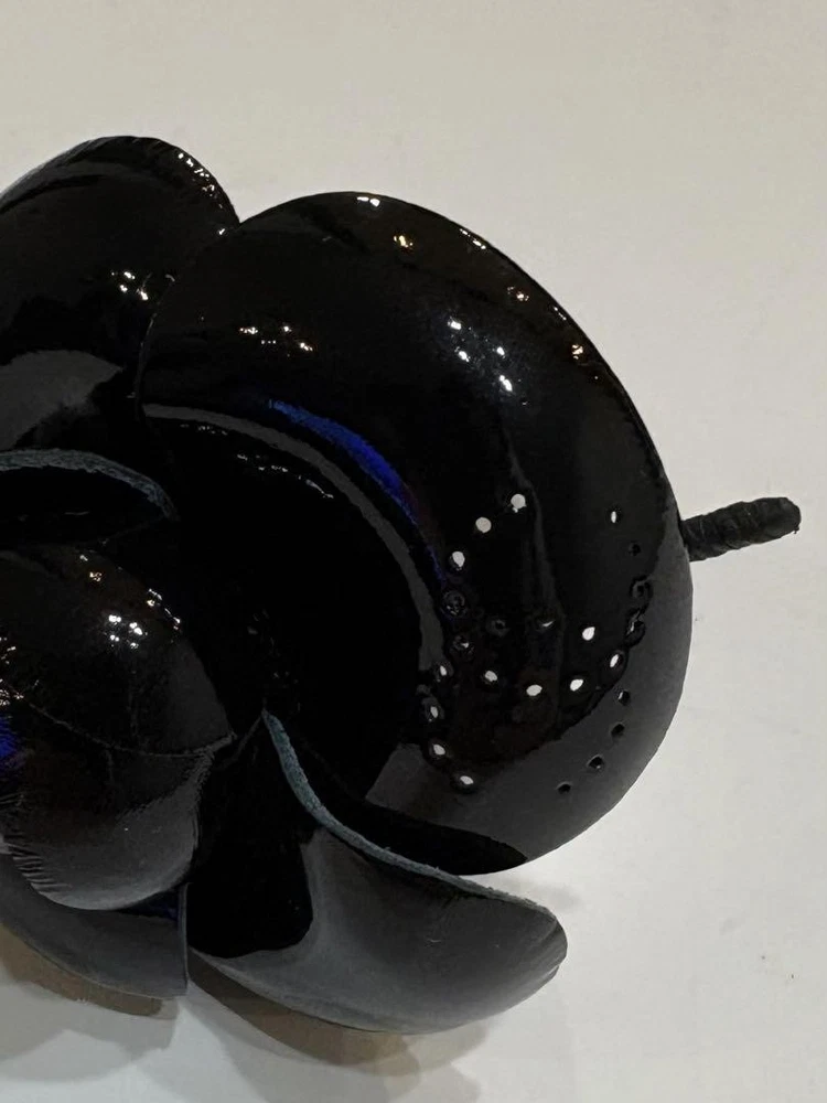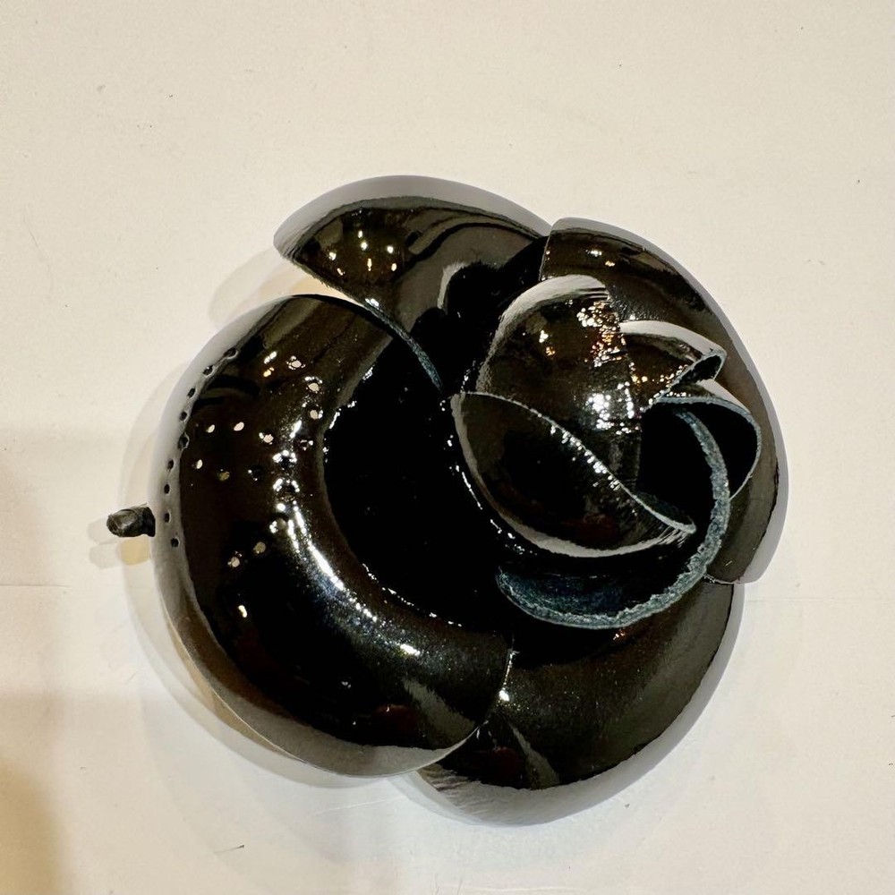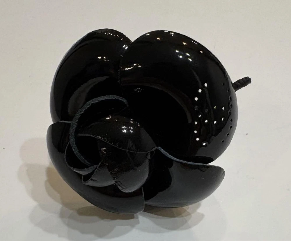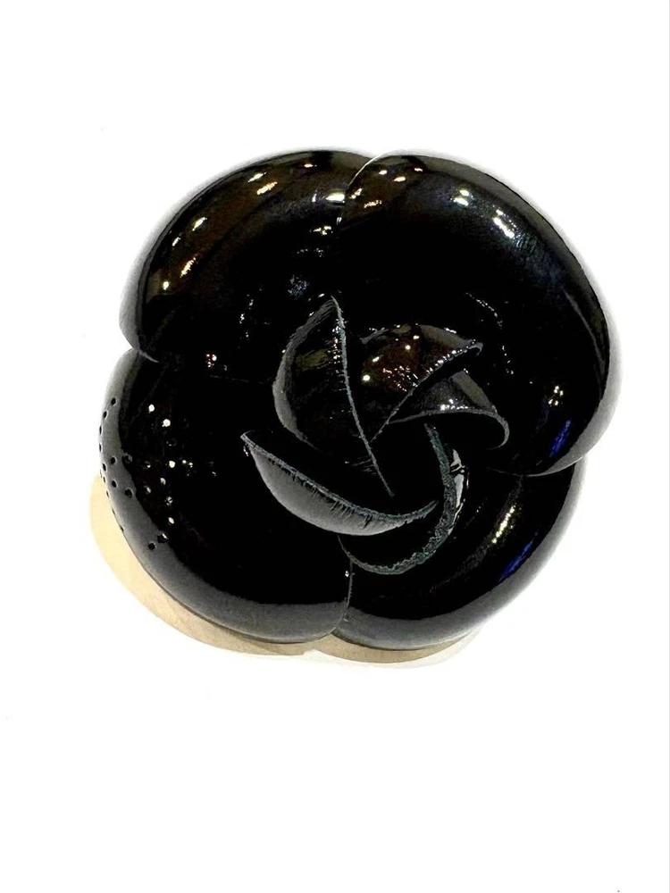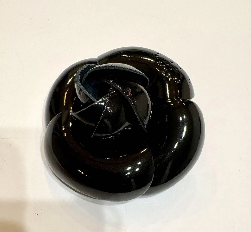 Chanel Vintage Black Camellia Leather Corsage Pin Badge