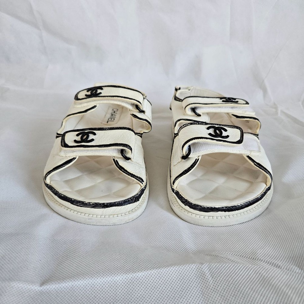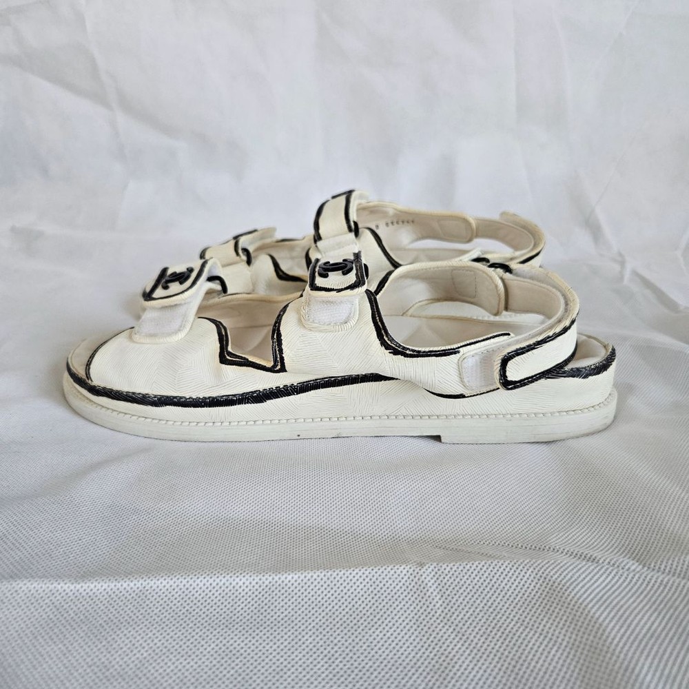 bopf Visit thebusinessofprelovedfashion store to see all the catalogue ABOUT US CUSTOMER FEEDBACK CONTACT US Chanel White Graphic Dad Sandals, 41.5 check_circle Handling Time: 4 days check_circle Additional custom duties may apply check_circle 100% Authentic Chanel White black printed Dad Sandals from the Cruise 2021/22 collection Attributes Material : Leather Color : White and Black Size: 41.5 Condition Desc.: Very good; outsole has been scuffed Inclusions : Box About This Item Style: Dad Sandals Department: women Upper Material: Leather Brand: Chanel US Shoe Size: 41.5 Color: White and Black How we list items 1. METICULOUS INHOUSE AUTHENTICATION PROCESS Our in-house luxury consignment experts offer a combined experience of over 8 years in the fashion resale industry enabling them to carefully inspect all items listed online to ensure they are authentic 2. VERIFY AUTHENTICITY USING ENTRUPY AI TOOL We use Entrupy: The world's first and only on-demand authentication solution for high-value goods as an additional layer of authenticity ventication. 3. THIRD PARTY PROFESSIONAL AUTHENTICATION SERVICES We use Entrupy: The world's first and only on-demand authentication solution for high-value goods as an additional layer of authenticity ventication. Customers with frequent return orders will incur a restocking fee of 30$ per order. This policy helps cover administrative costs es thoughtful purchases. About the Seller Shipping Policy Description Payment Policy Description Return Policy Description Welcome to The Business of Preloved Fashion (BOPF) – your trusted source for authentic, preloved luxury fashion. Founded in Dubai in 2021 by Hadiza Ibekwe, who brings over 10 years of experience in luxury resale, BOPF is committed to making luxury fashion more accessible and sustainable. Why Shop With Us? Authenticity Guaranteed: Every item is carefully inspected and authenticated by our experts. New Treasures Weekly: Our collection is updated weekly with carefully curated preloved designer pieces, including preloved bags, clothing, shoes , accessories and jewelry. Luxury for Less: Find high-end designer items at a fraction of their original prices. Quick Shipping: Enjoy fast, reliable shipping with every purchase. Sustainable Fashion: Join us in promoting a more sustainable fashion future by choosing preloved. Have questions? Reach out via eBay messaging – we're readily available! • We will use DHL courier for safe and fast delivery. • Import duties, taxes and charges are the buyer's responsibility. Please check with your country's customs office to determine what these additional costs will be prior to bidding or buying. • We accept only online payment method. • We accept payment by PayPal and Credit / Debit cards entered on eBay only. Customers with frequent return orders will incur a restocking fee of 30$ per order. This policy helps cover administrative costs and encourage thoughtful purchases.